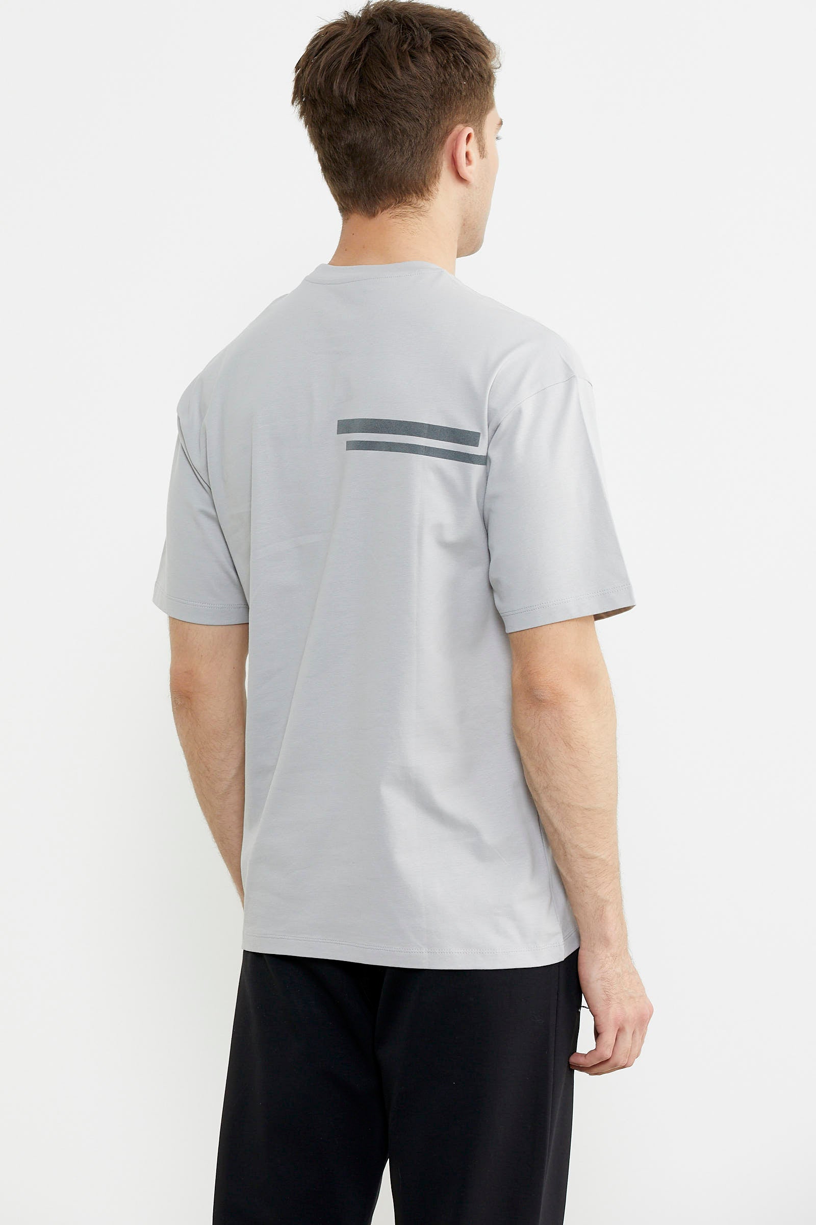 Bisiklet Yaka Oversize Pamuk Tişört - Açık Gri
