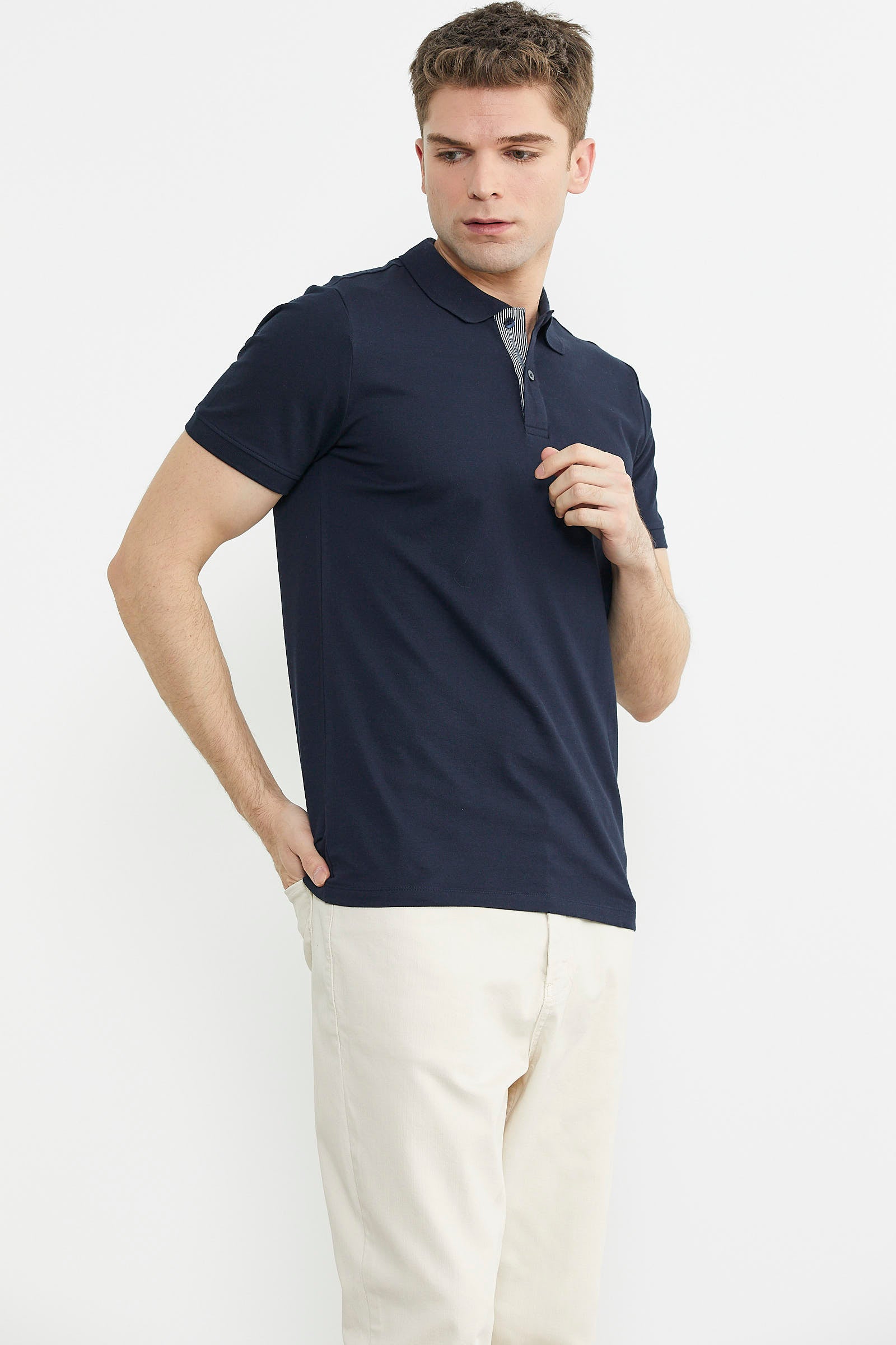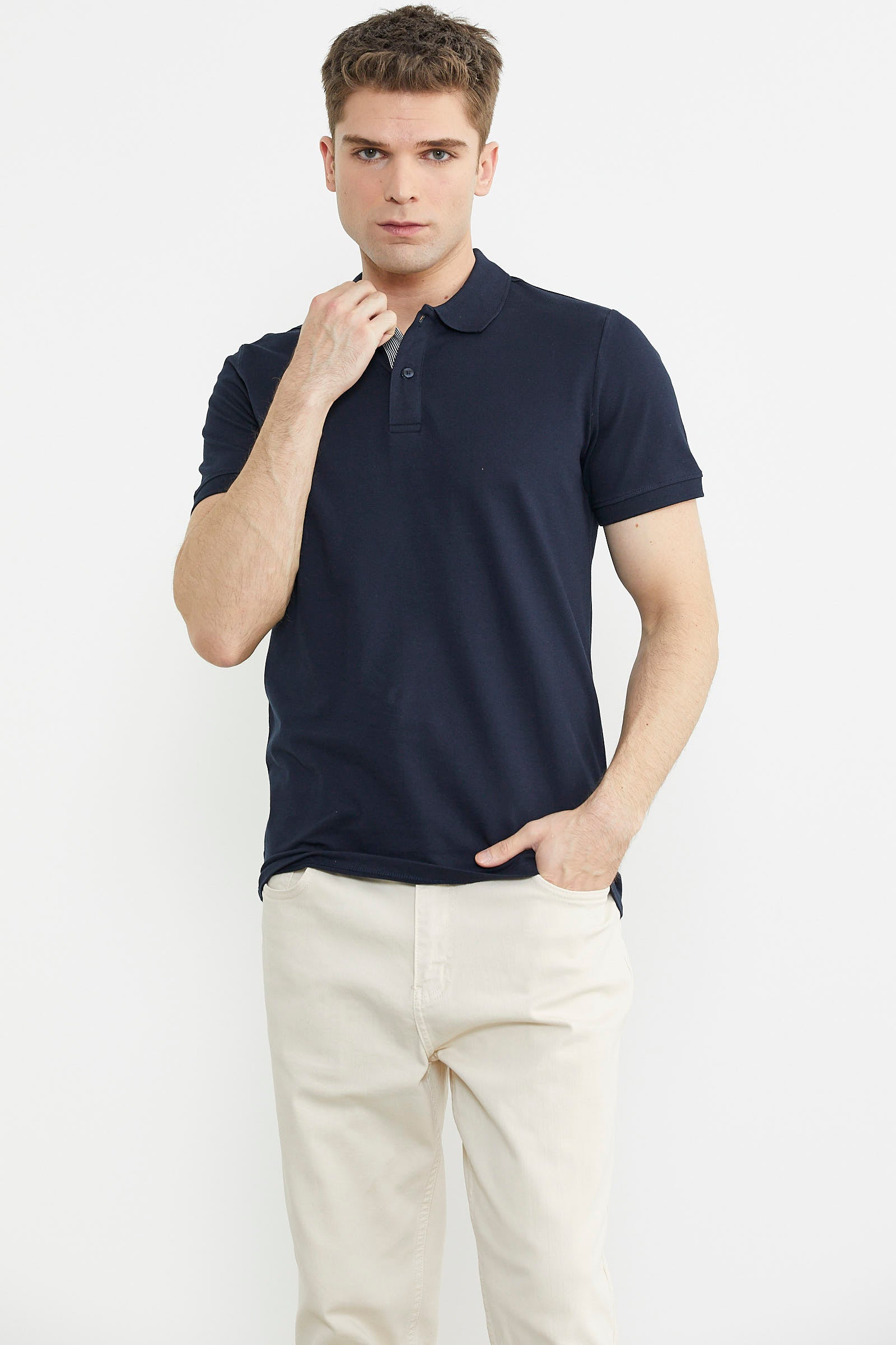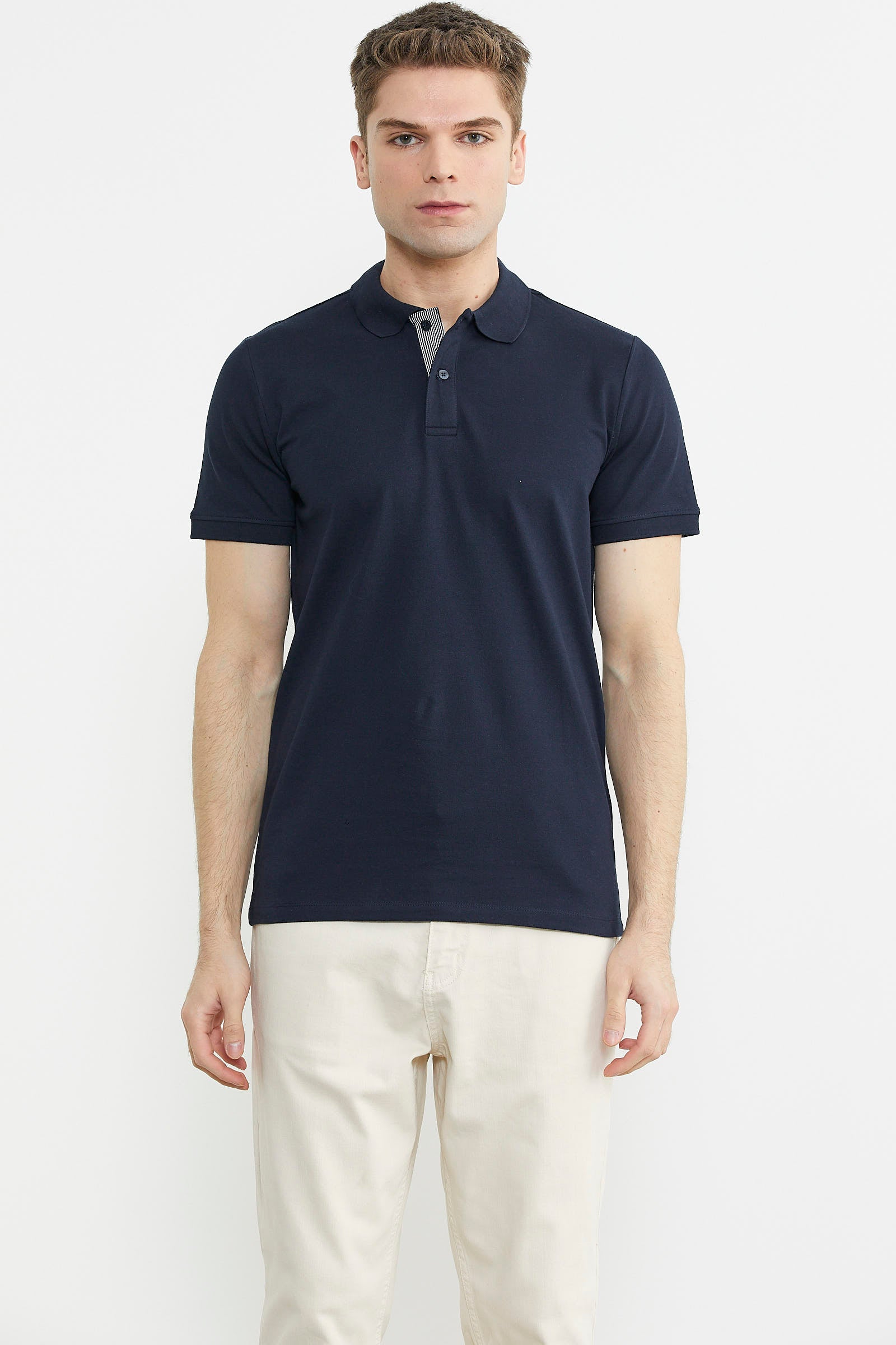 Detaylı Polo Yaka Kısa Kol Tişört - Lacivert