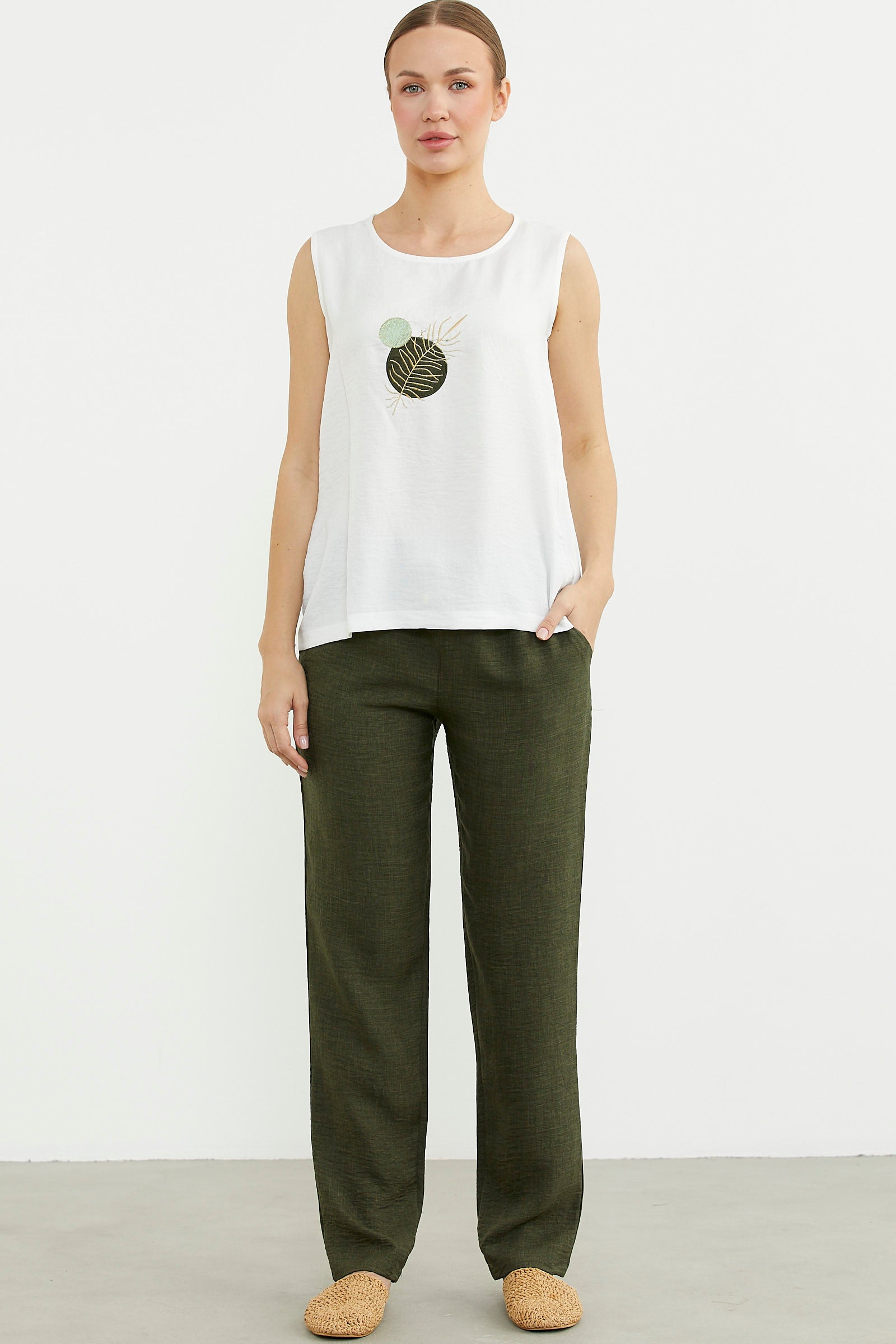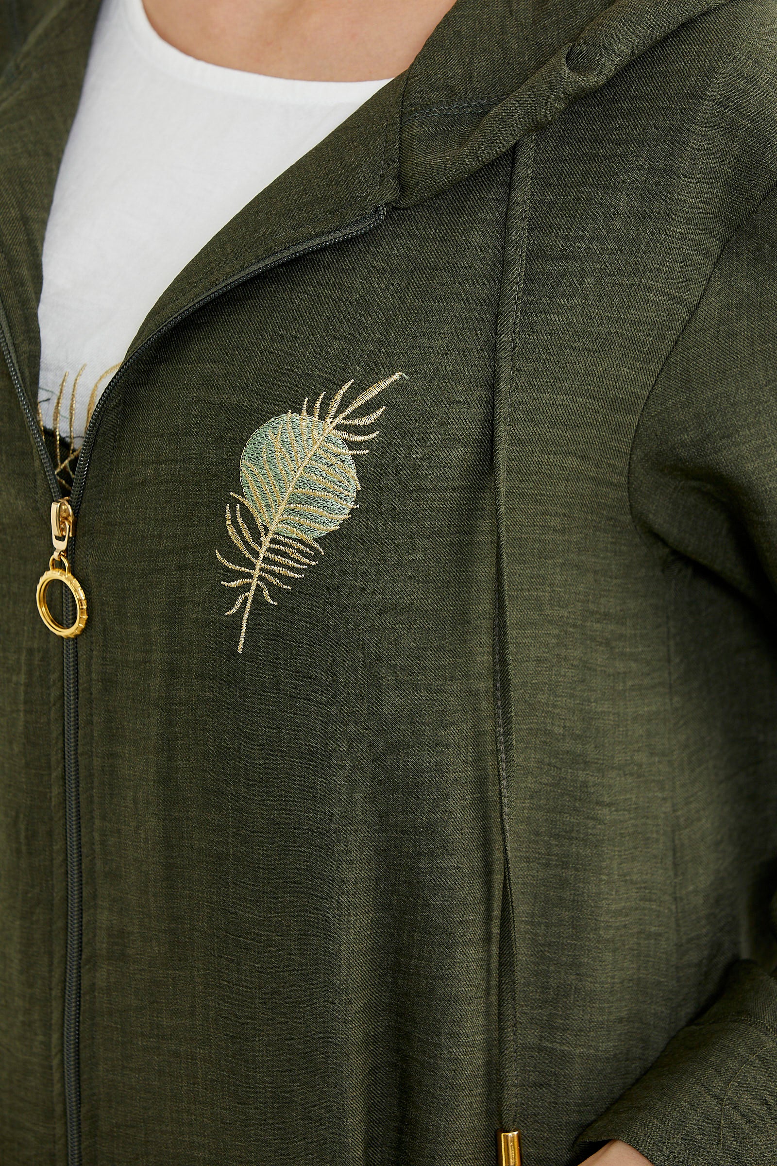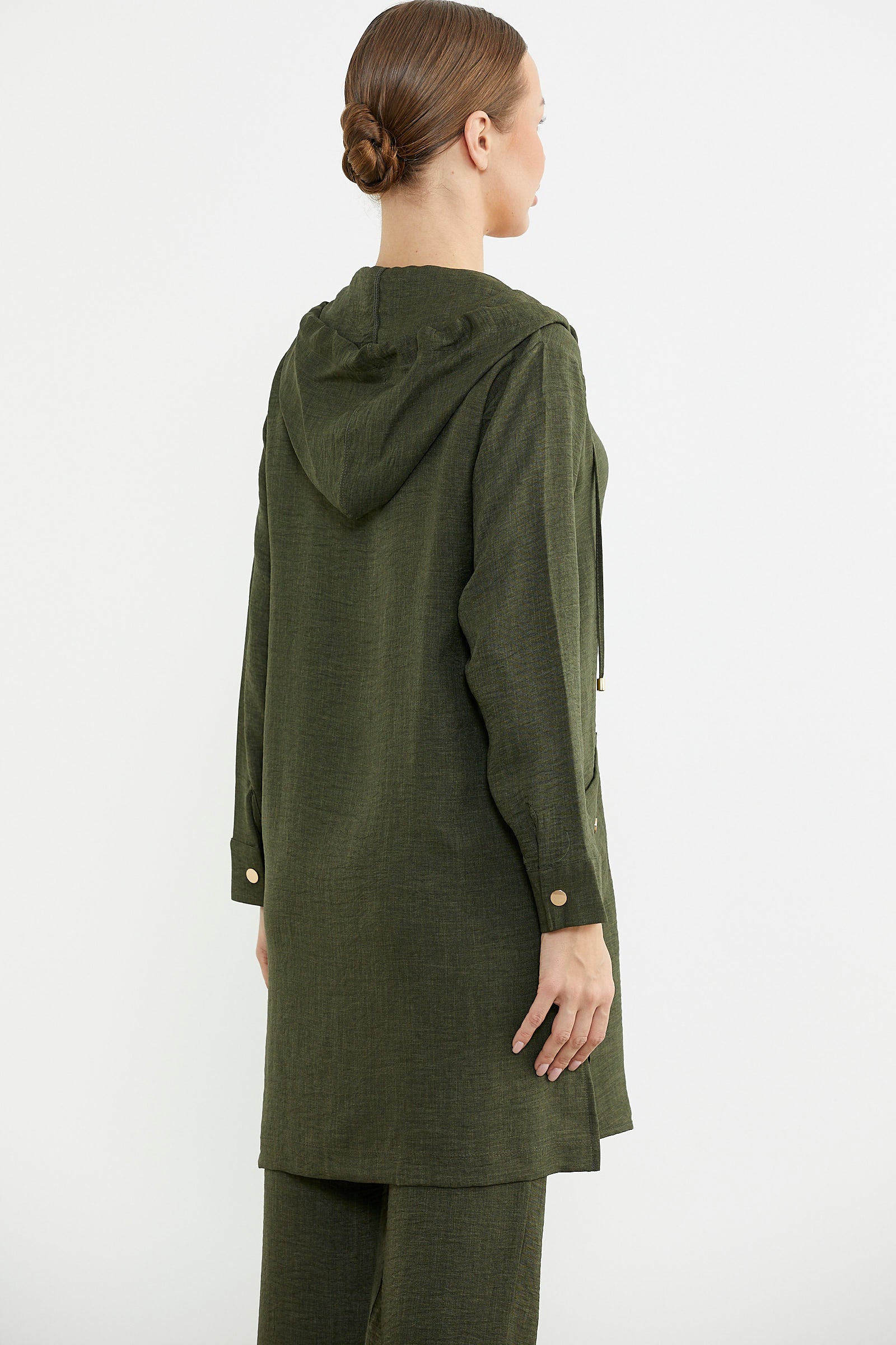 Büyük Beden Keten Görünümlü Üçlü Takım - Haki