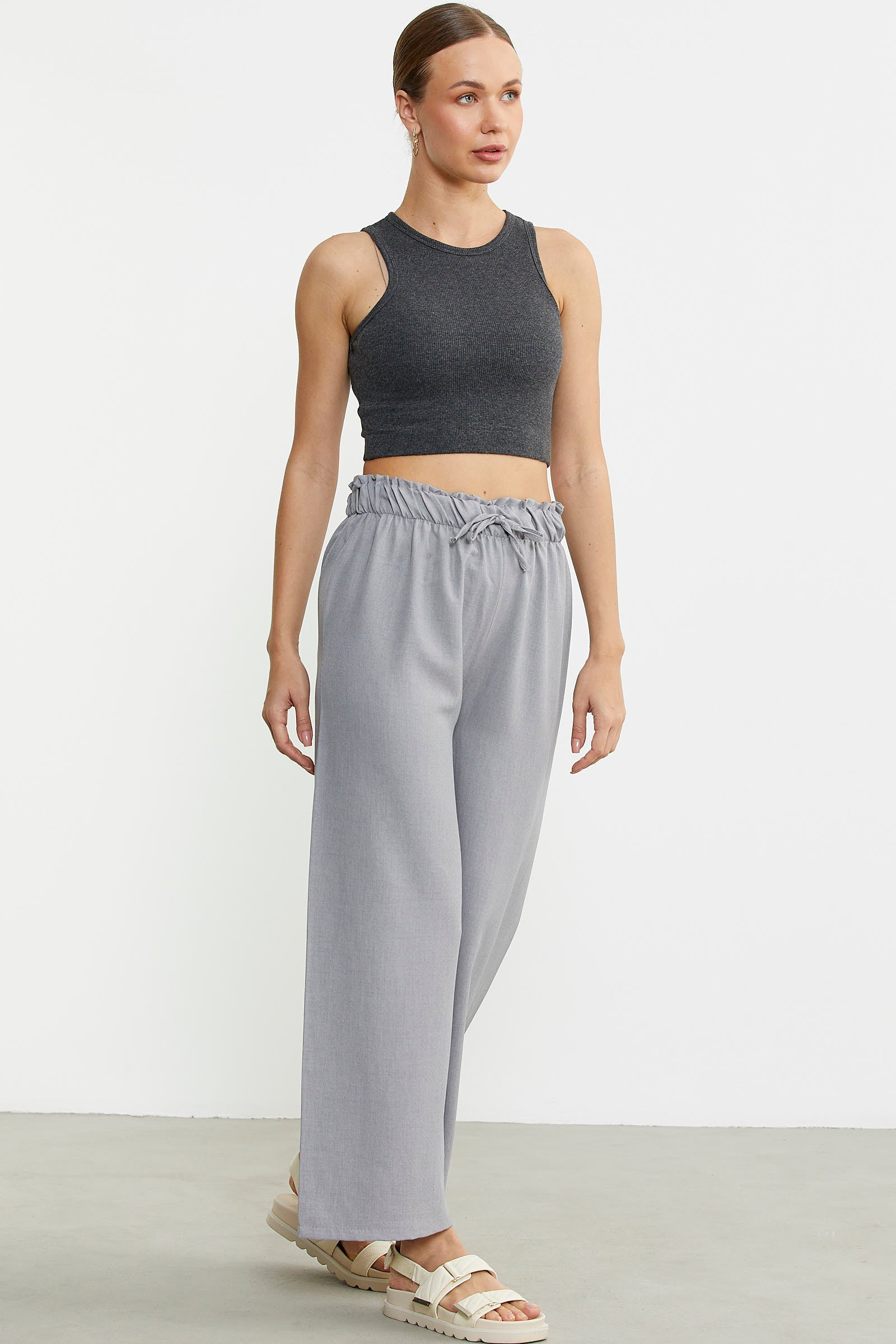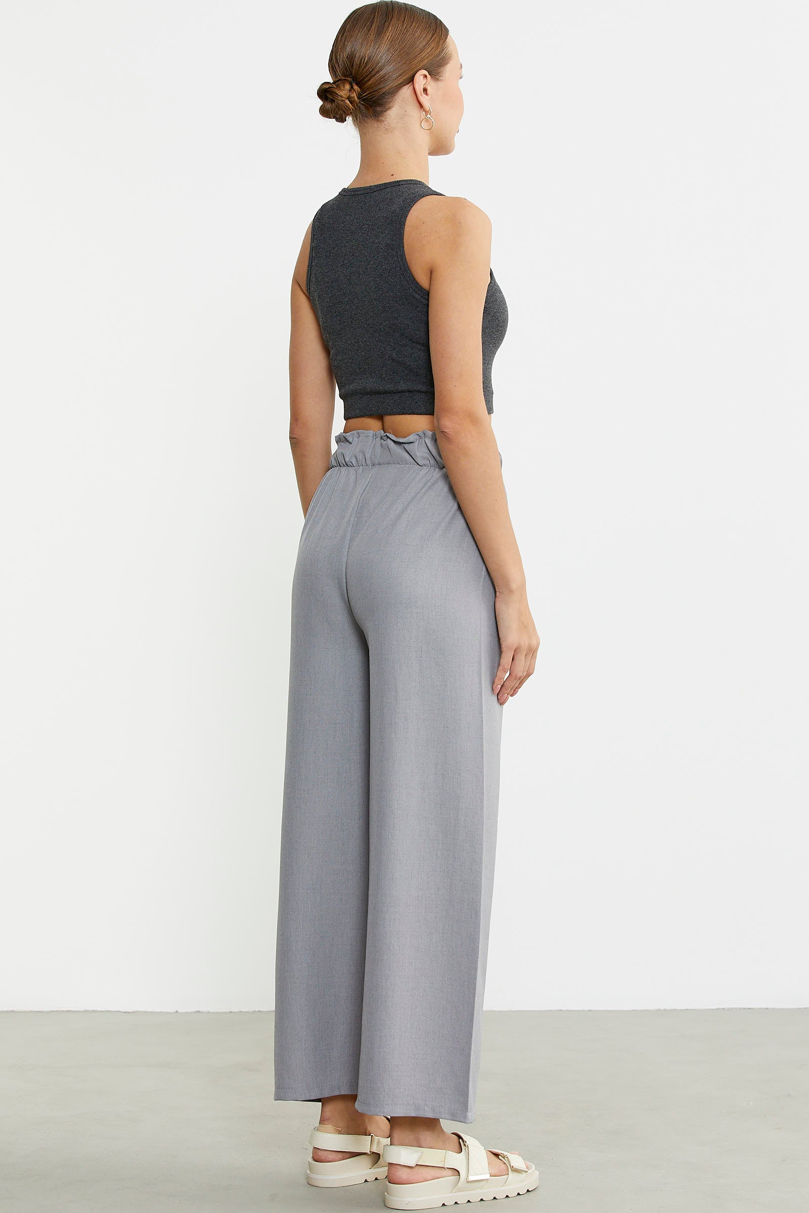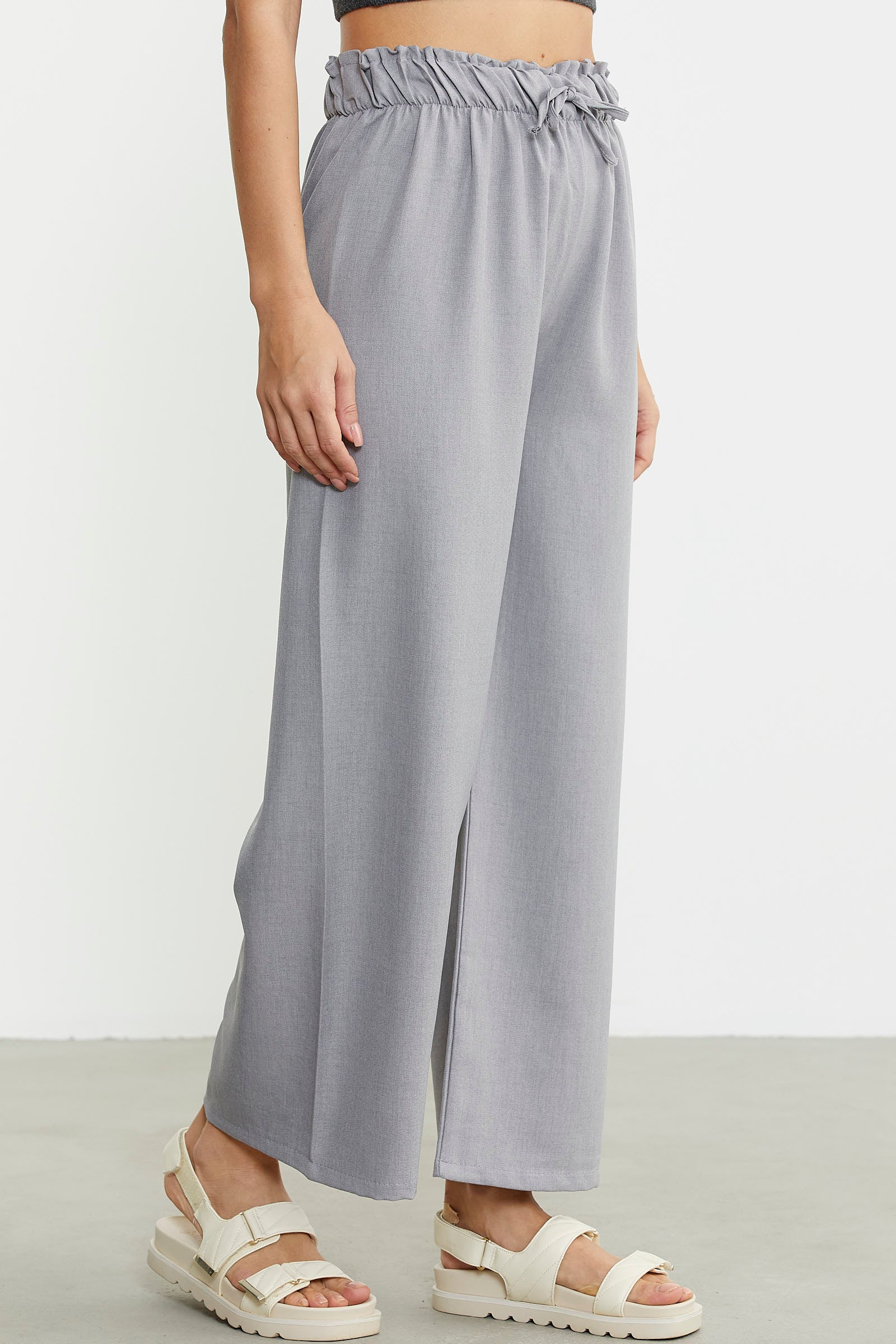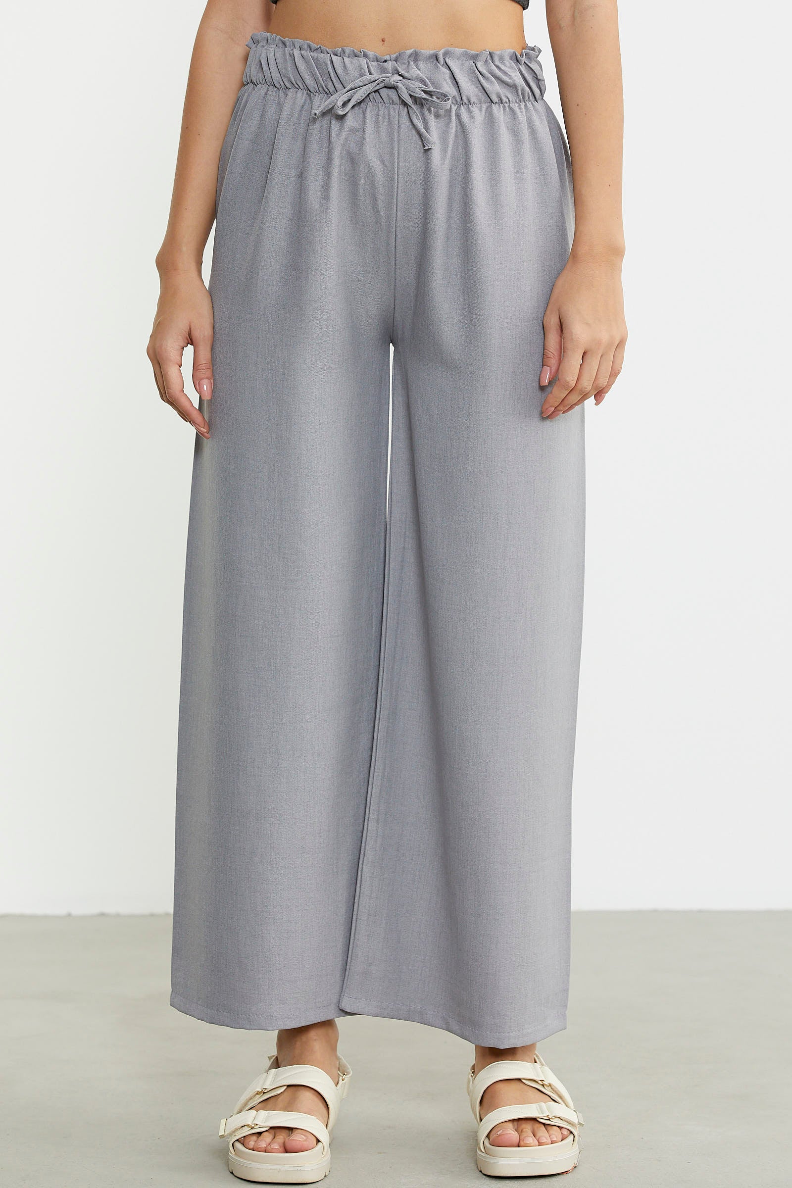 Bol Paça Beli Lastikli Pantolon - Gri