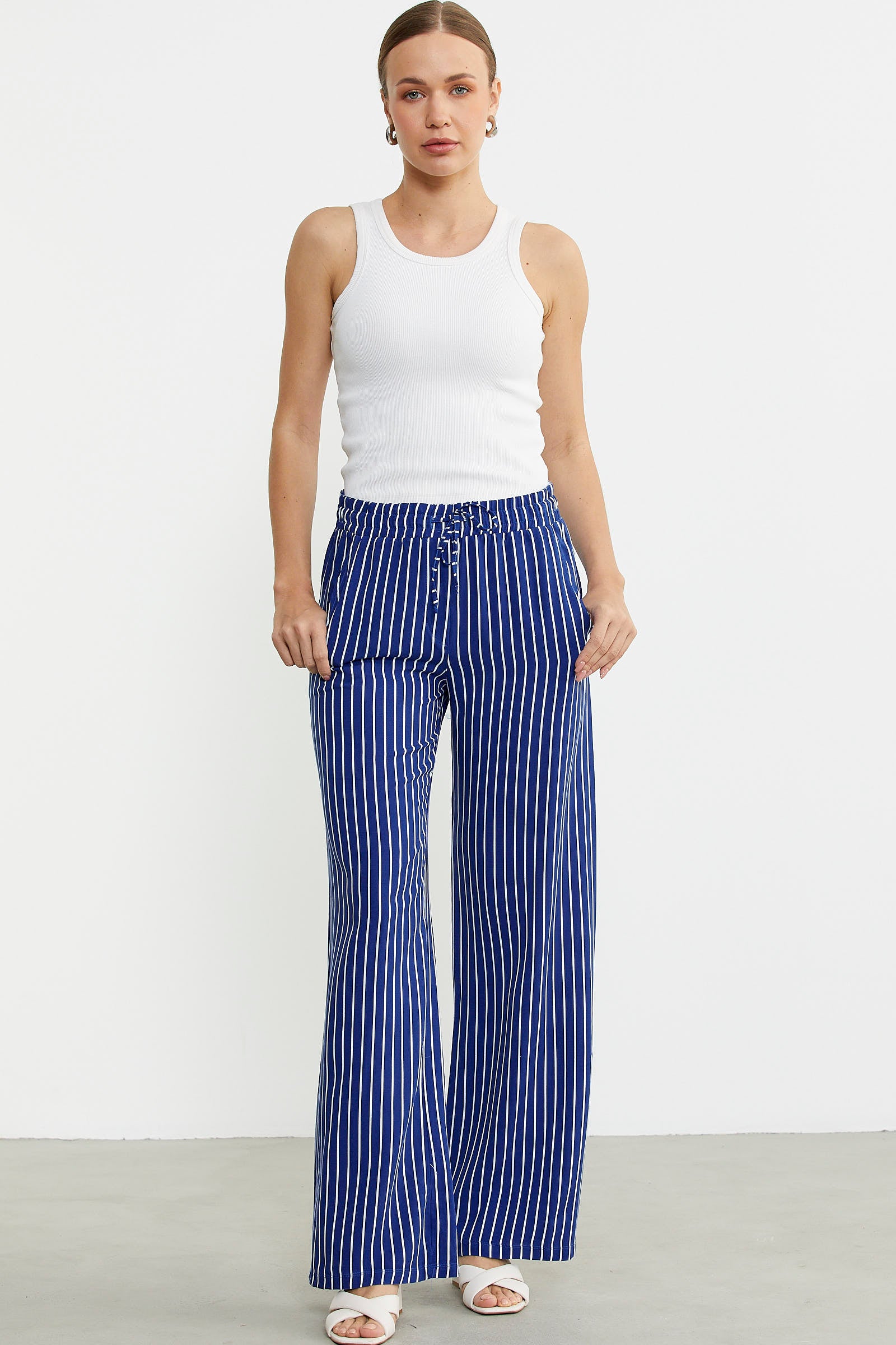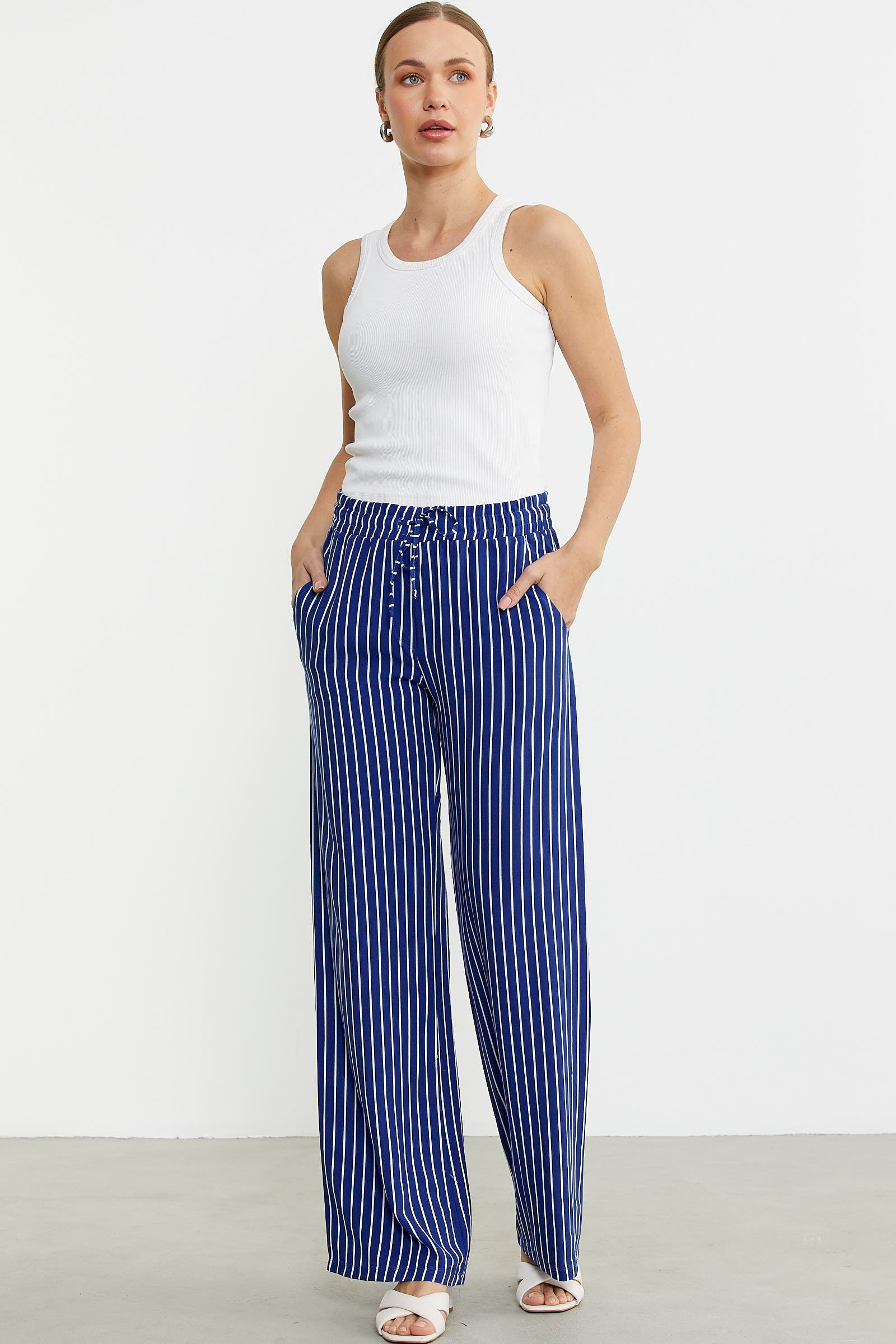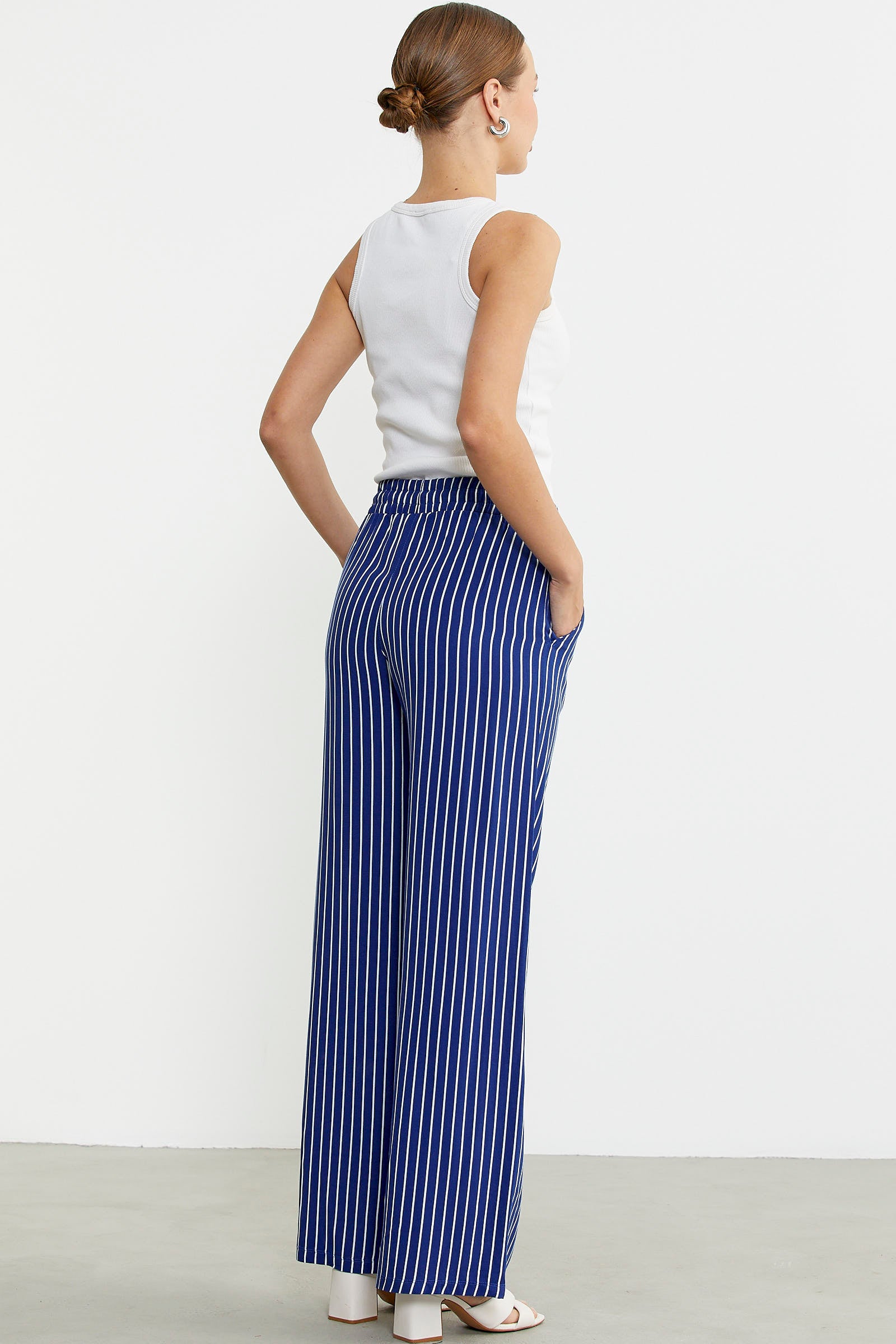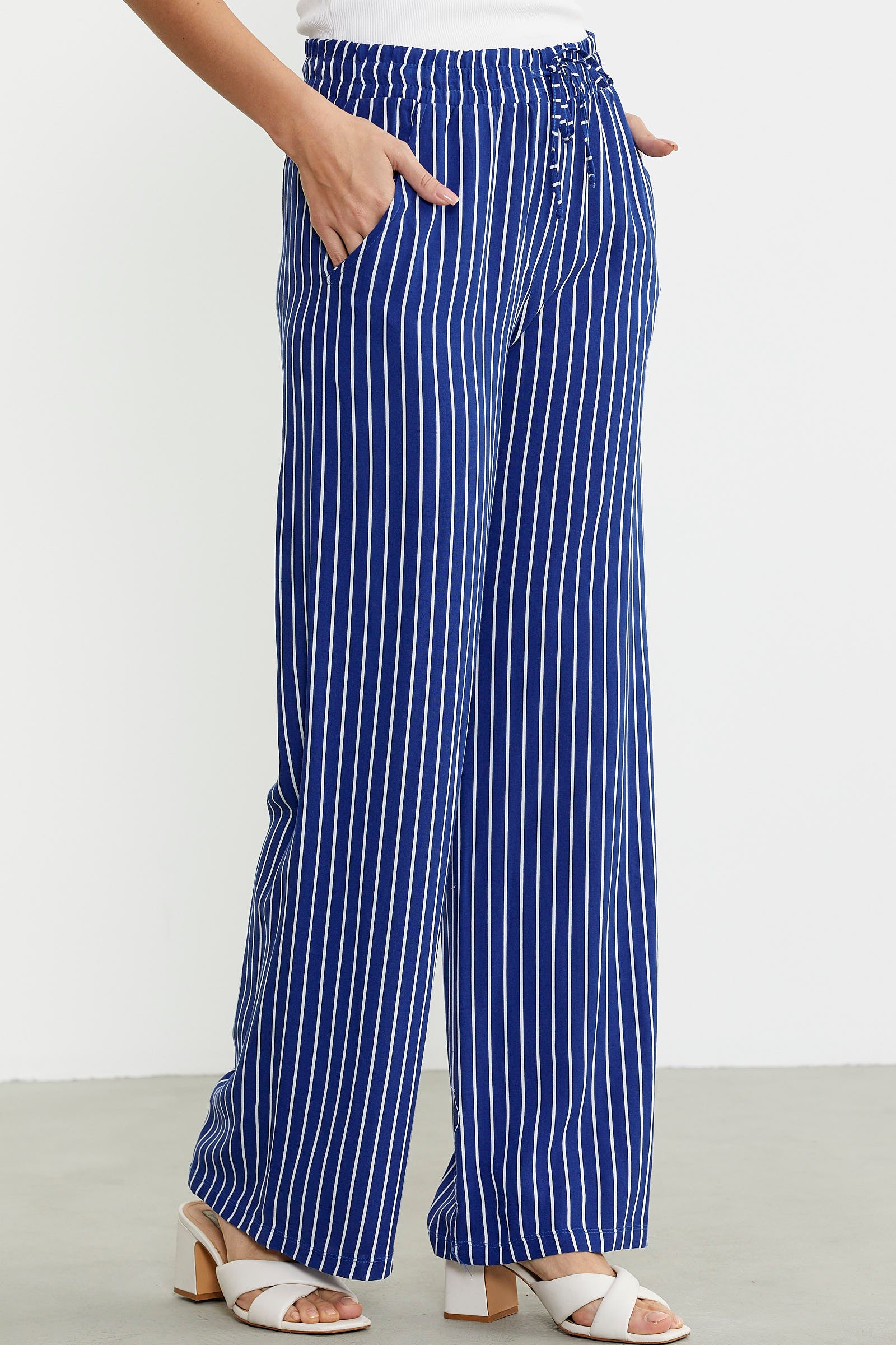 Çizgili Bol Kesim Viskon Pantolon - Saks