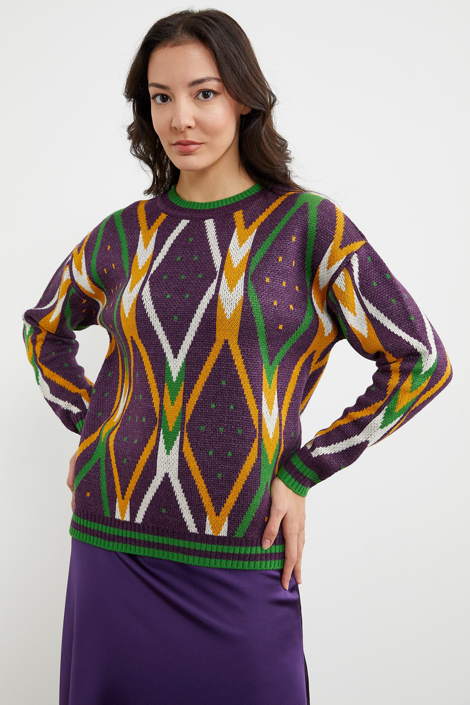 Colorful Diamond Patterned Wool Knitwear Sweater - Purple