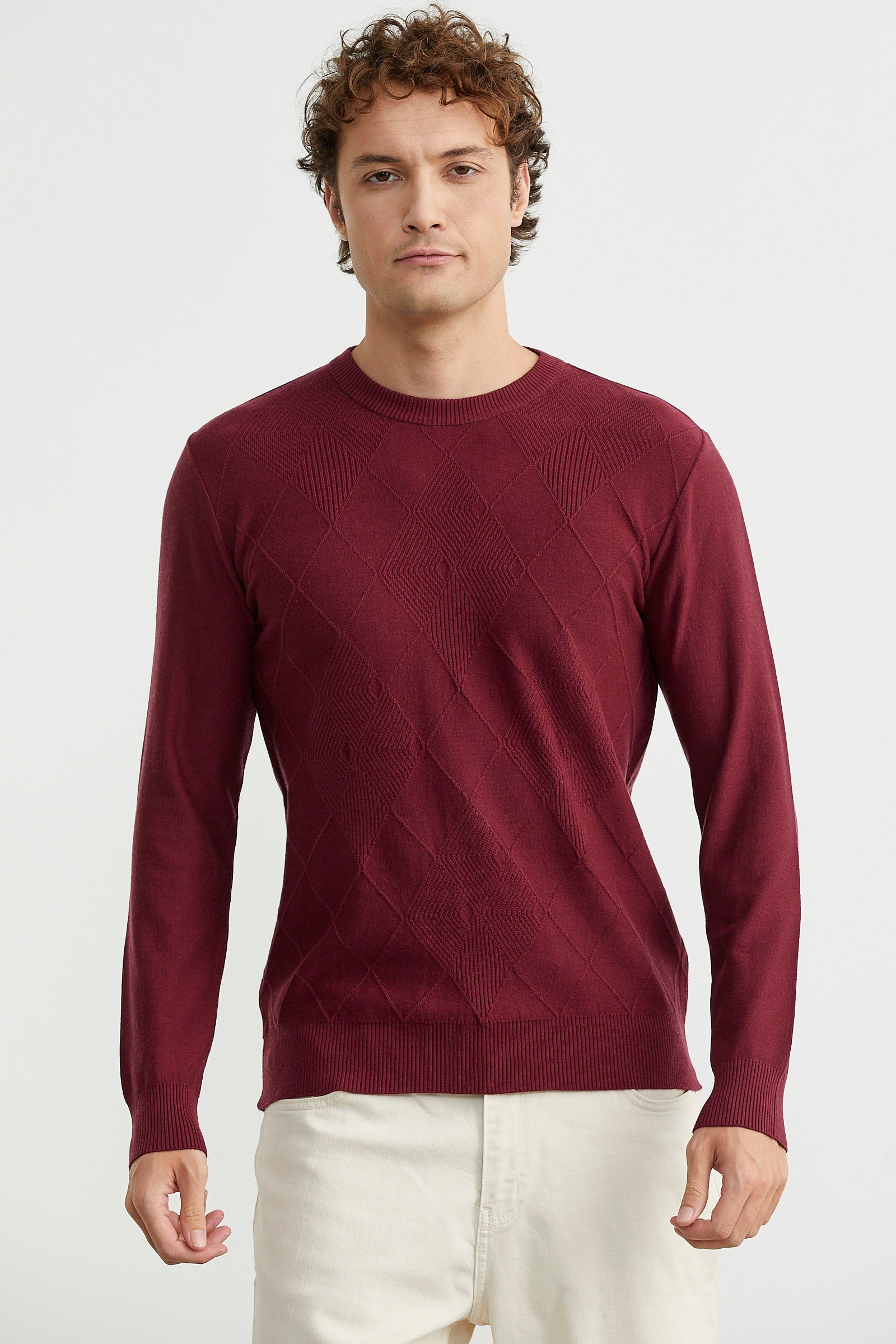 Baklava Motif Detaylı Triko Kazak - Bordo