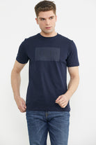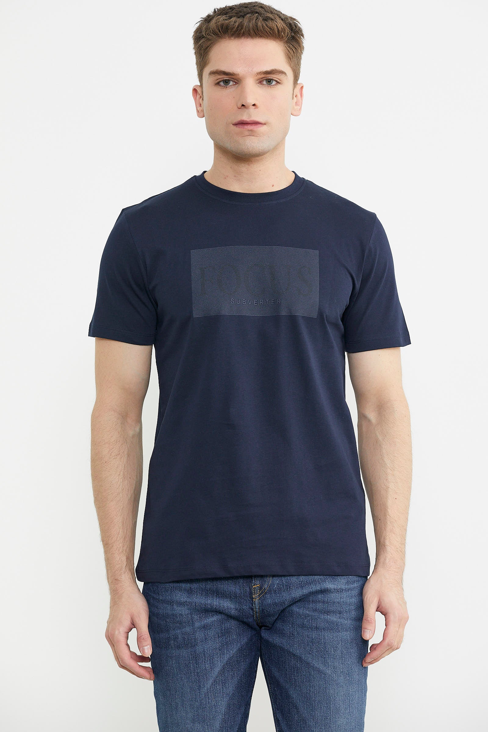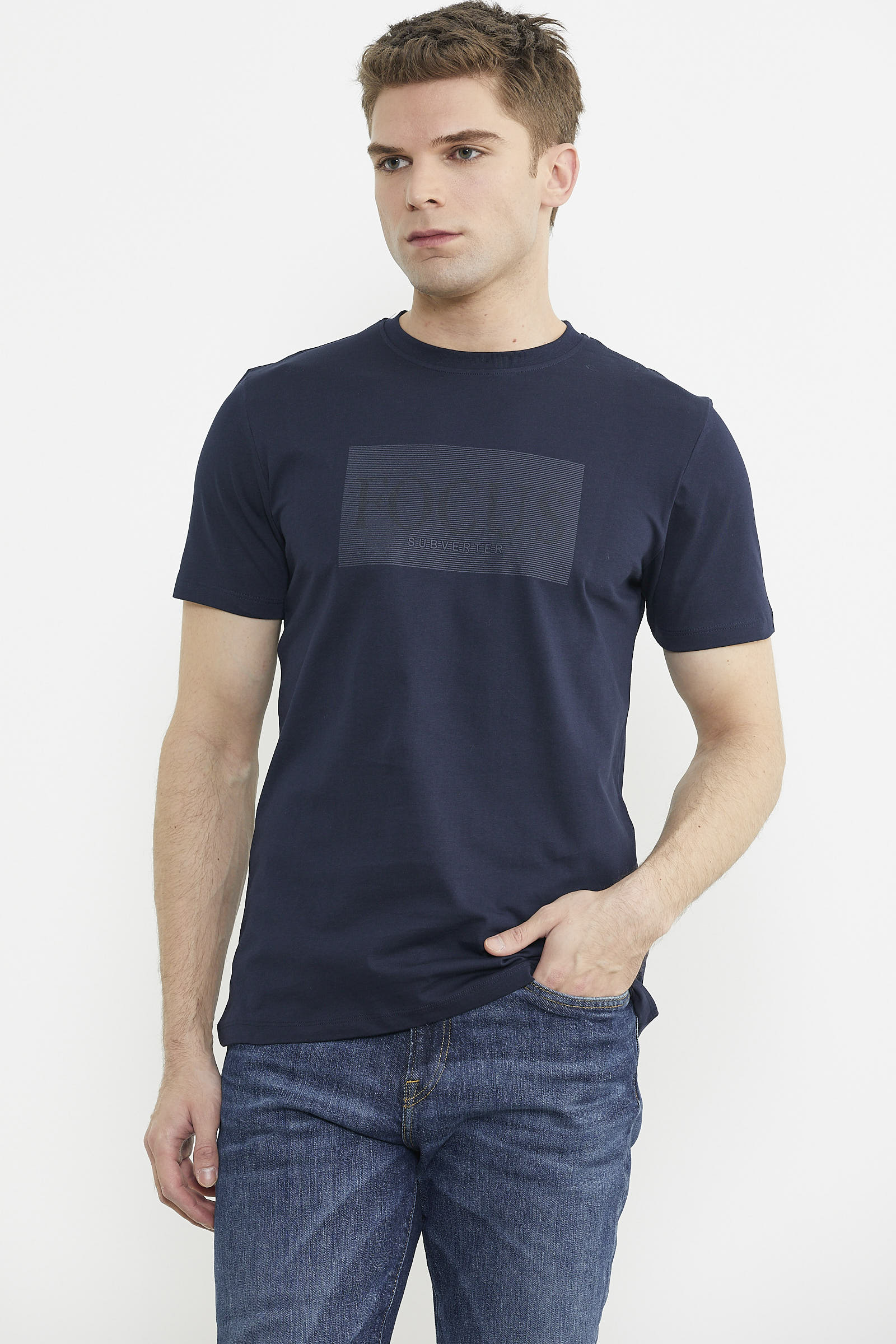 Bisiklet Yaka Baskılı Basic Tişört - Lacivert