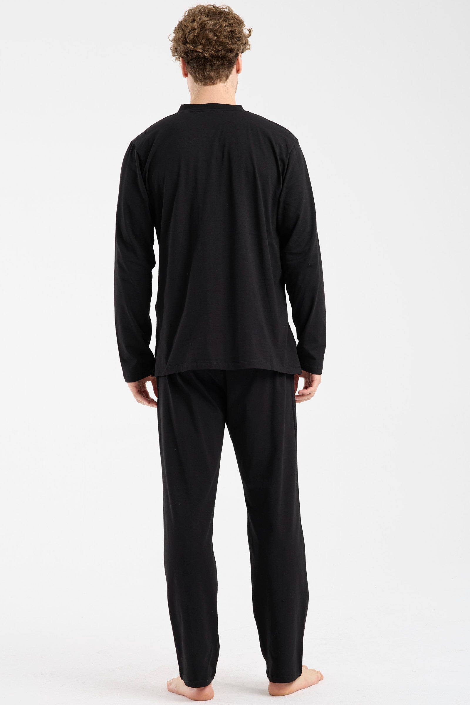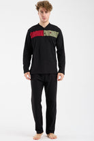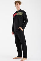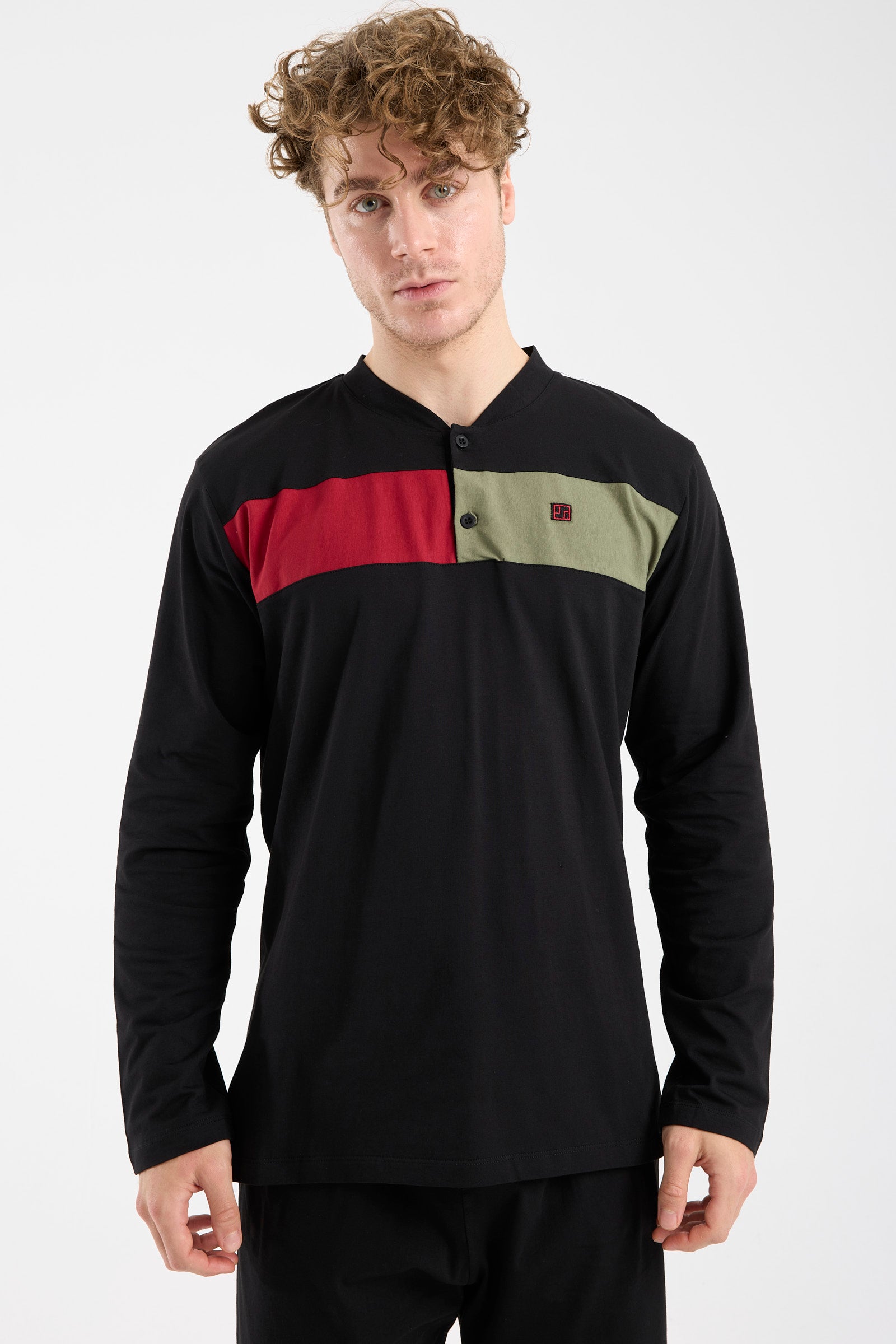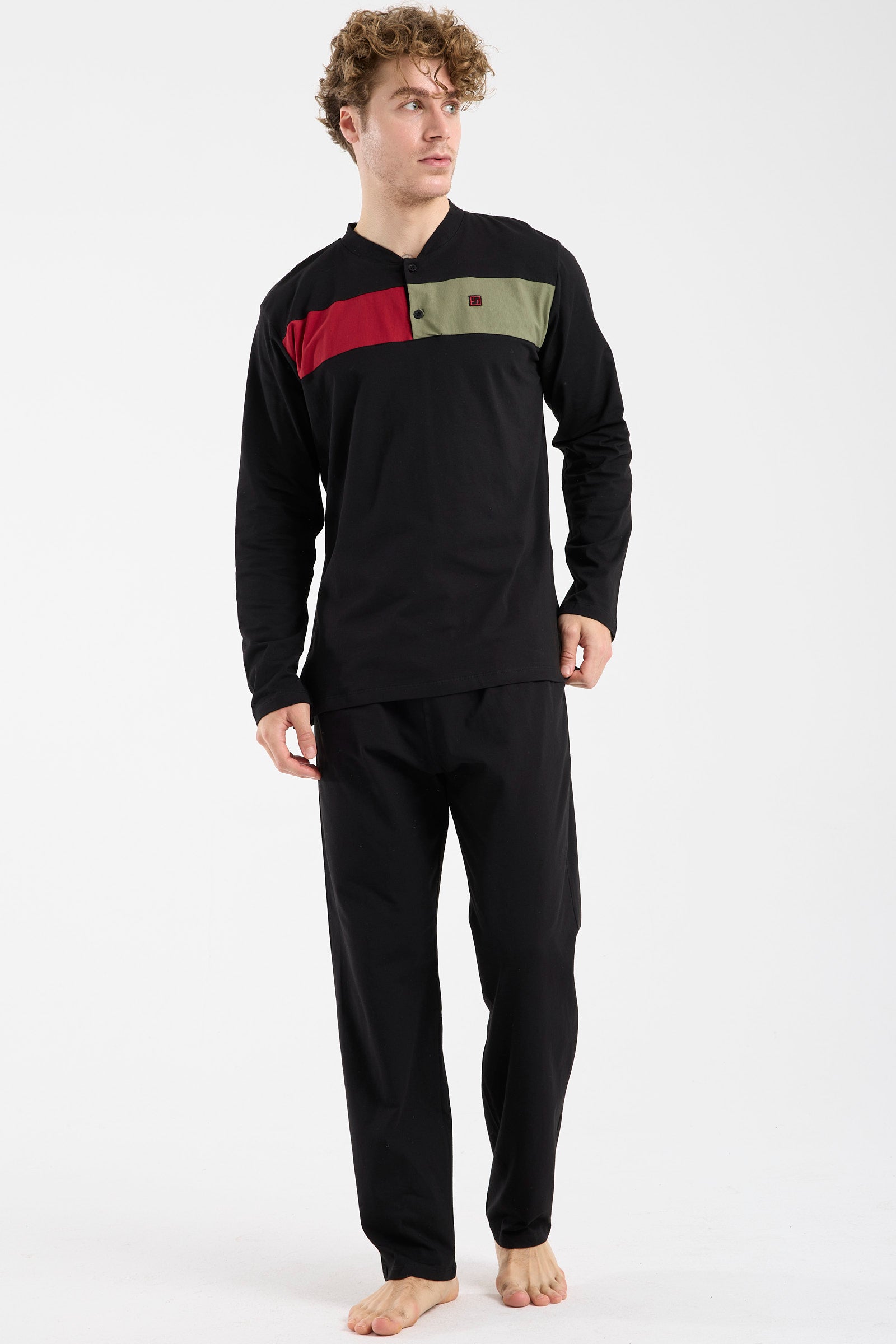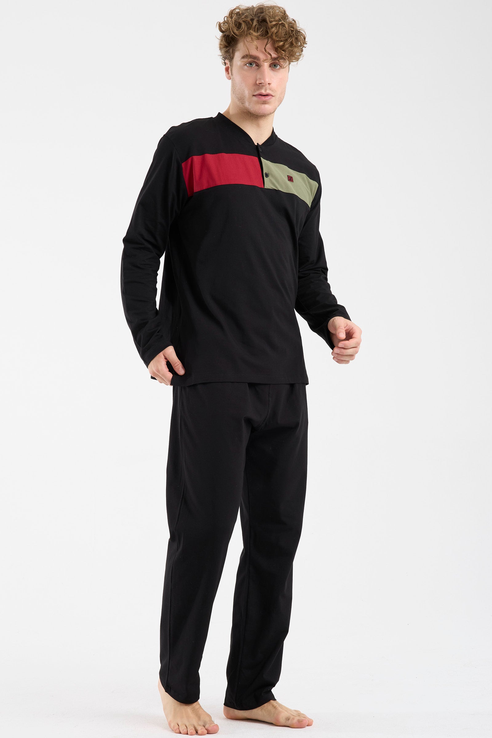 Blok Detaylı Regular Fit Pijama Takım - Siyah