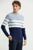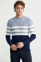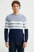 Blok Renk Geçişli Triko Kazak - Lacivert