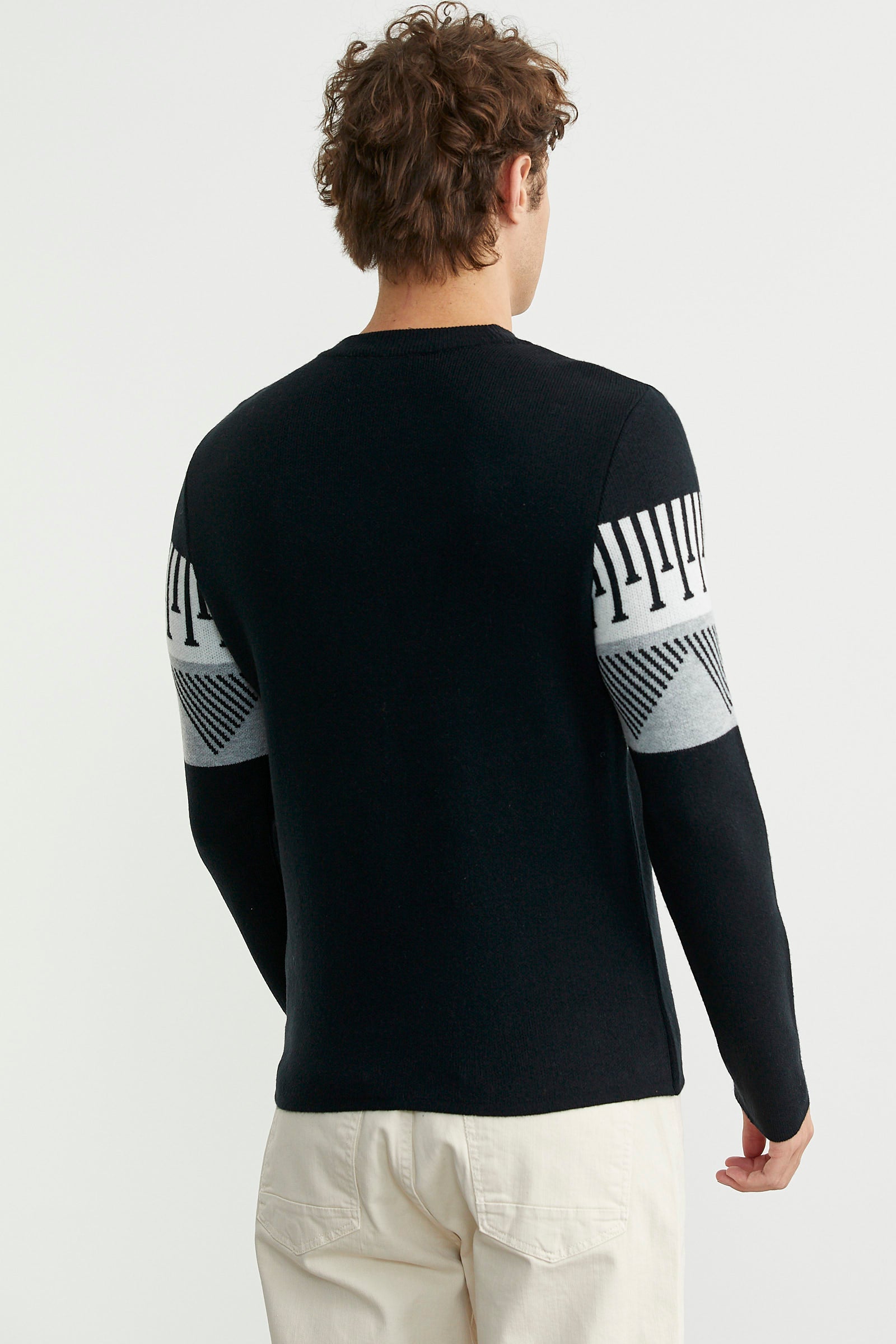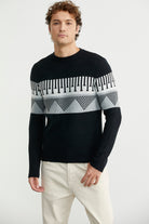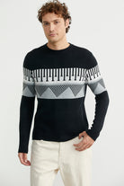 Çift Renk Motifli Triko Kazak - Siyah