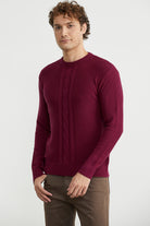 Motif Detaylı Bisiklet Yaka Triko Kazak - Bordo