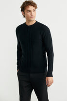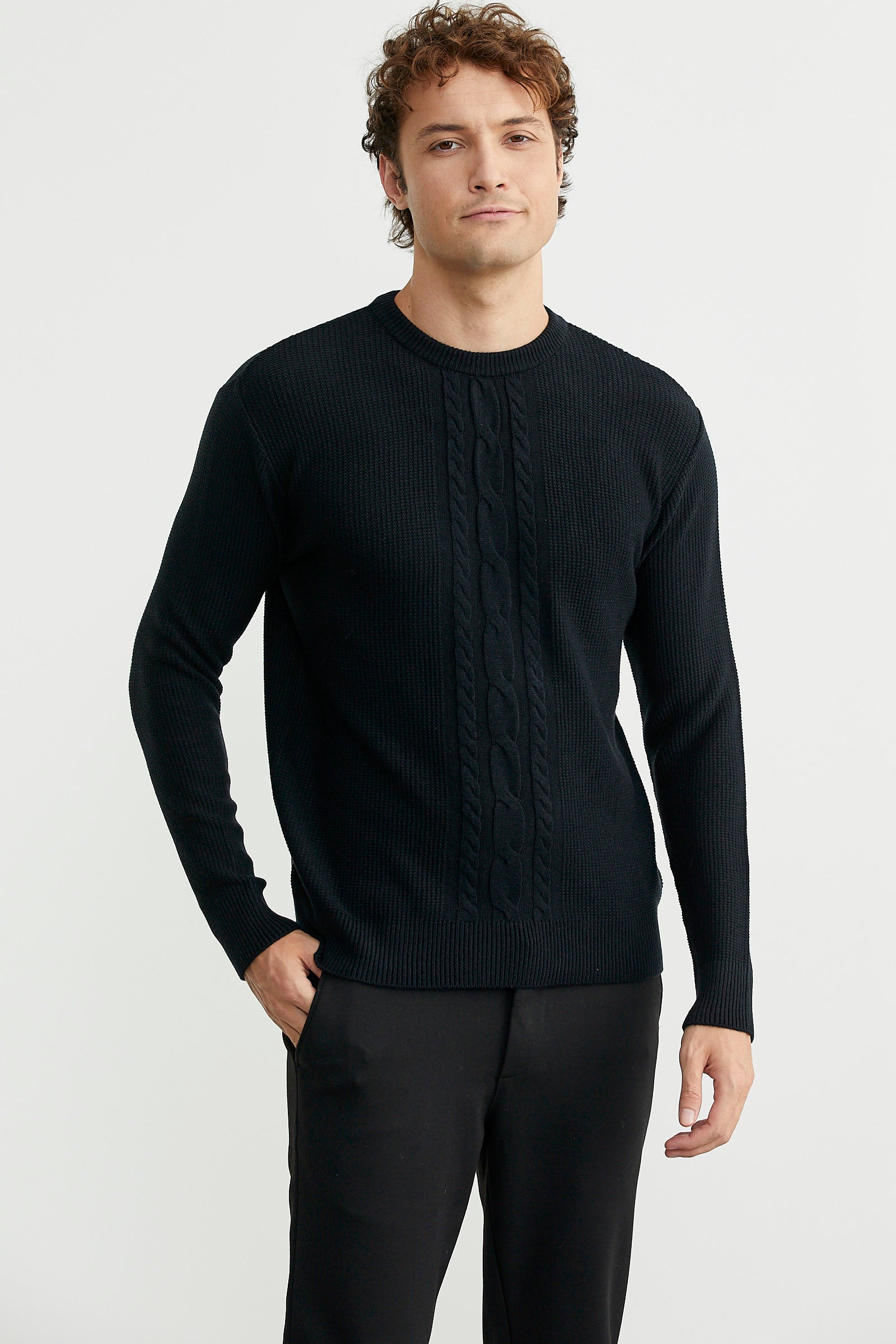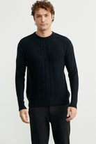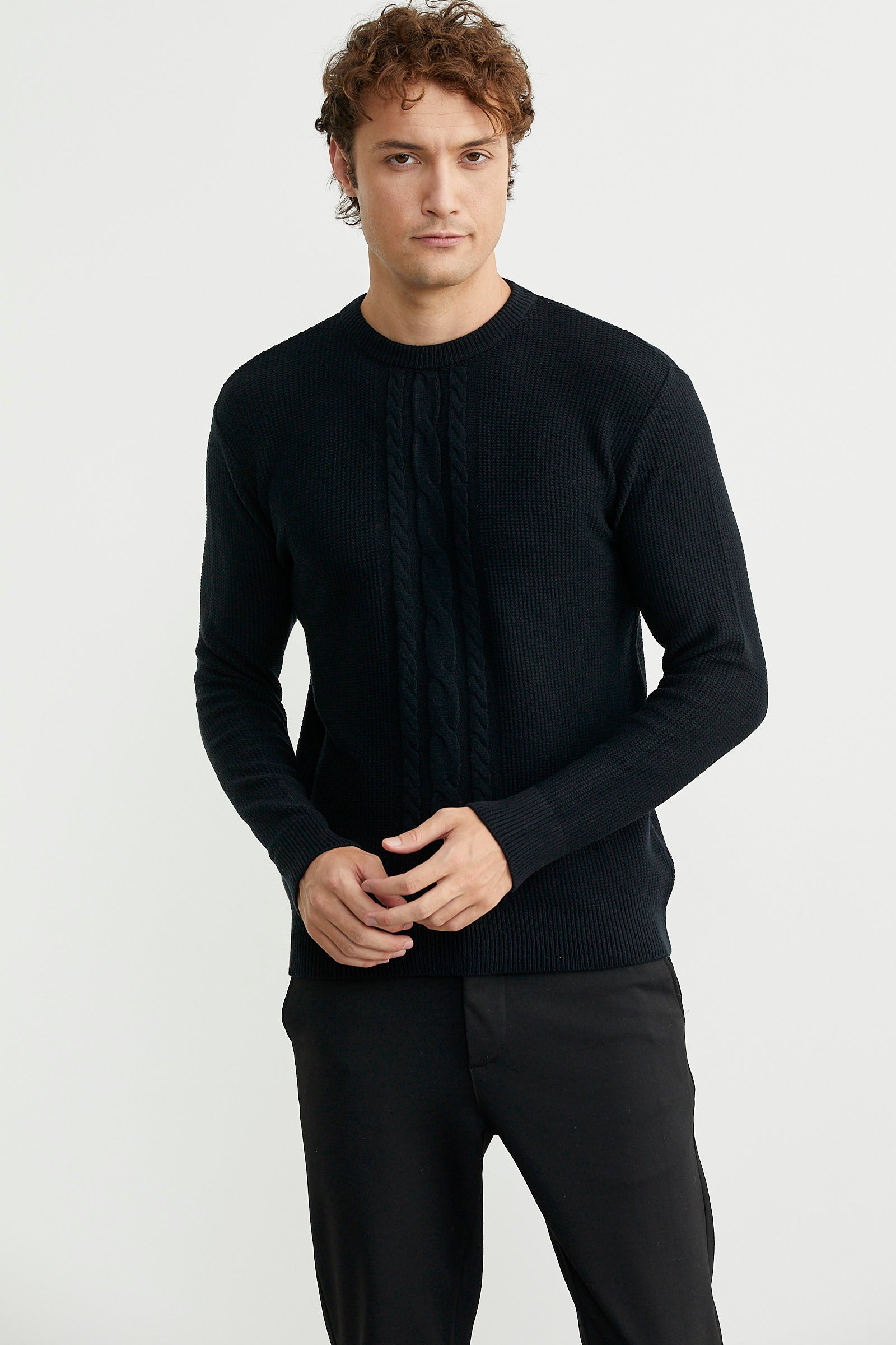 Motif Detaylı Bisiklet Yaka Triko Kazak - Siyah