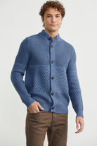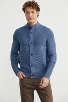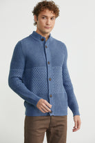 Petek Motifli Dik Yaka Triko Hırka - Indigo