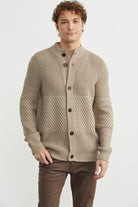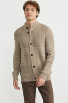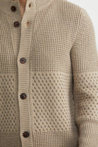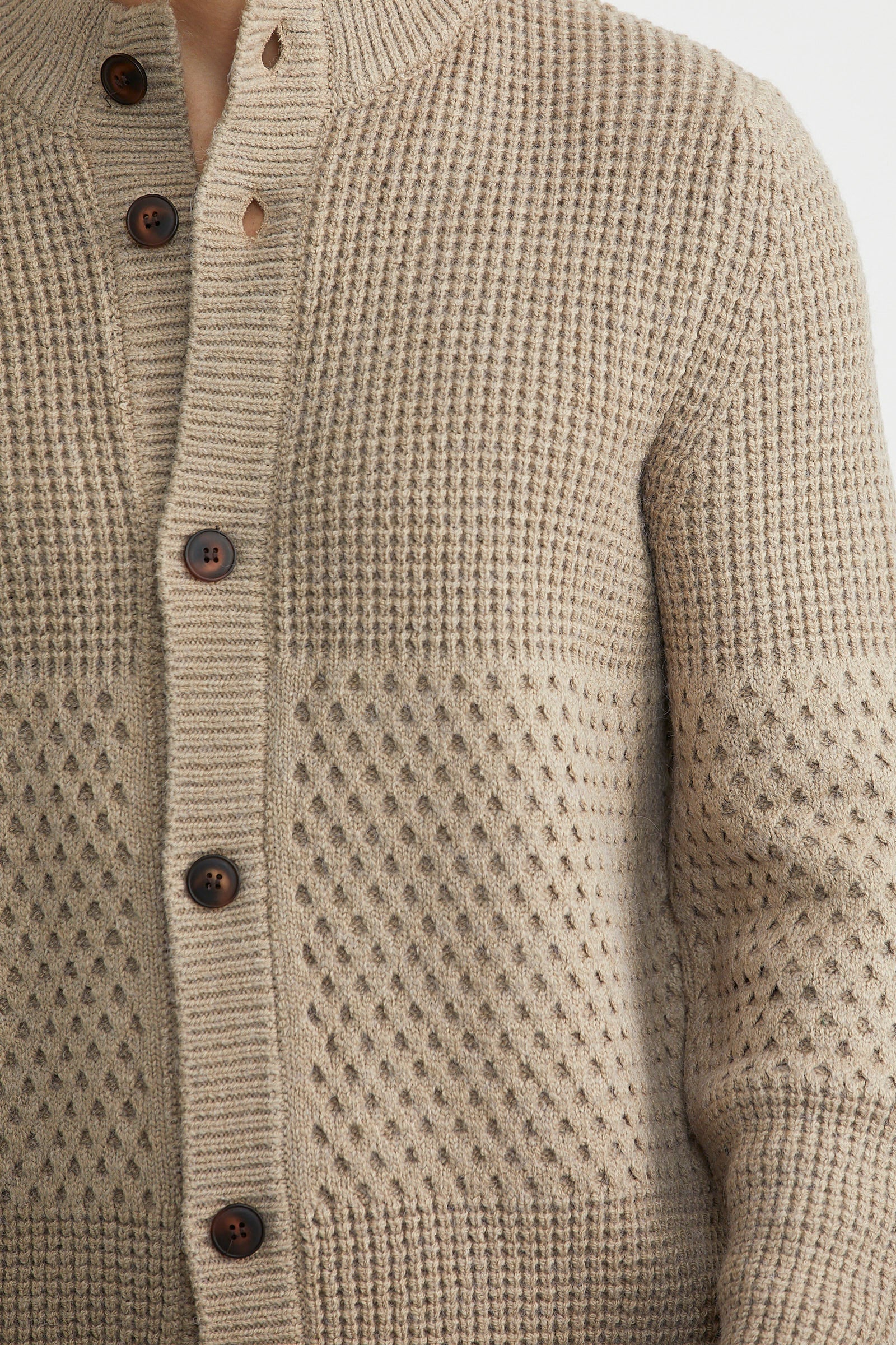 Petek Motifli Dik Yaka Triko Hırka - Kamel