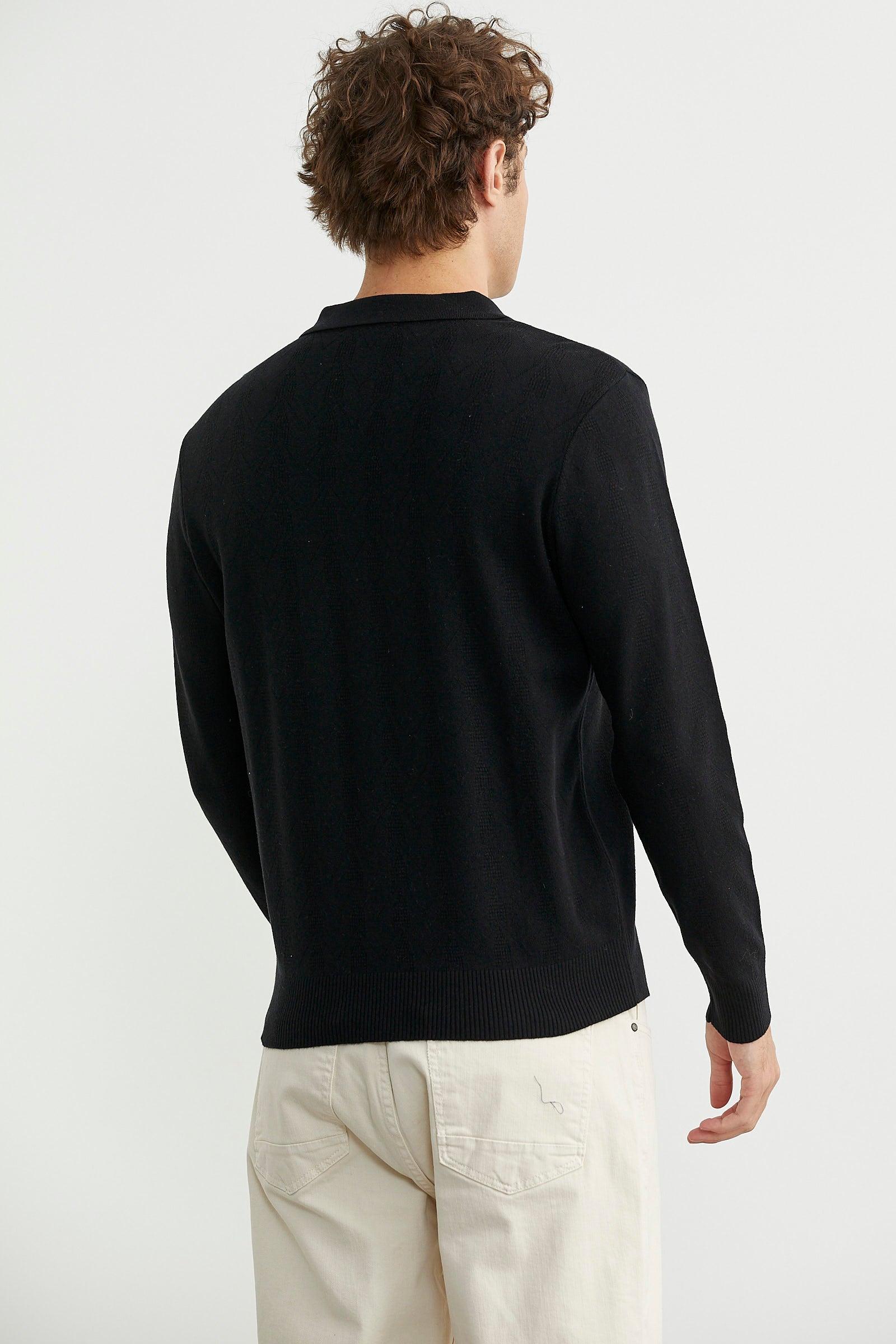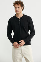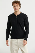 Fermuarlı Polo Yaka Triko Kazak - Siyah