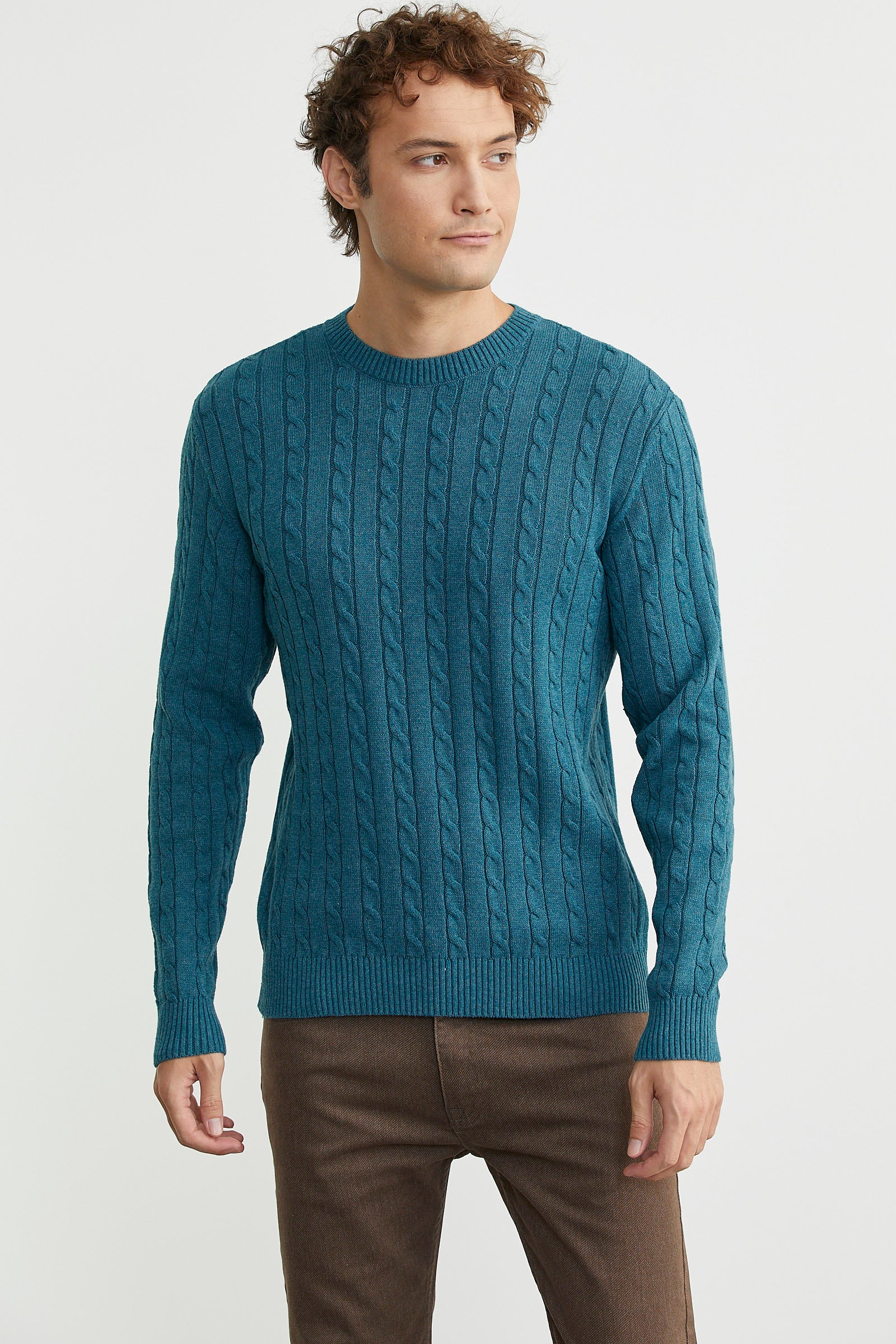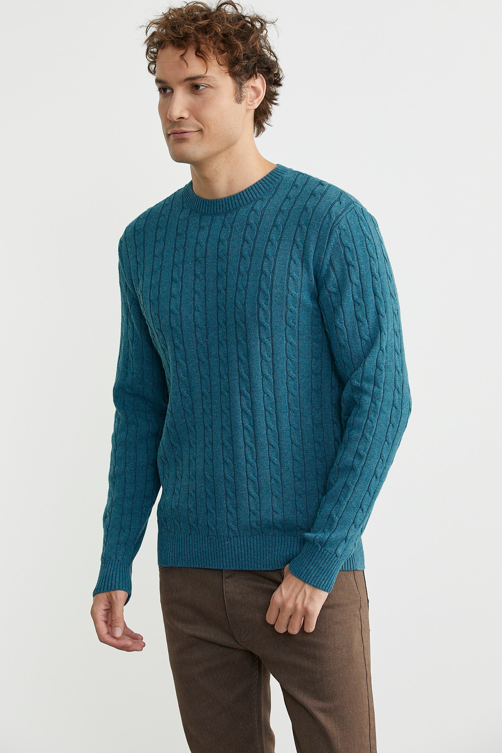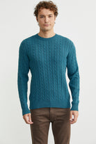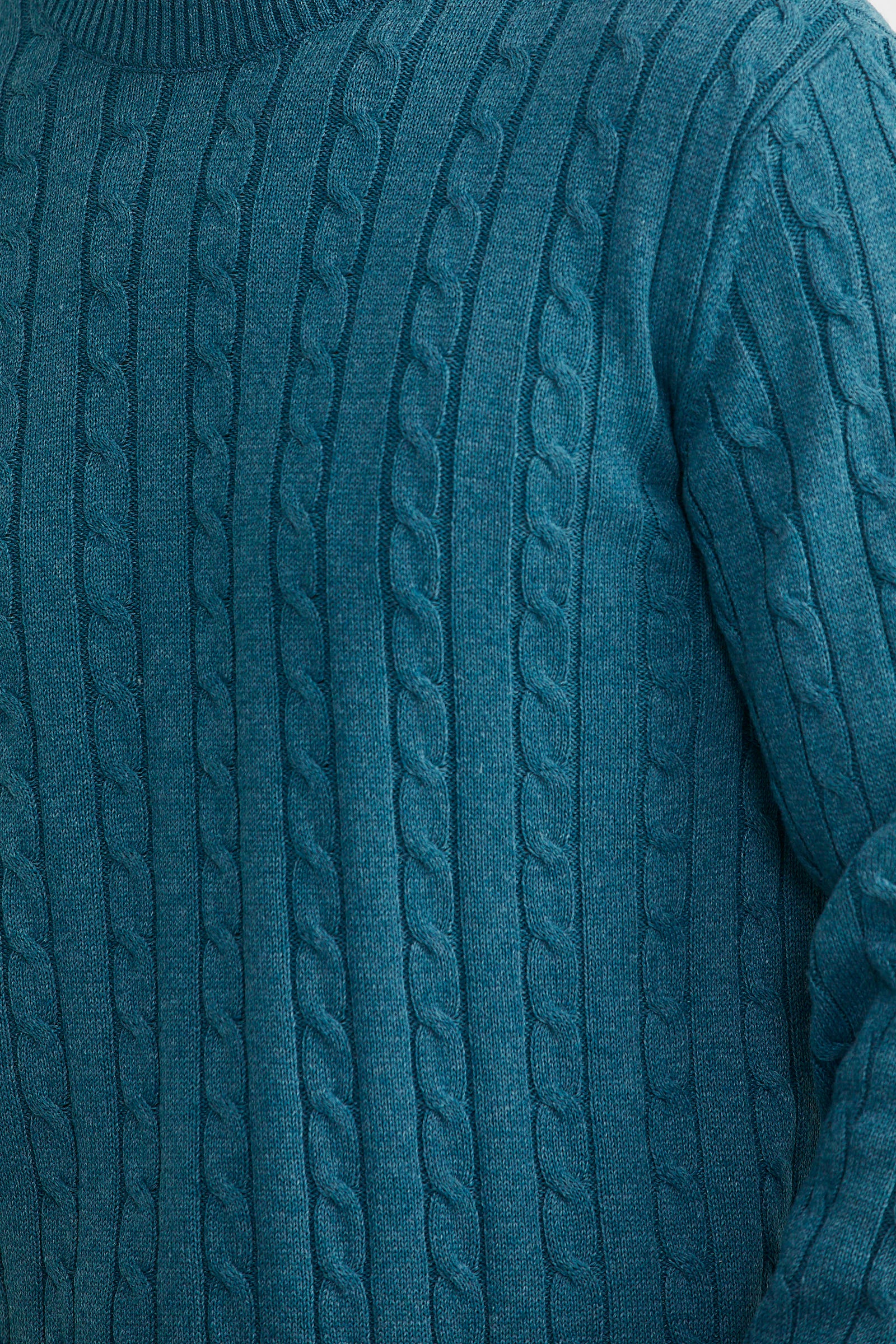 Pamuklu Saç Örgü Detaylı Triko Kazak - Petrol