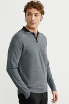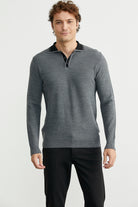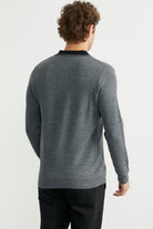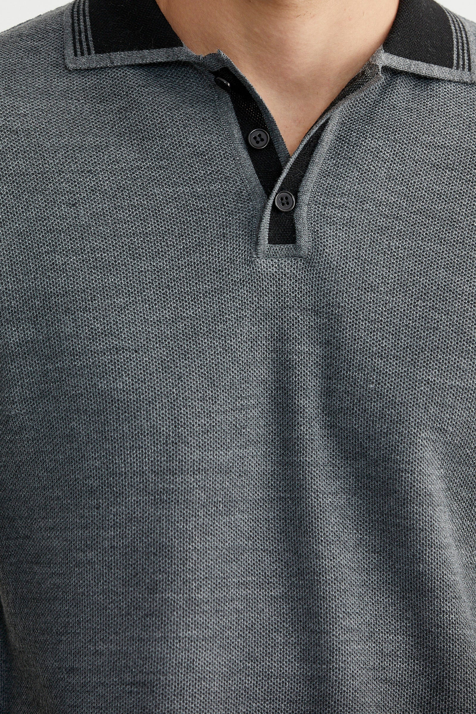 Patlı polo yaka triko kazak yün içermektedir. Yakada renk detayına sahiptir.