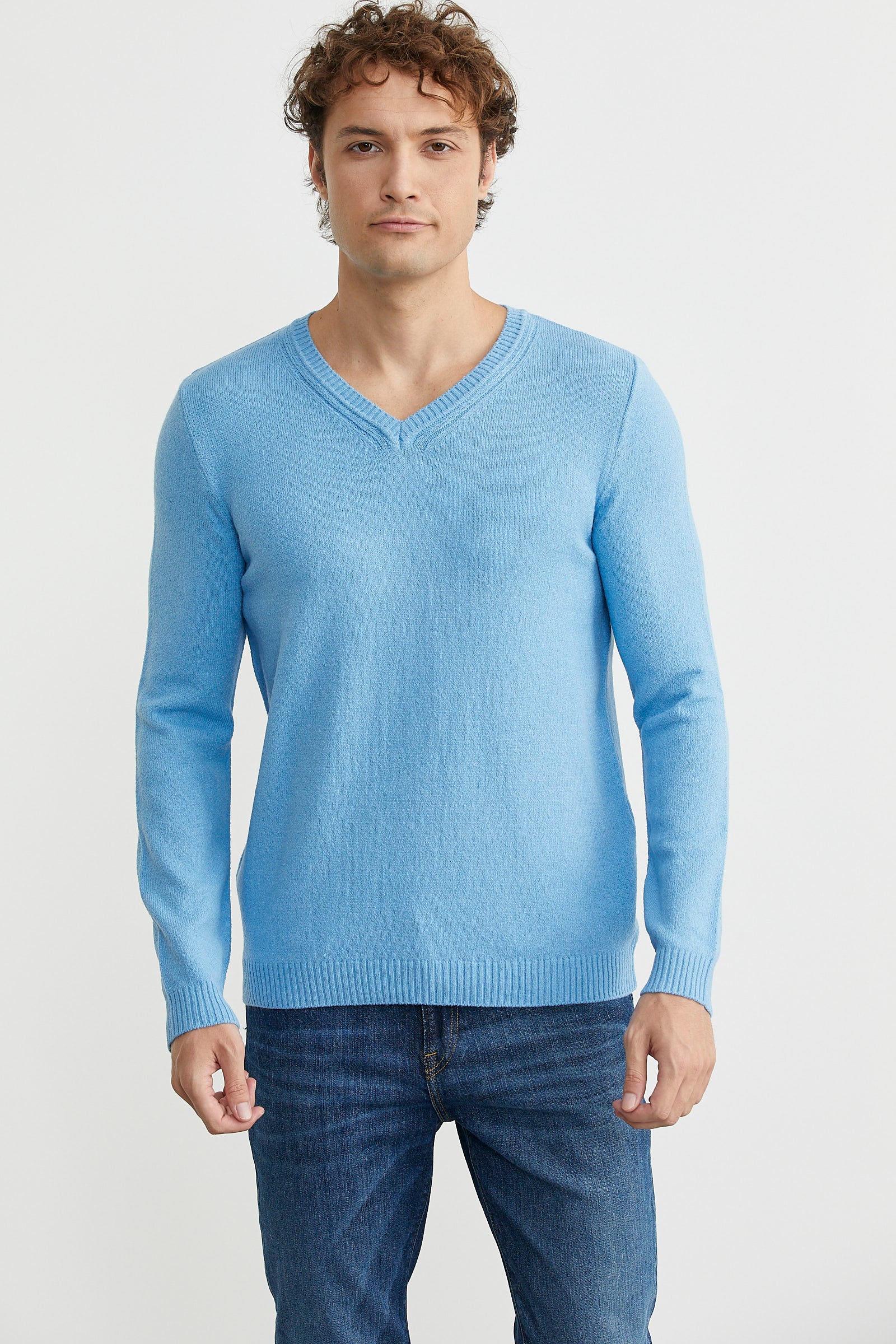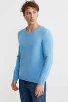 V Yaka Basic Triko Kazak - Açık Mavi
