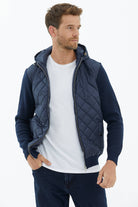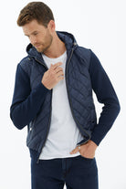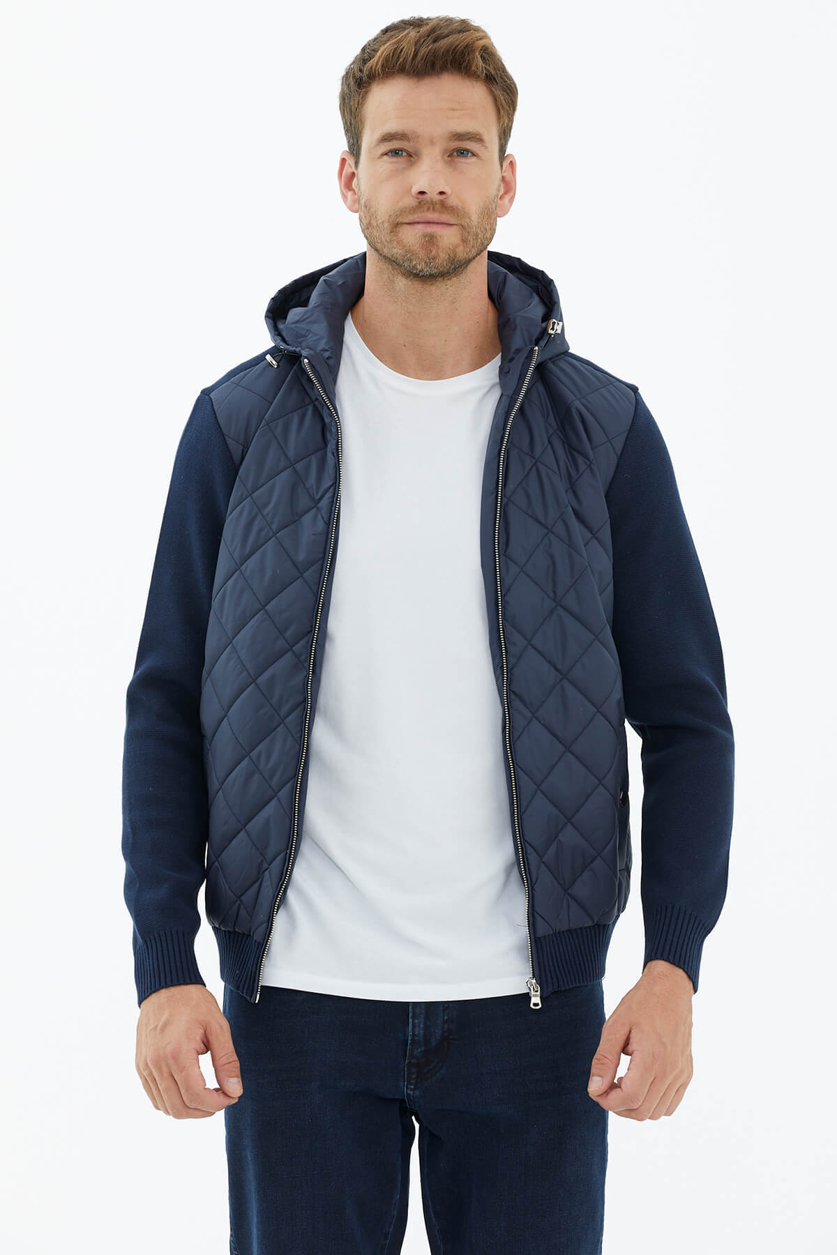 Kapüşonlu Fermuarlı Kapitone Triko Mont - Lacivert