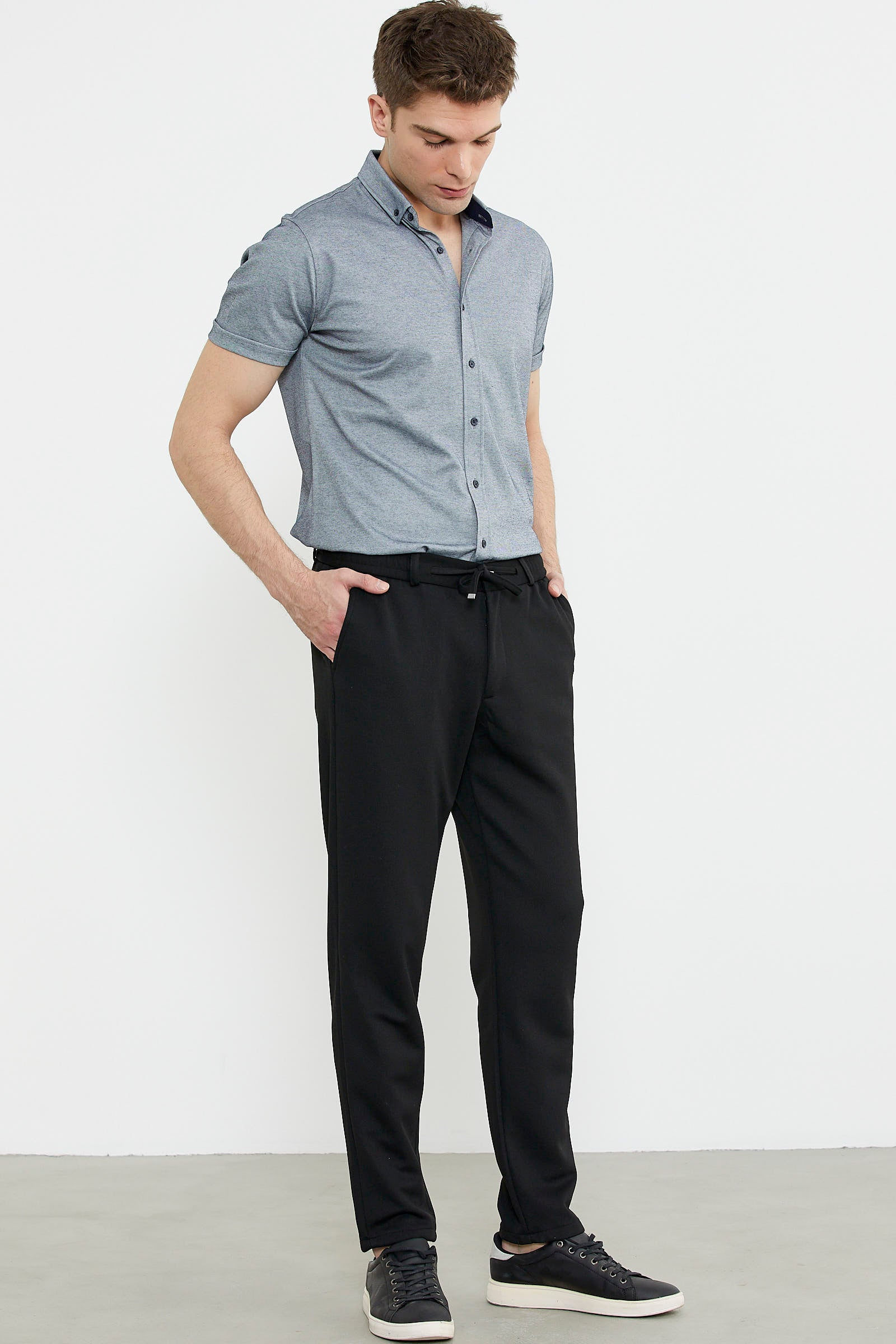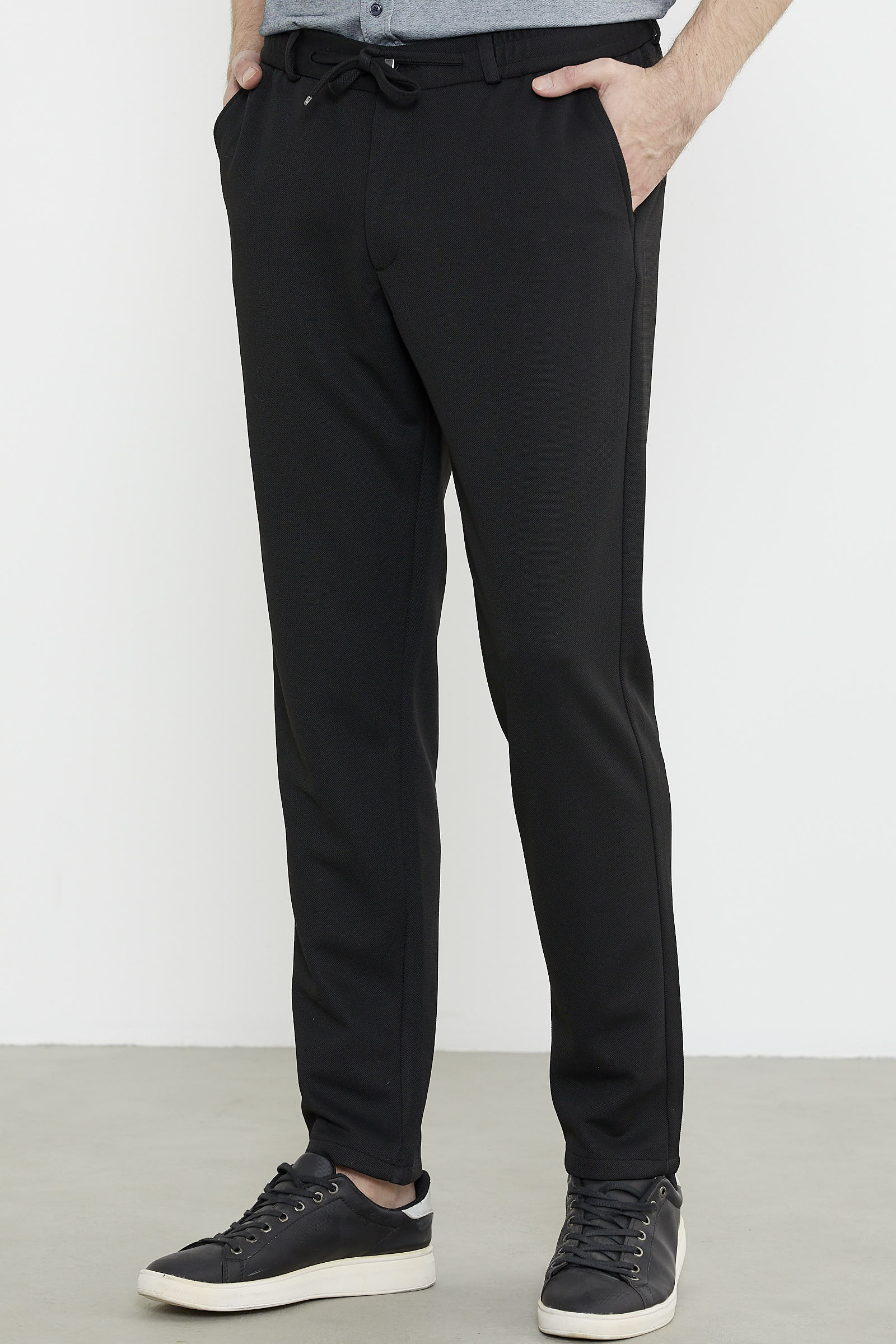 Yan Cepli Beli Lastikli Pantolon - Siyah