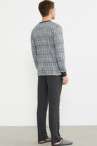 Sıfır Yaka Desenli Rahat Kalıp Pijama Takım - Antrasit