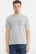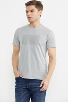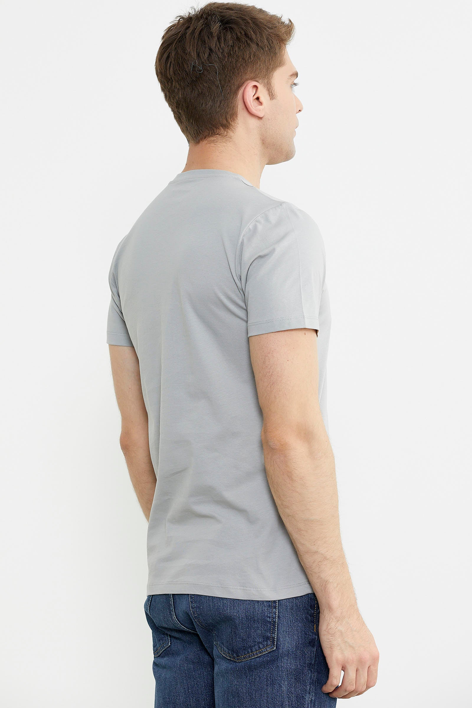 Bisiklet Yaka Baskılı Basic Tişört - Gri