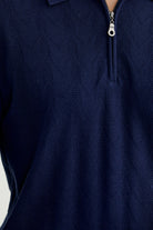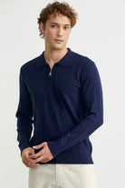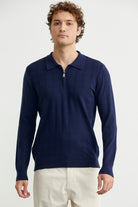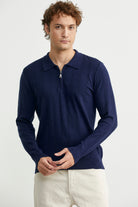 Fermuarlı Polo Yaka Triko Kazak - Lacivert