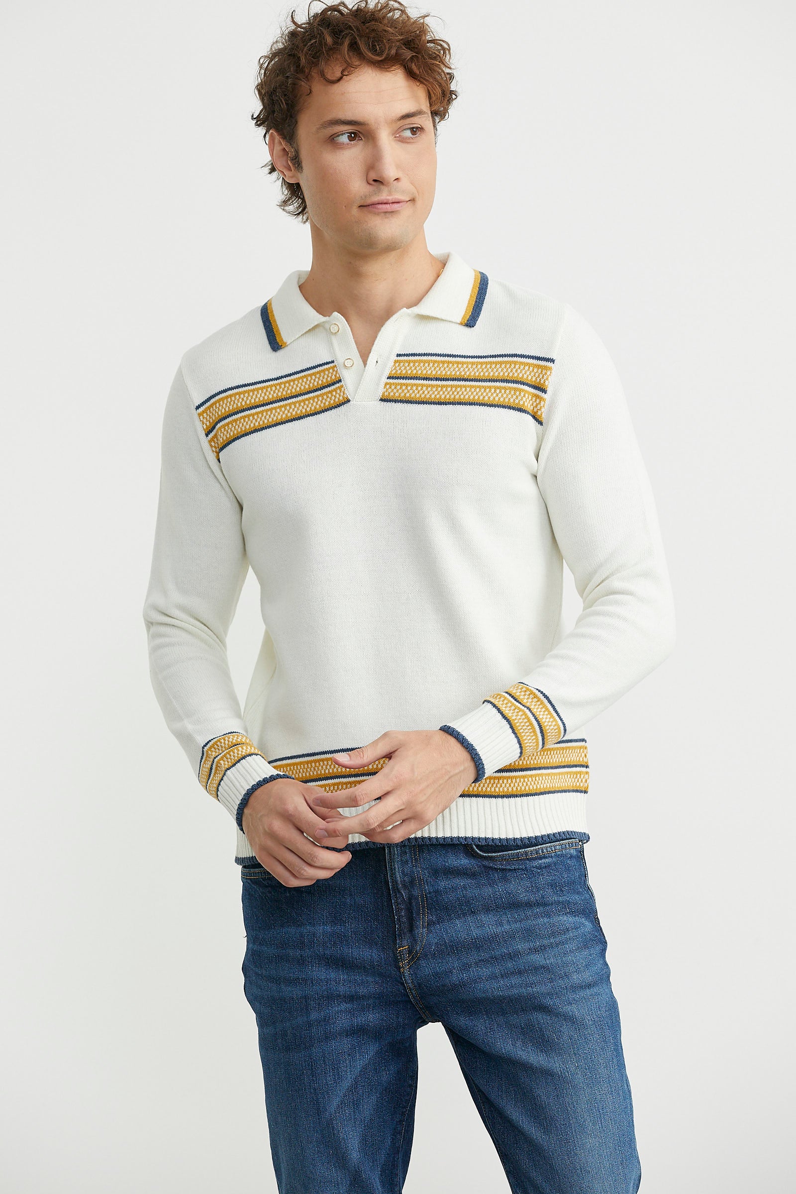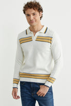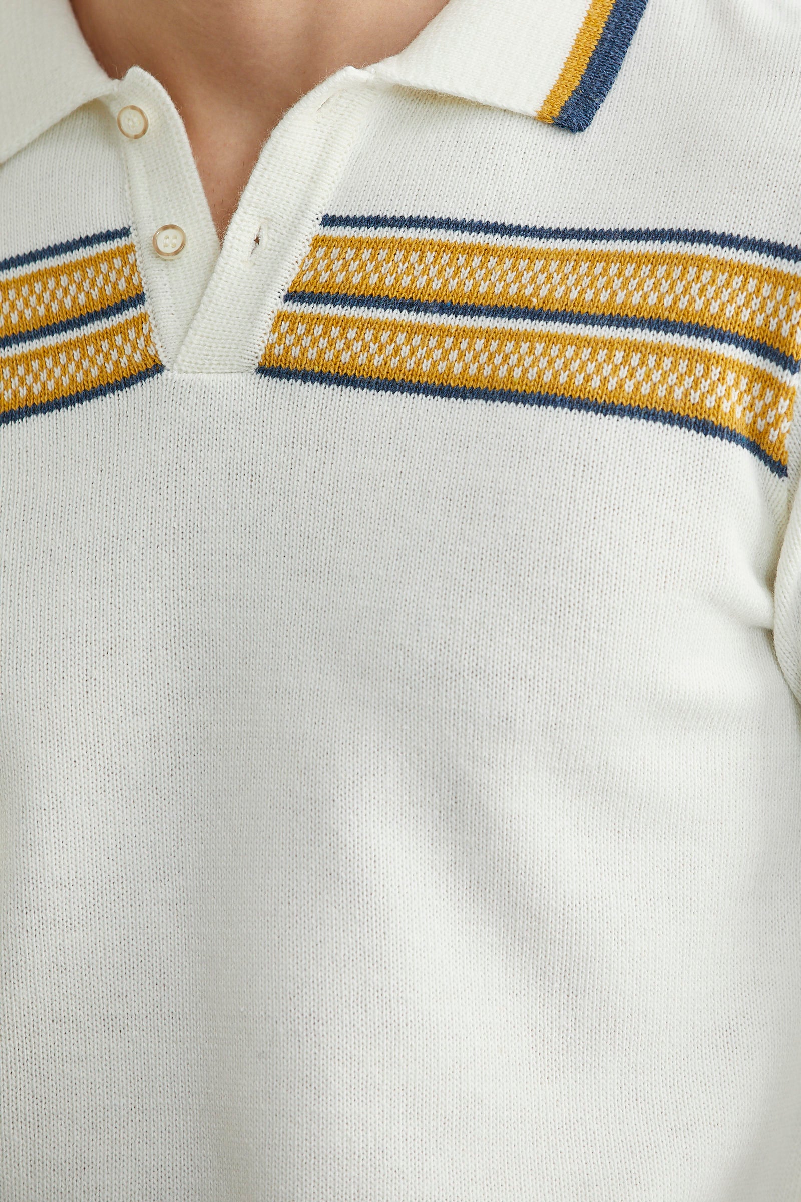 Polo Yaka Kilim Motifli Triko Kazak - Kemik