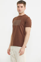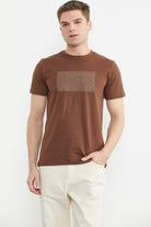 Bisiklet Yaka Baskılı Basic Tişört - Kahve