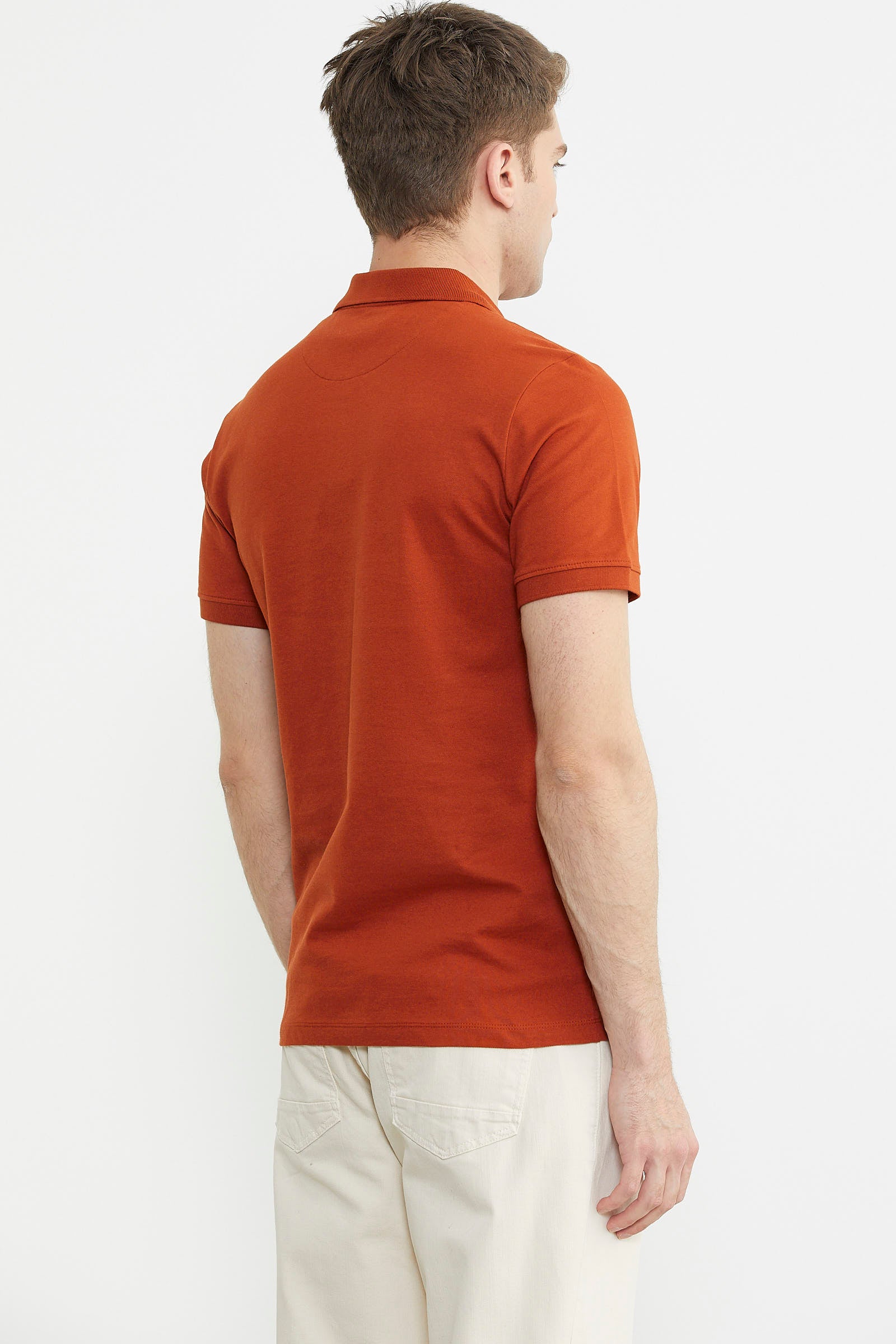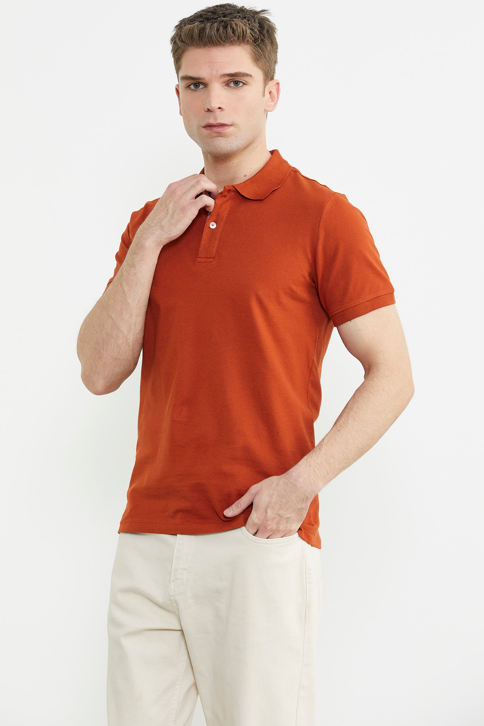 Detaylı Polo Yaka Kısa Kol Tişört - Kiremit