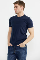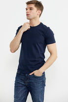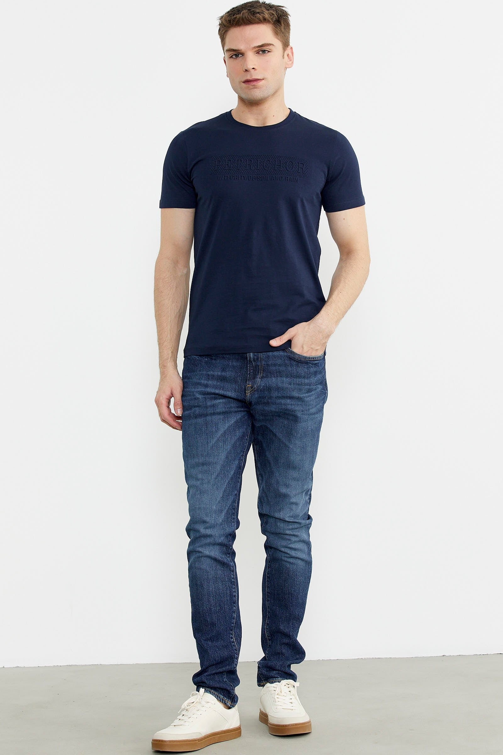 Kabartma Baskı Detaylı Pamuk Tişört - Lacivert