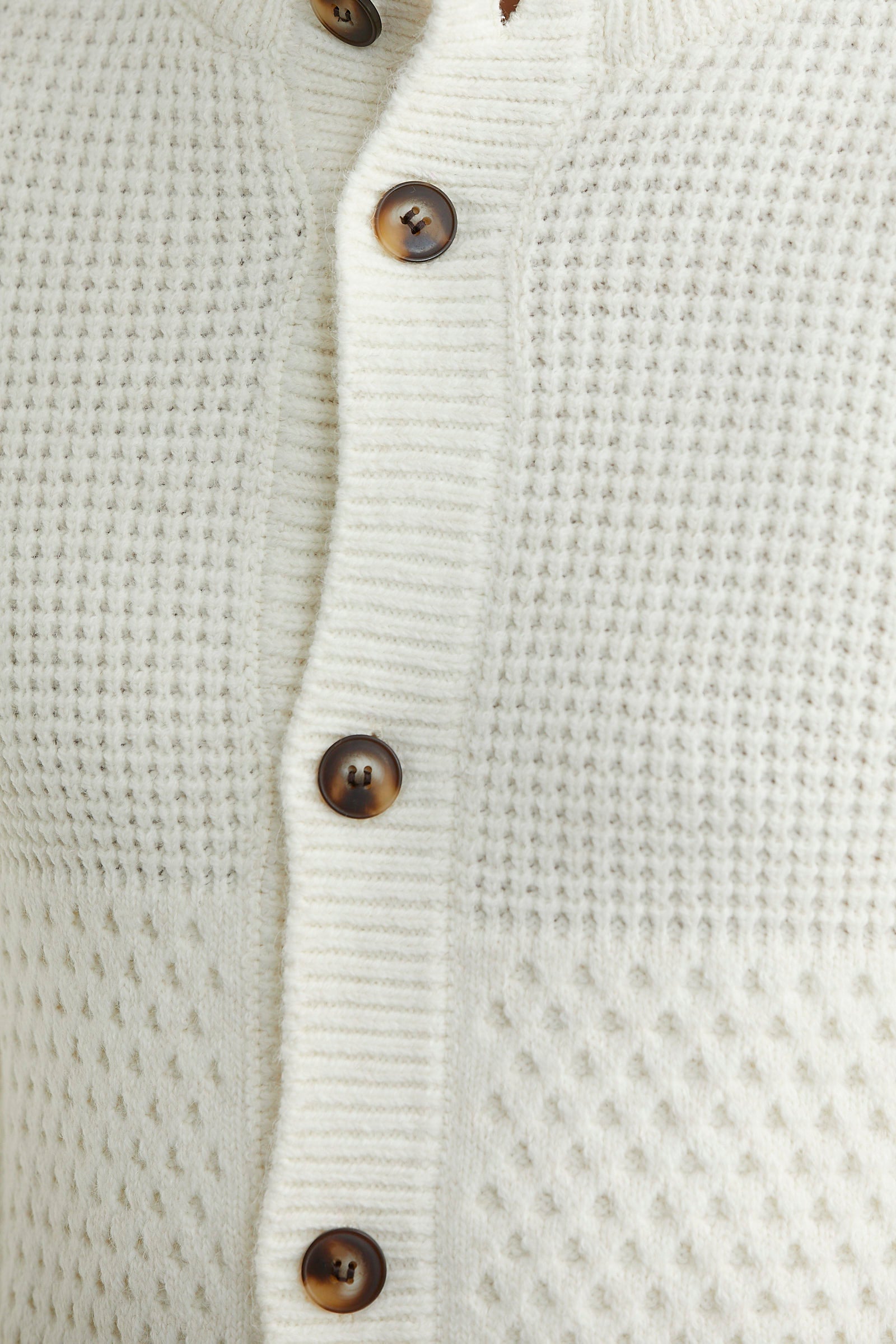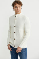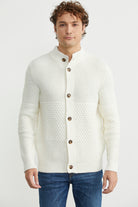 Petek Motifli Dik Yaka Triko Hırka - Kemik