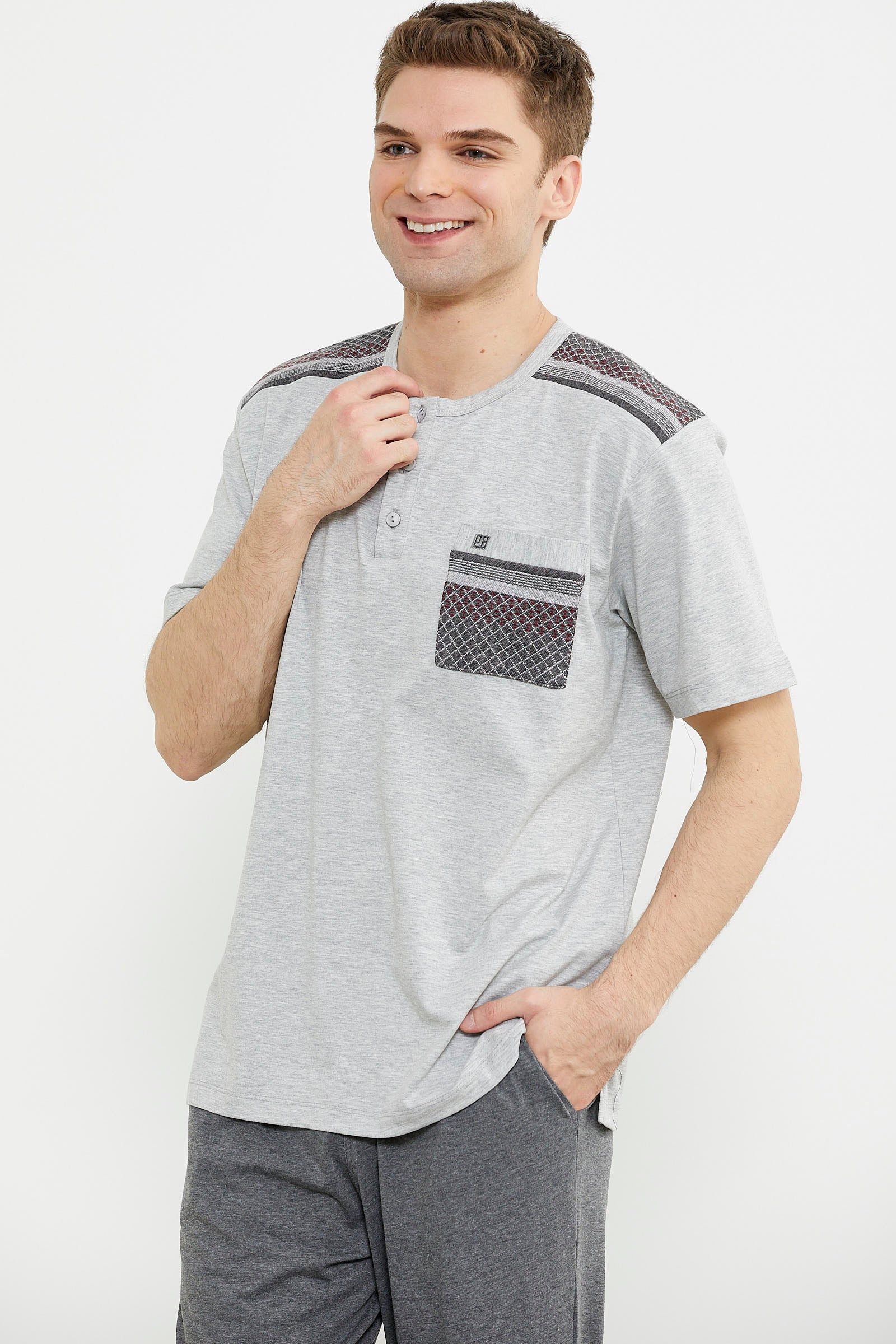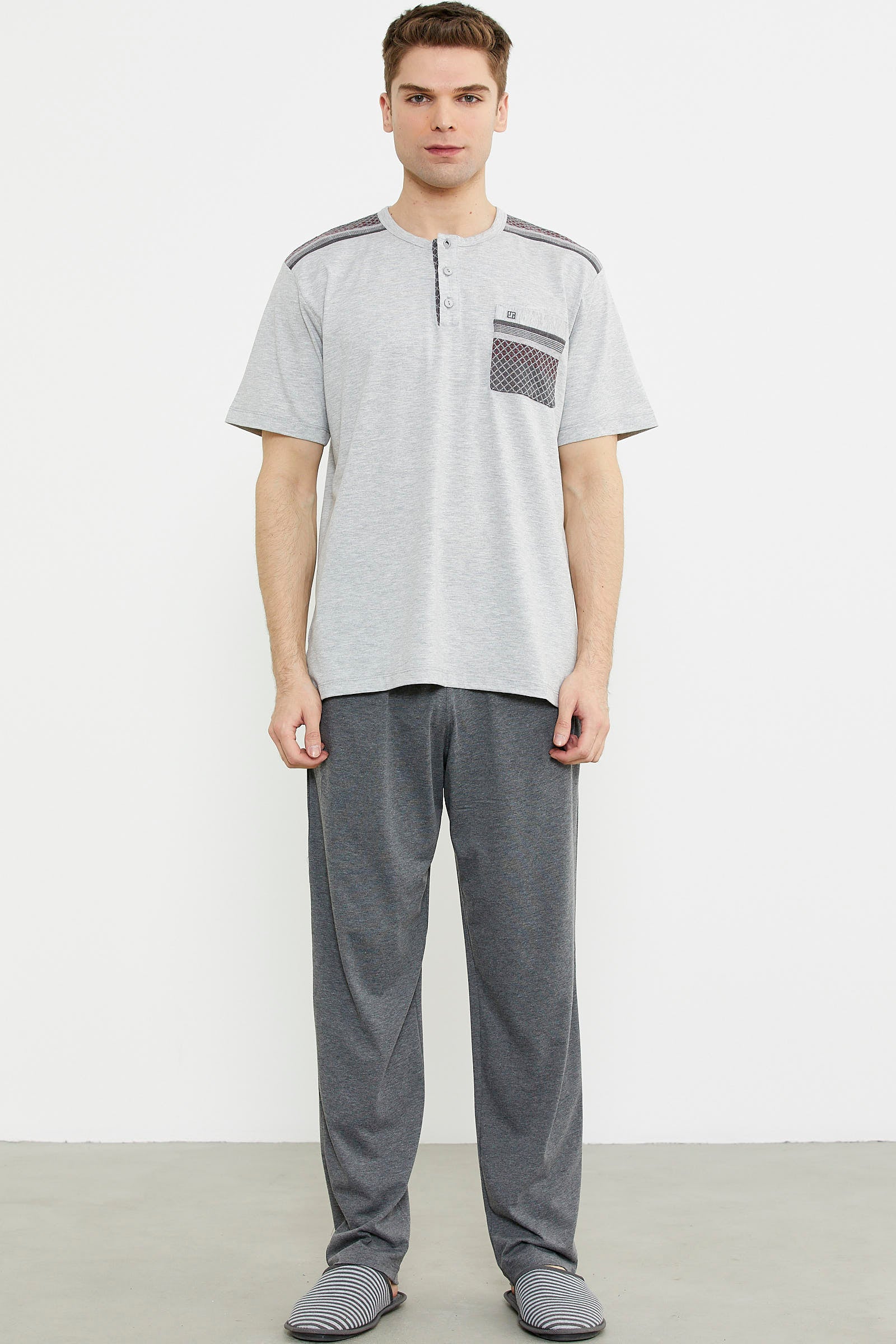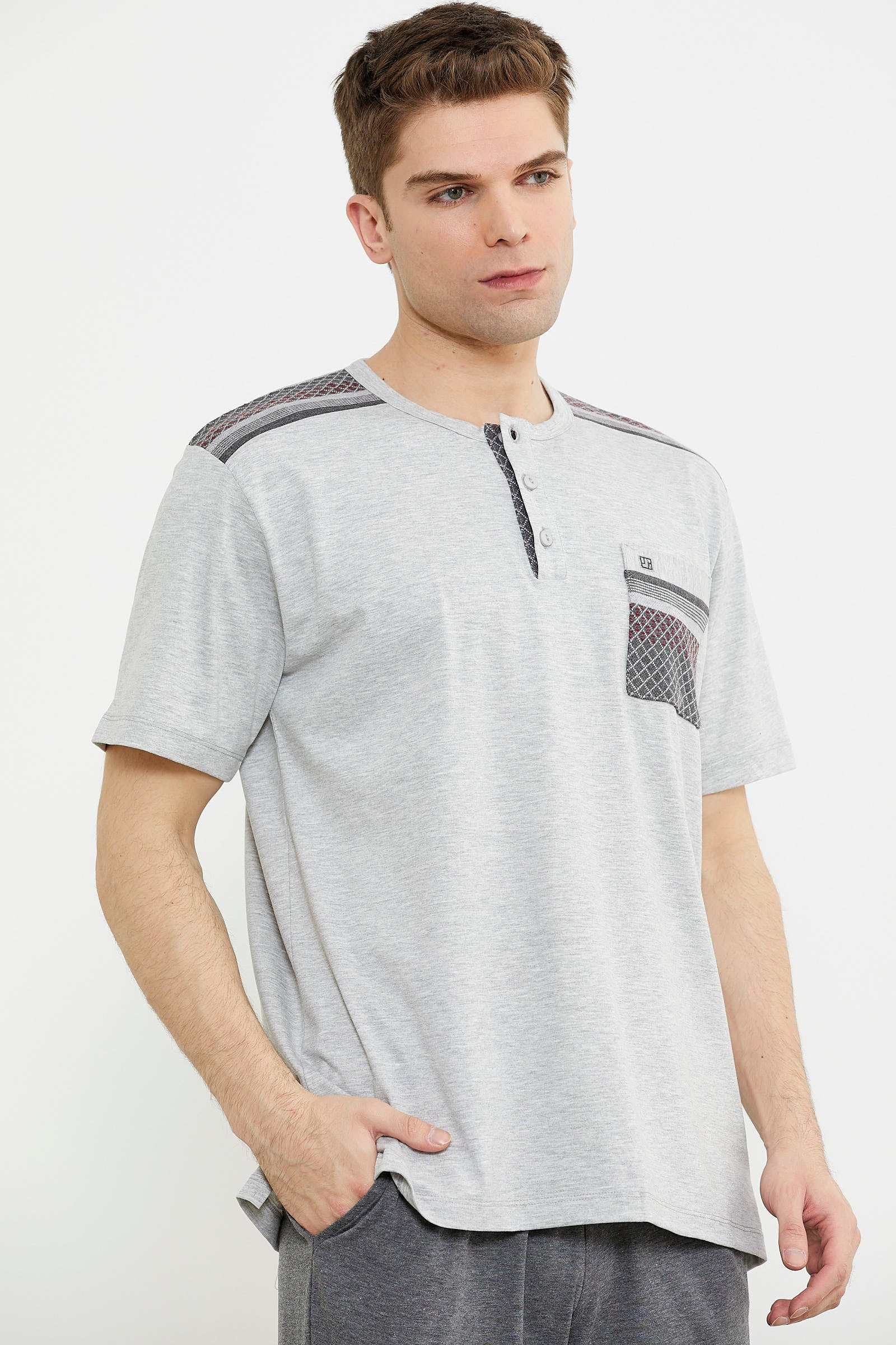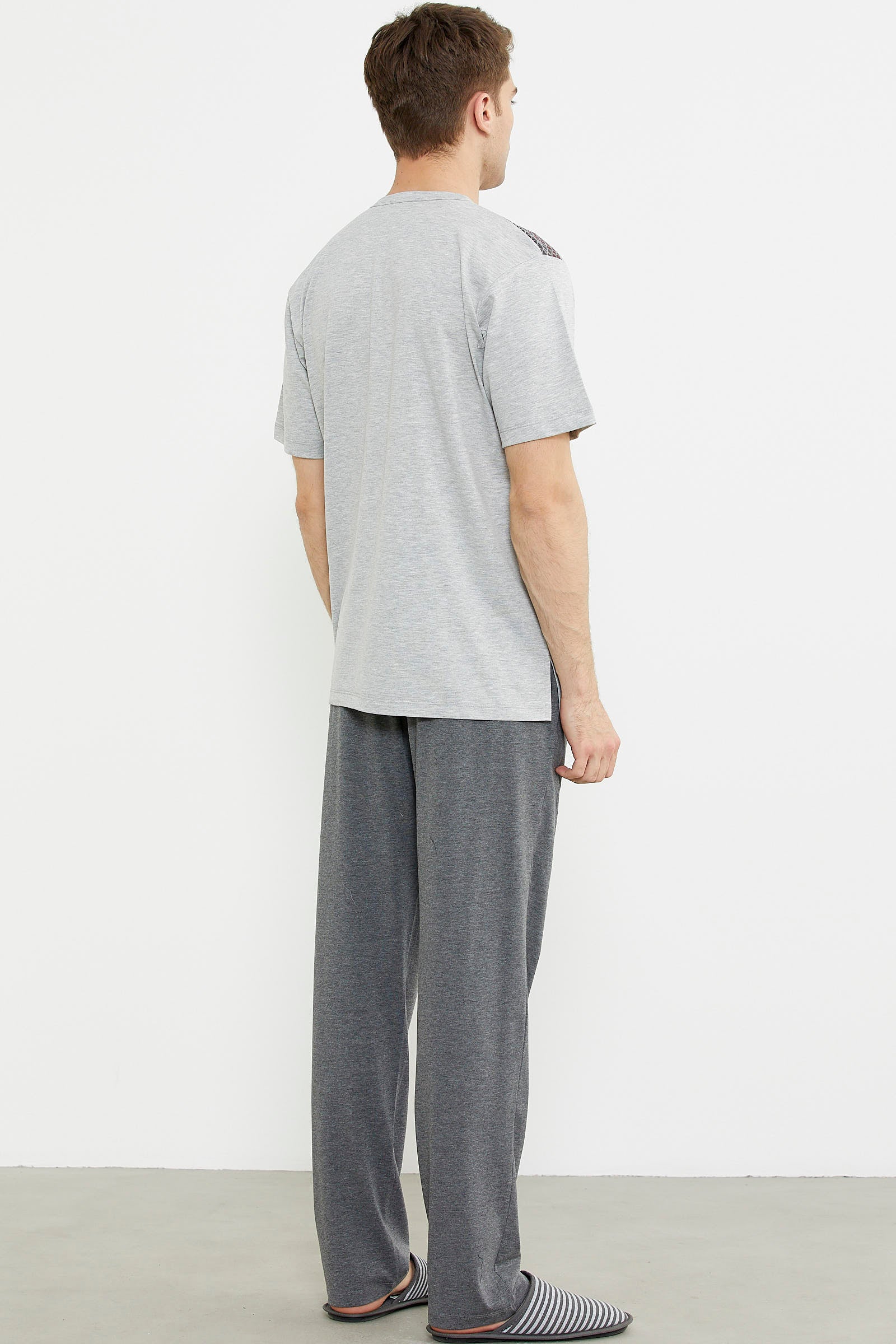 Triko Kombinli Kısa Kol Pijama Takım - Gri