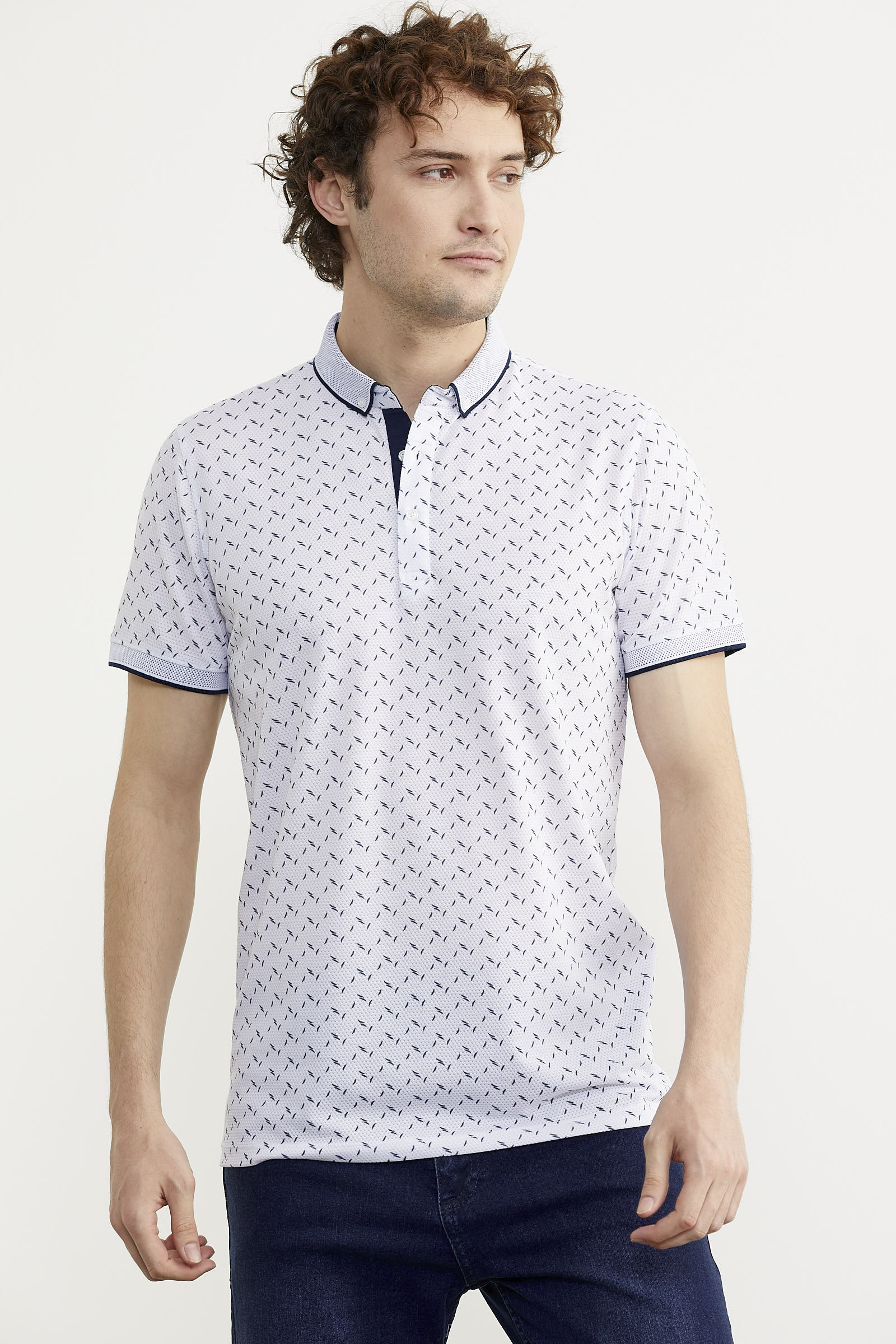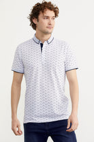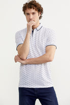 Desenli Slim Fit Triko Polo Yaka Tişört - Beyaz