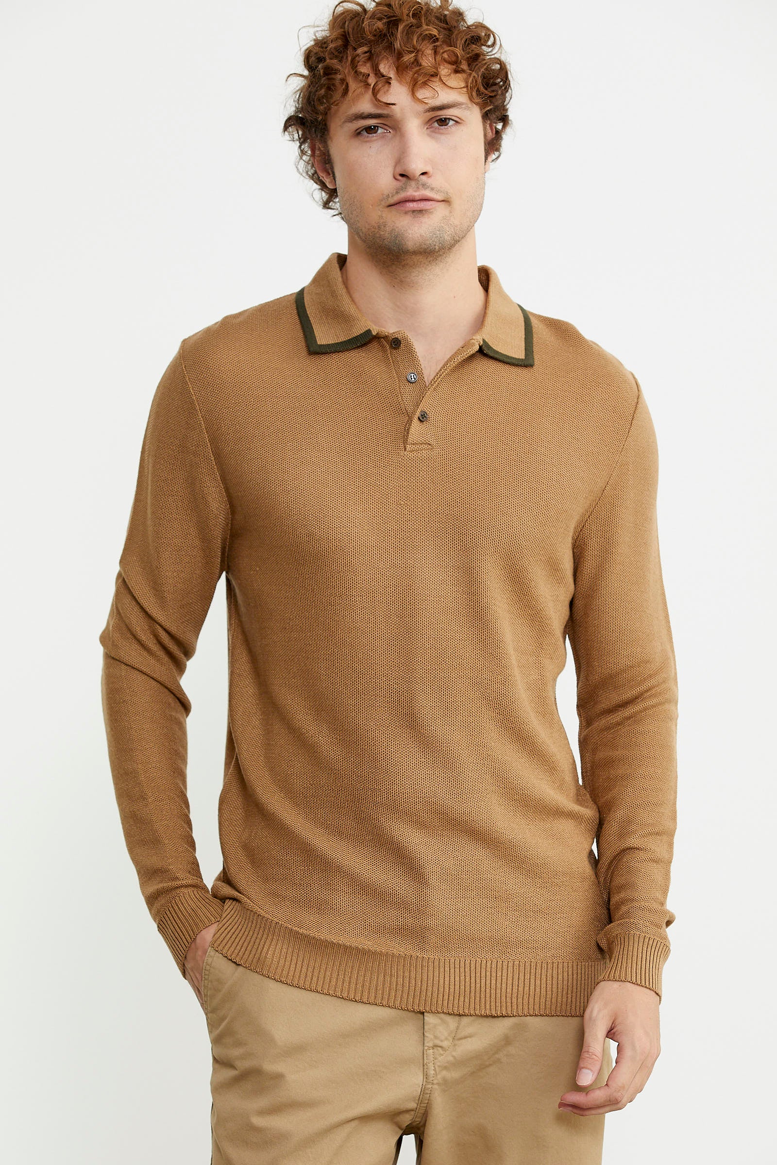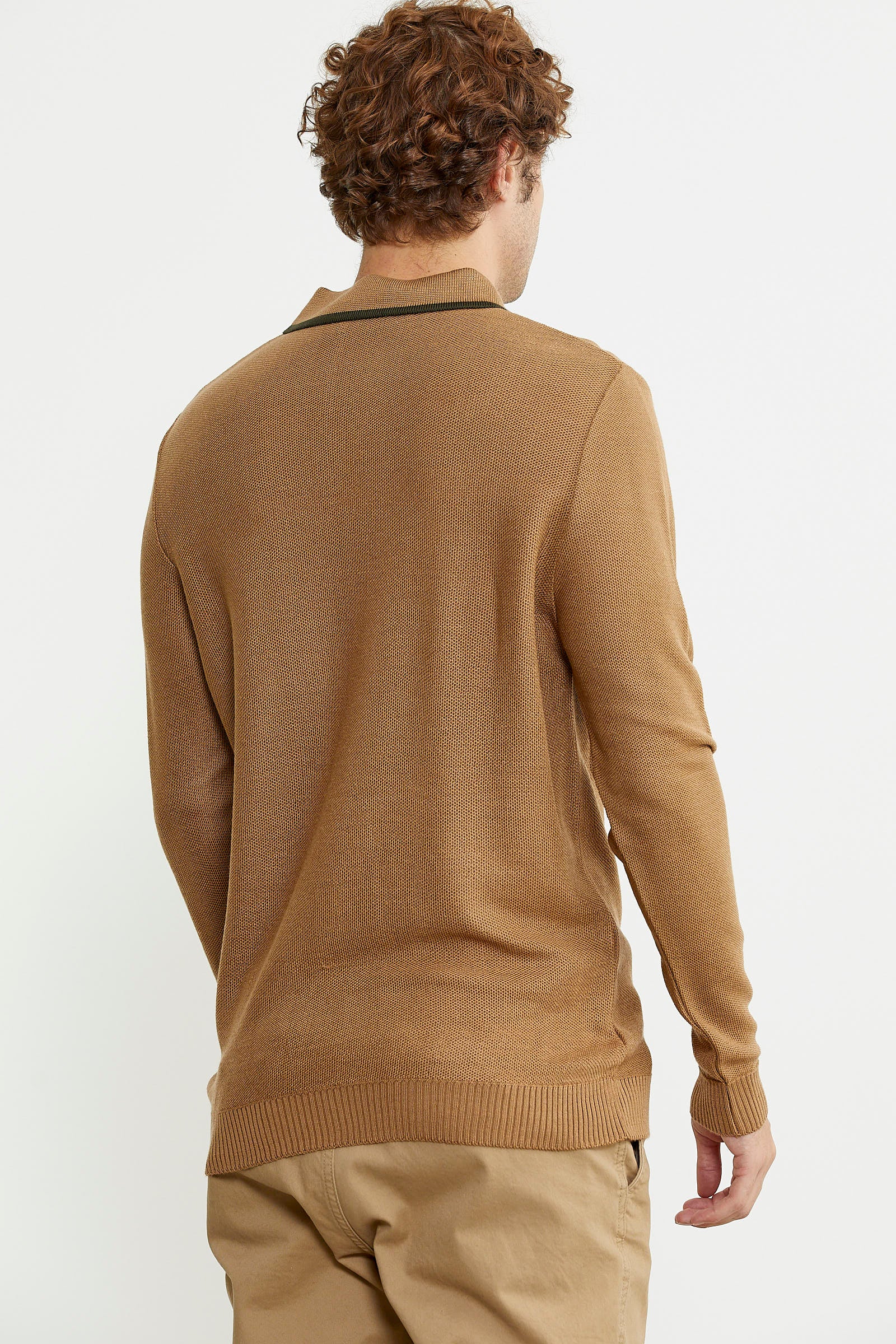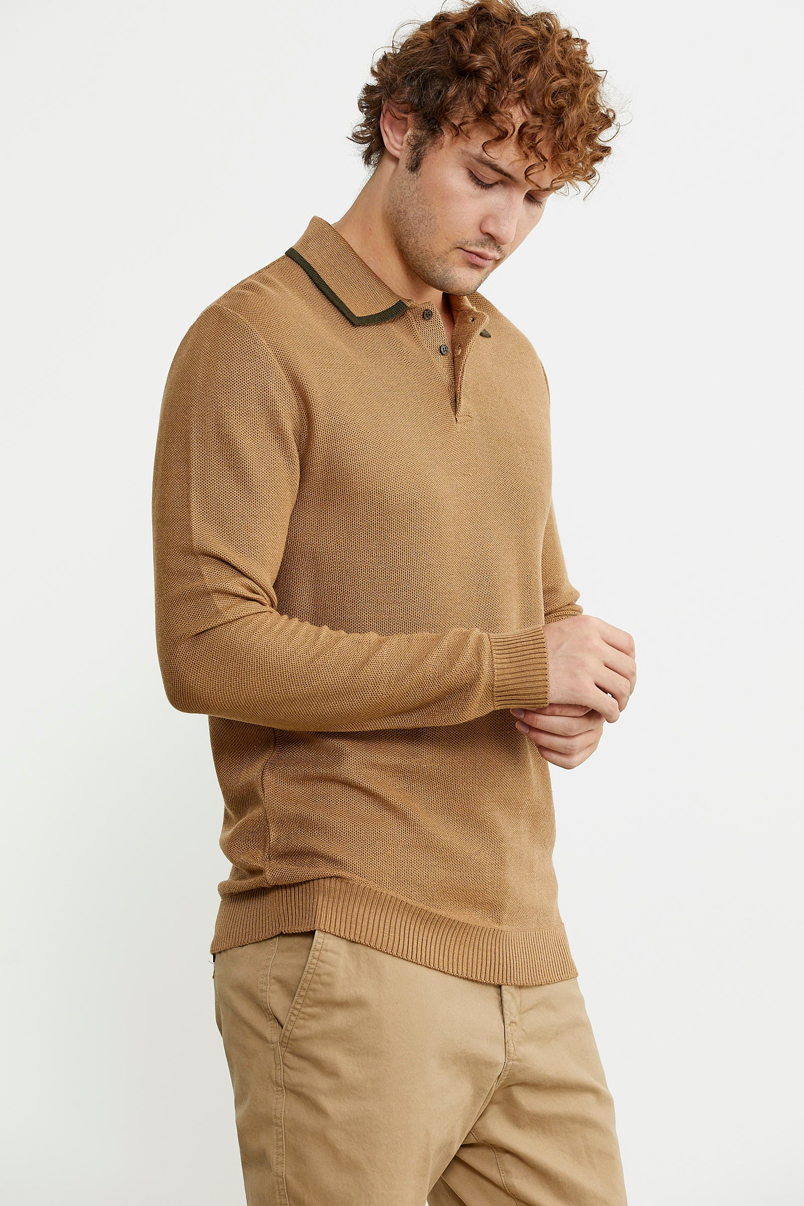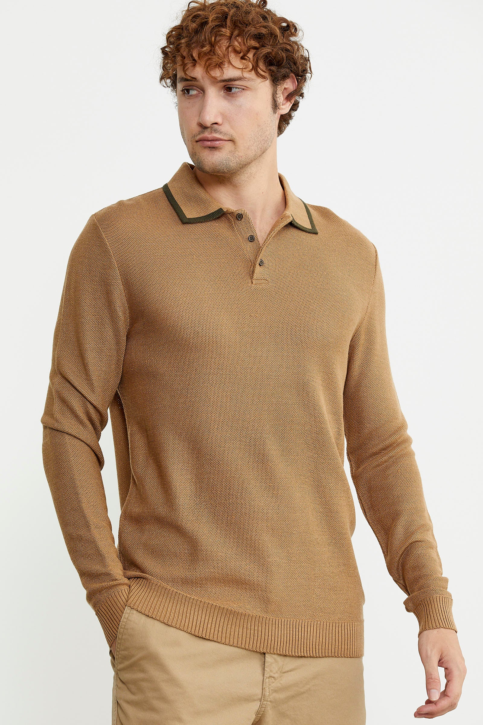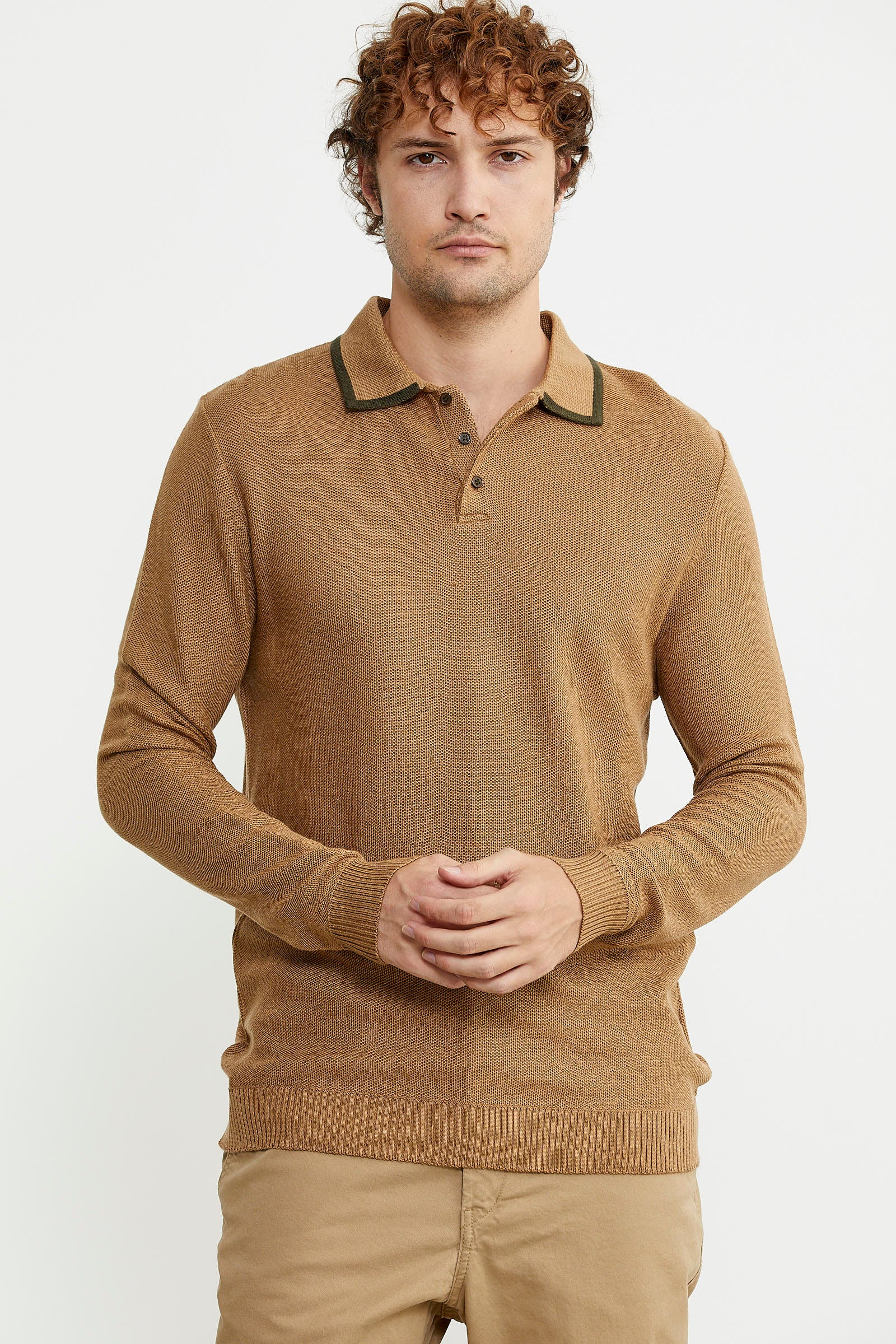 Polo Yaka Düğmeli Triko Kazak - Kamel