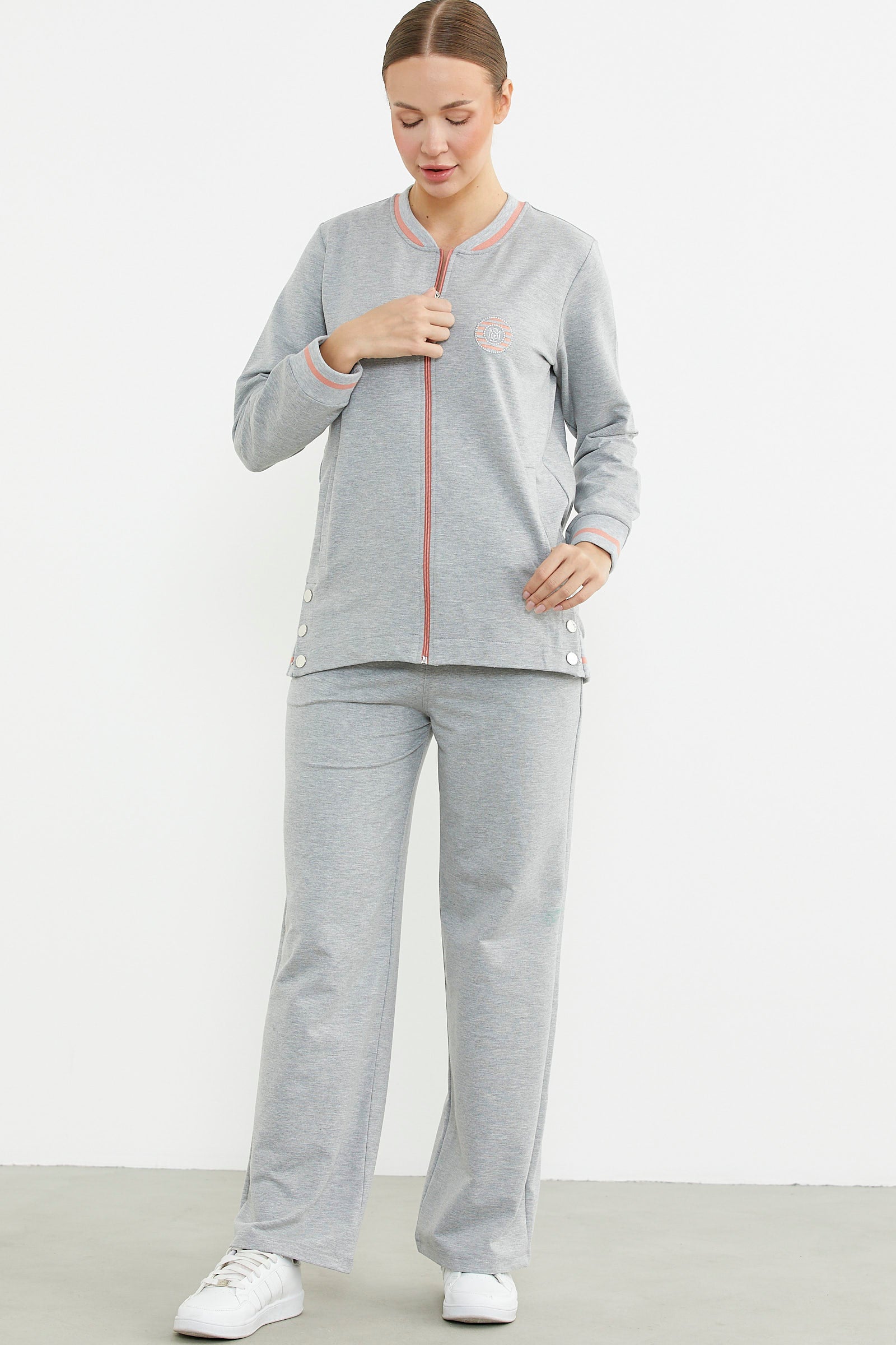 Çıtçıt Detaylı Ribanalı Eşofman Takım - Gri