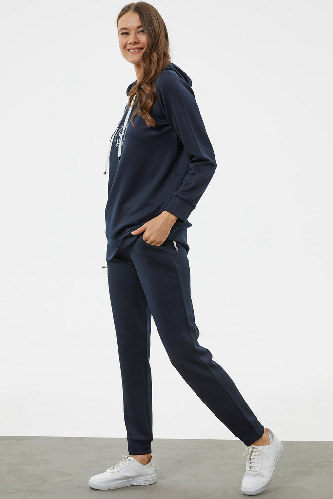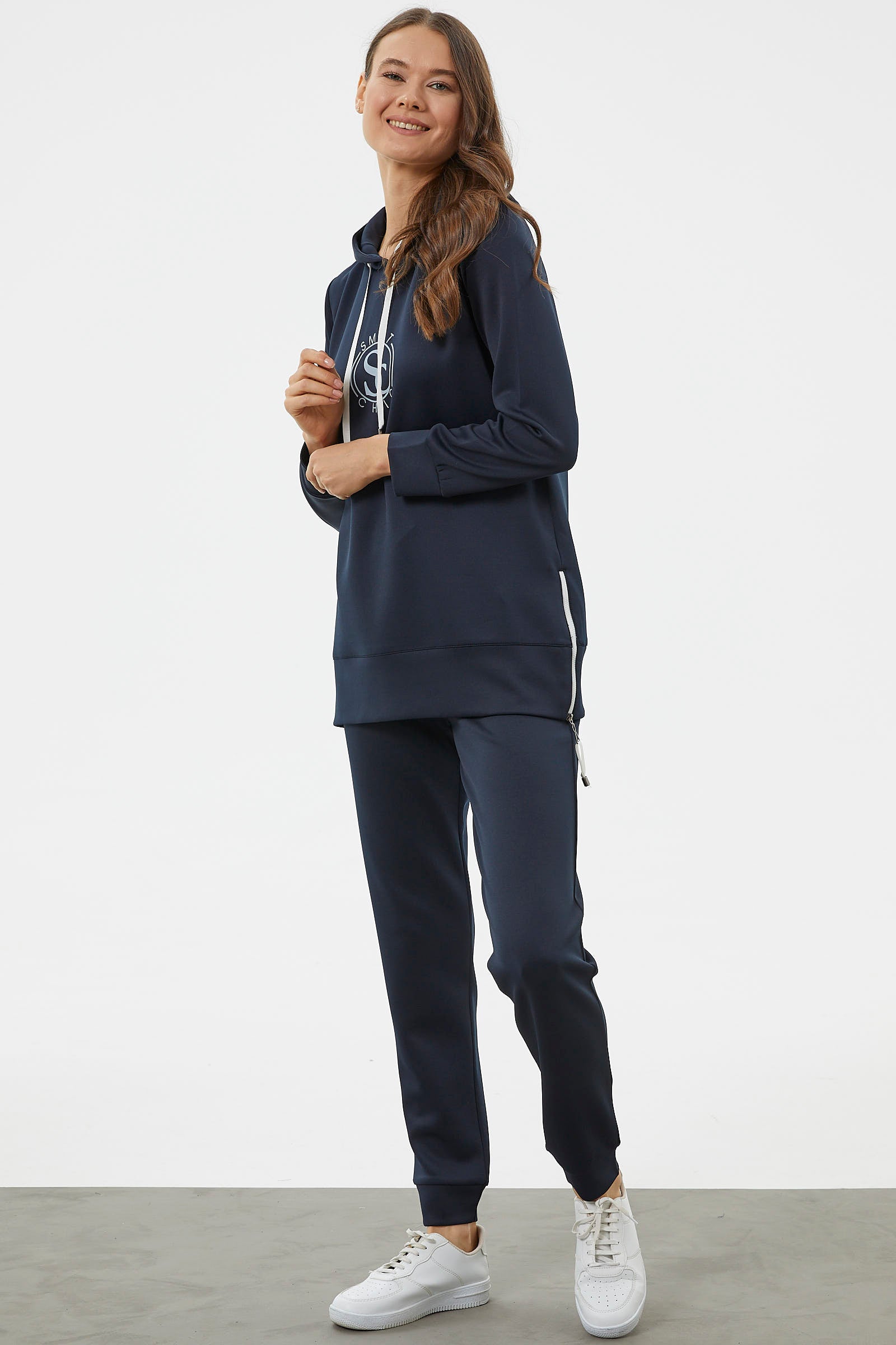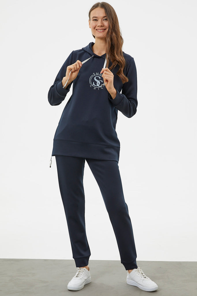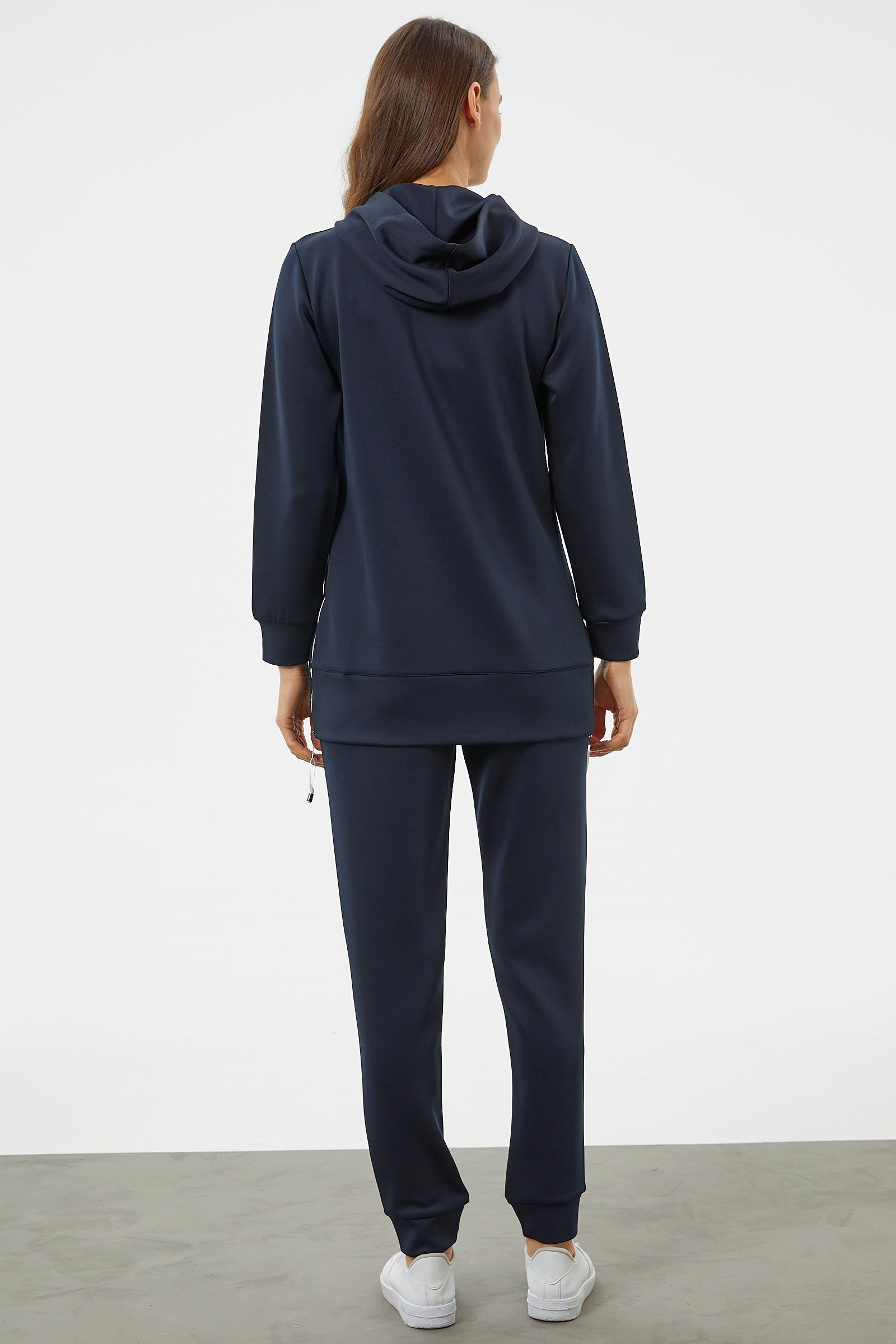 Dalgıç Kumaş Kapüşonlu Tunik Eşofman Takım - Lacivert