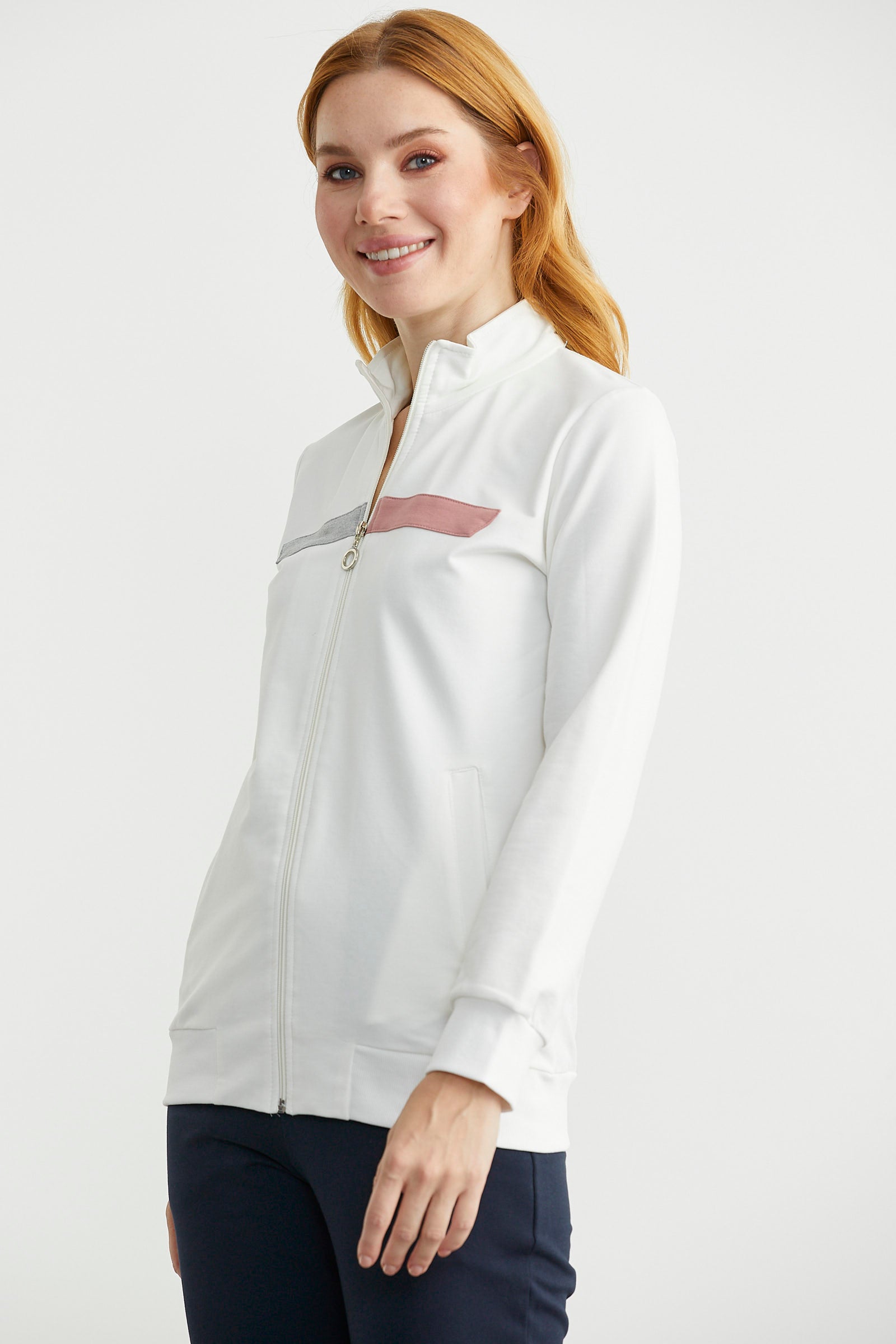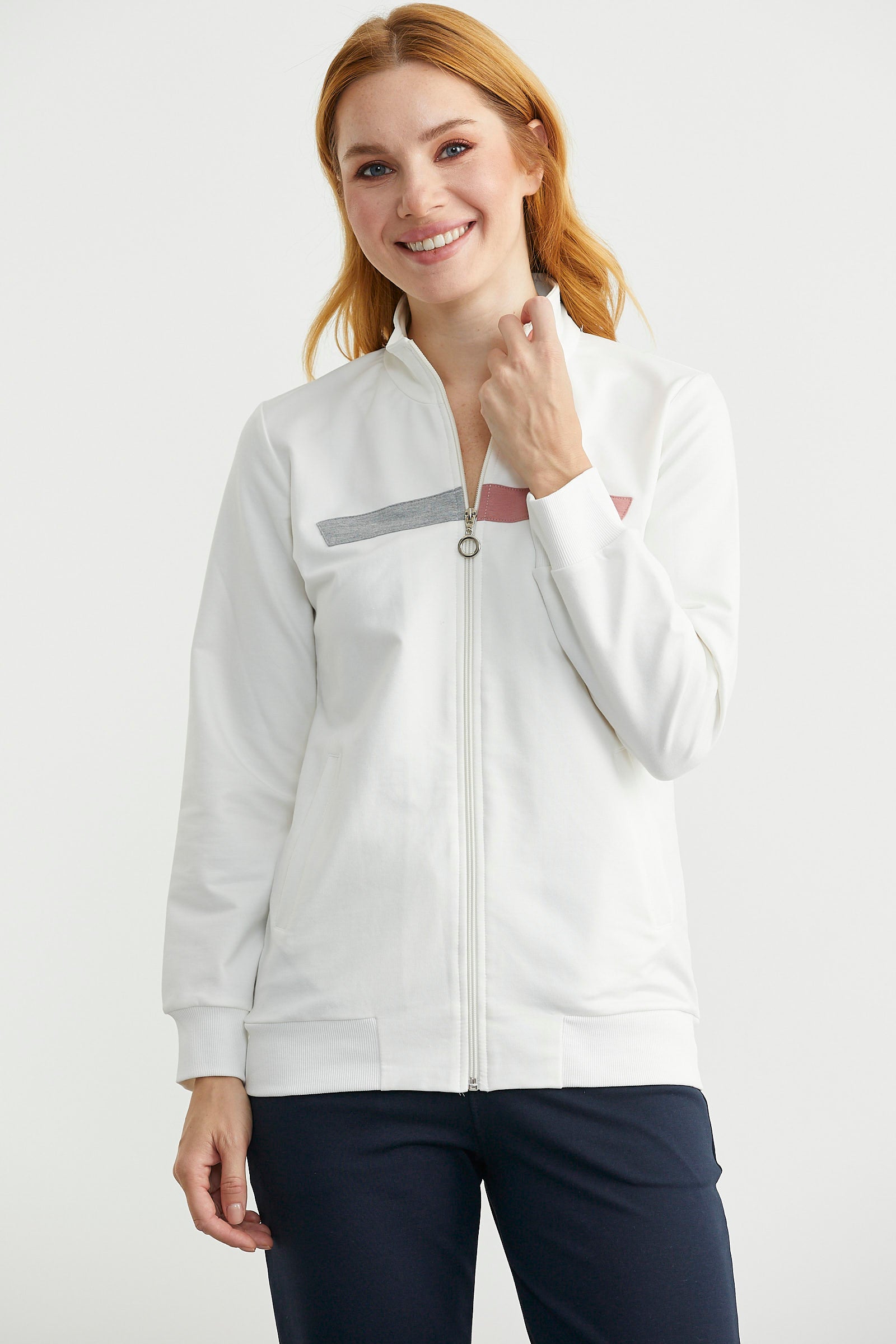Dik Yaka Fermuarlı Eşofman Takım - Ekru
