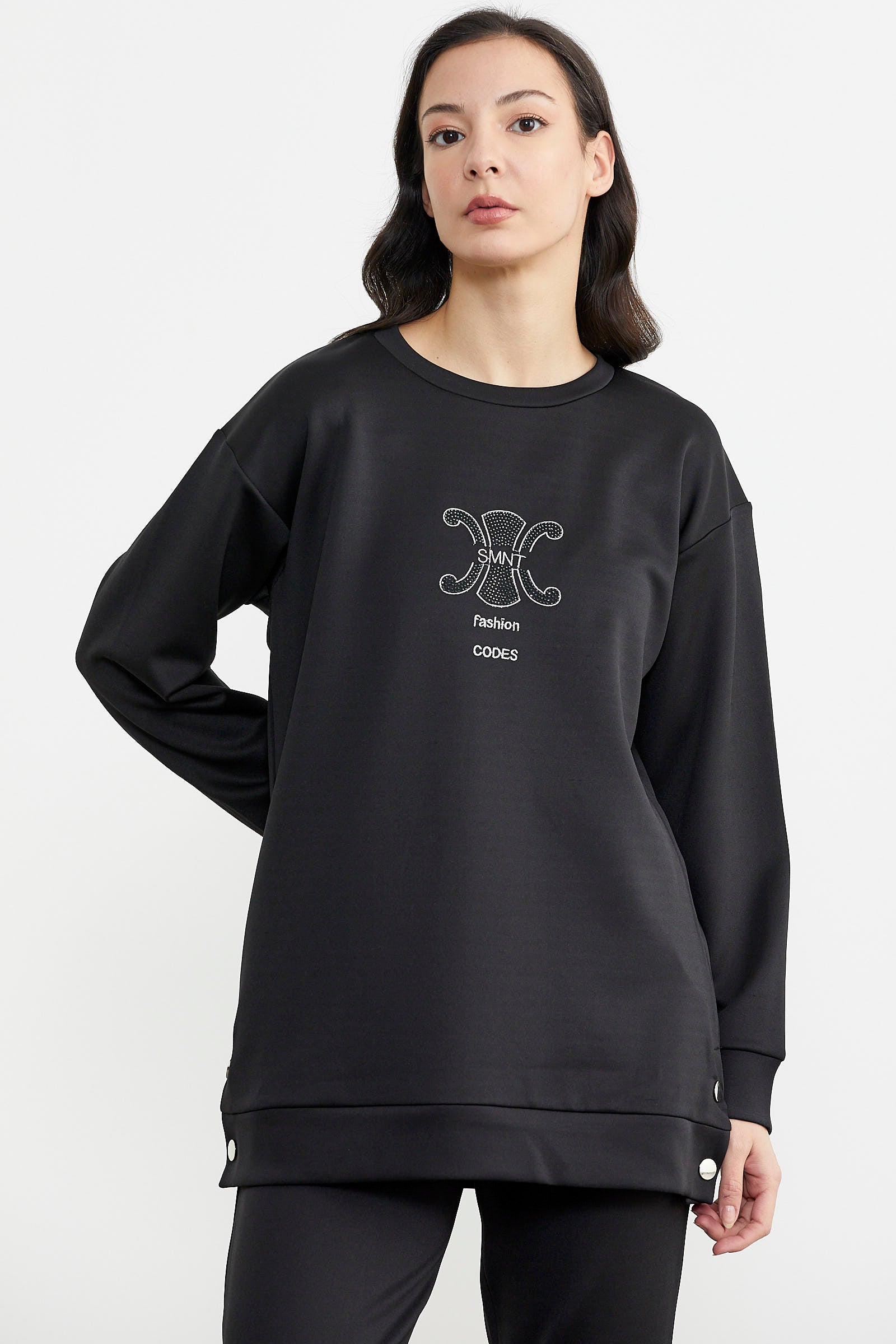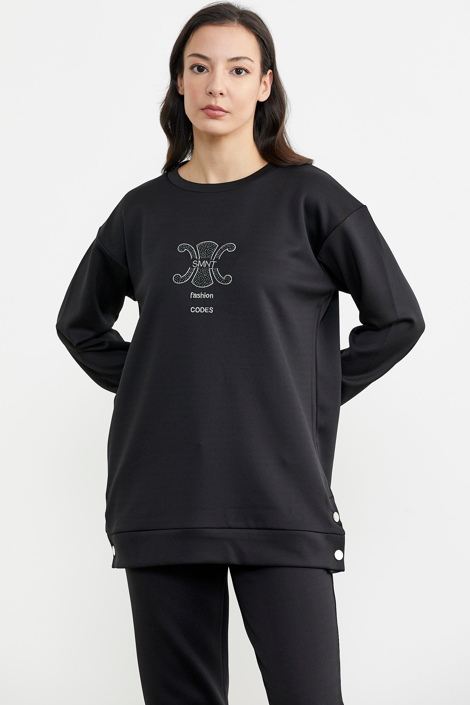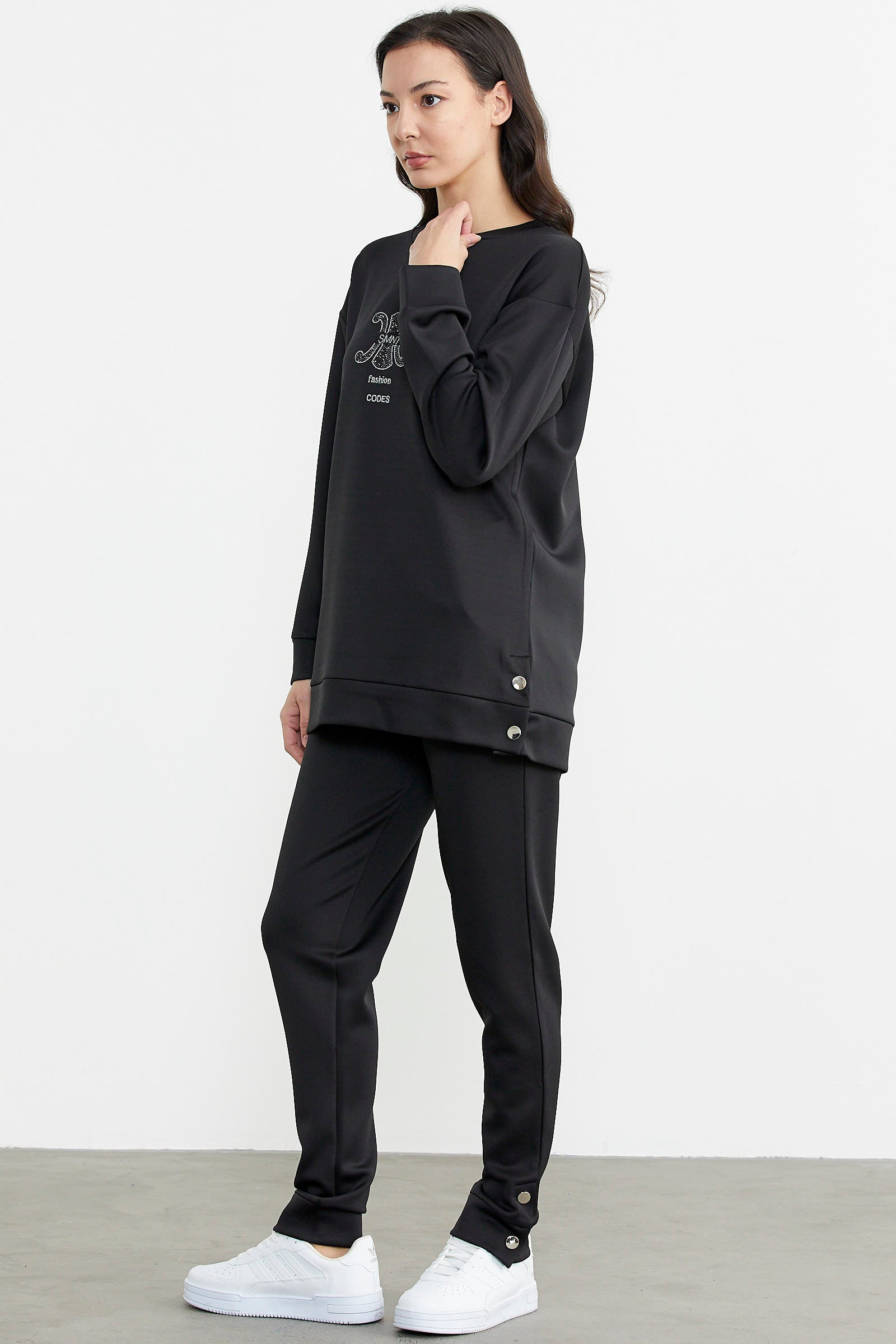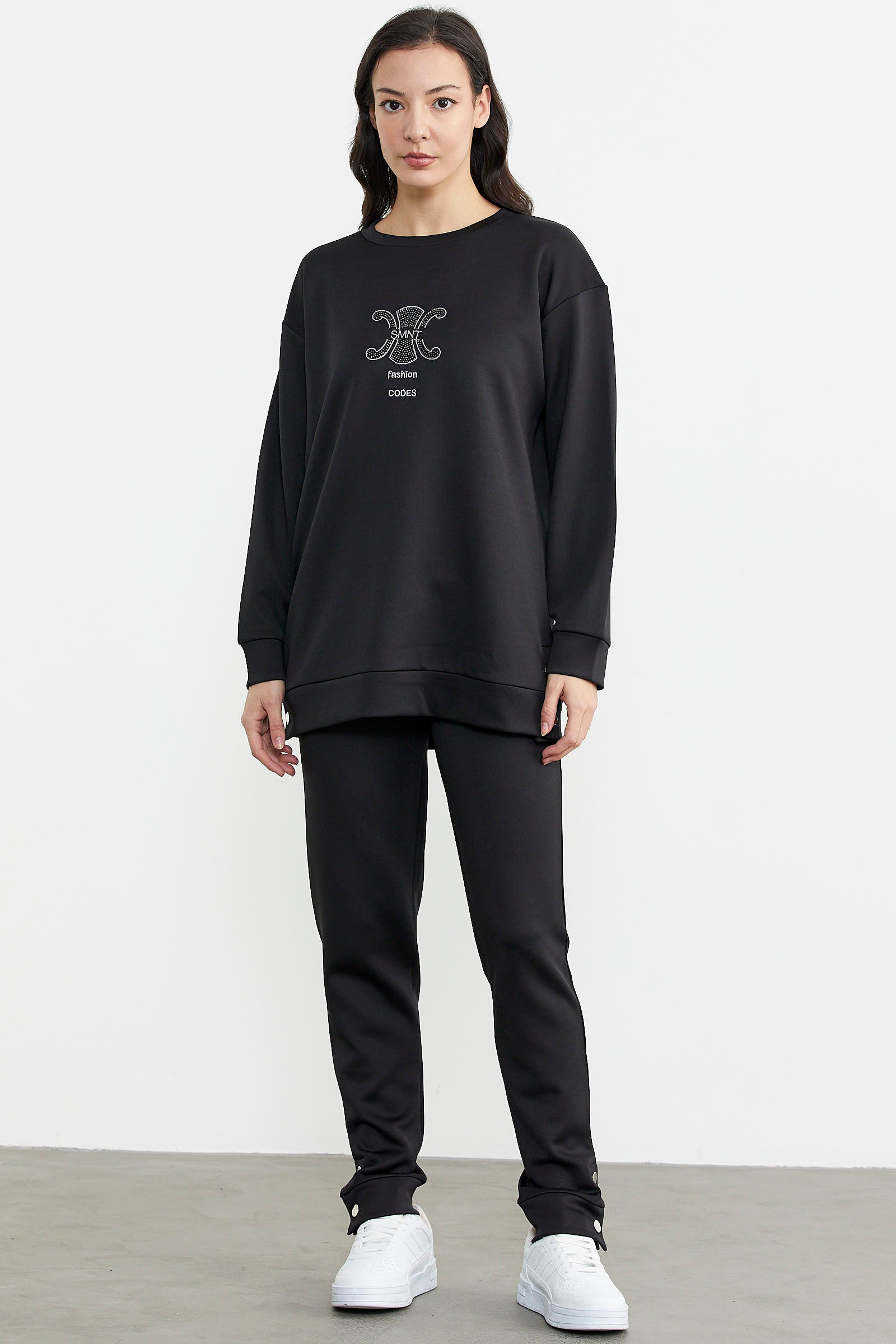 Taş Detaylı Rahat Kalıp Eşofman Takım - Siyah