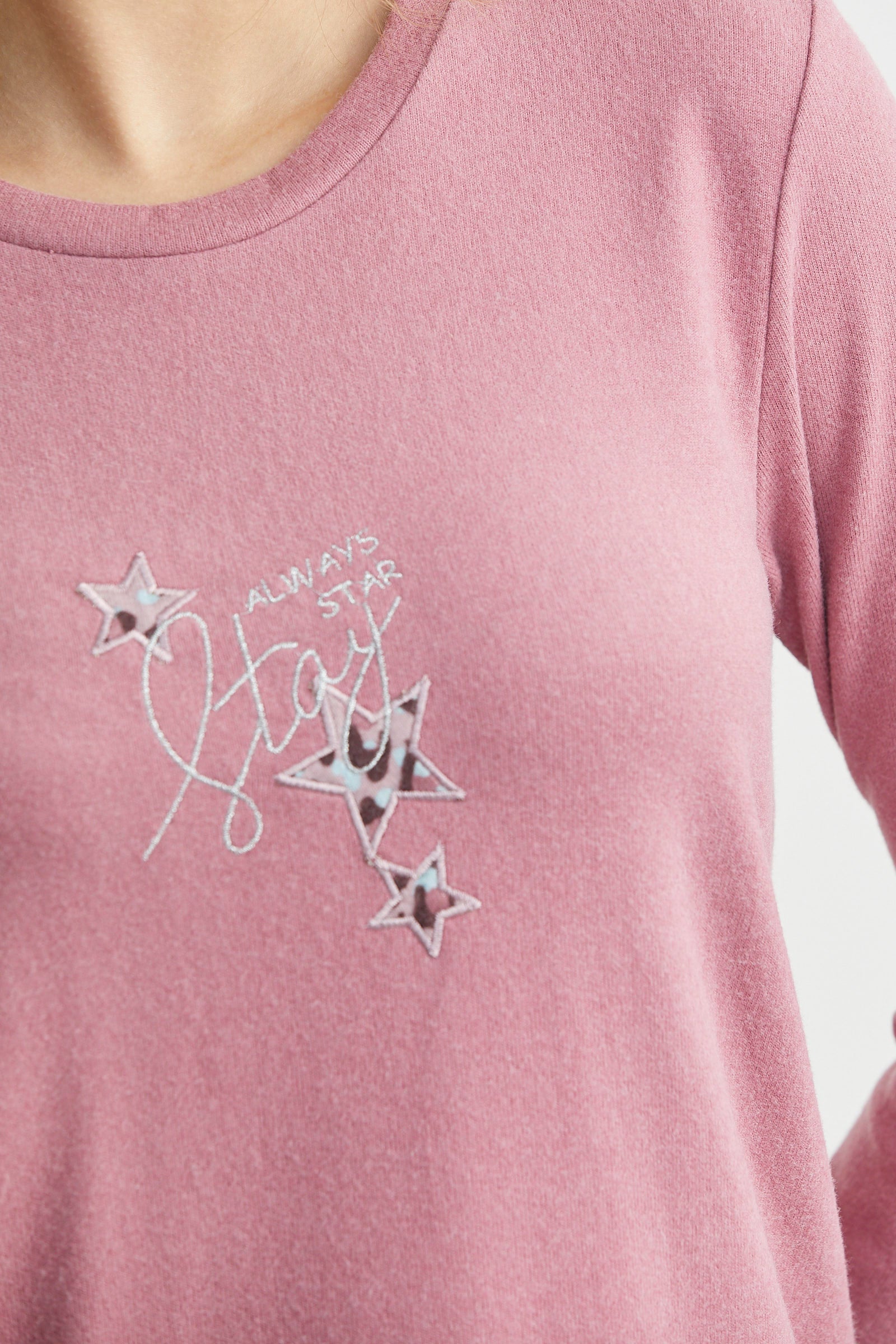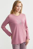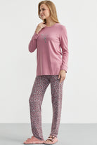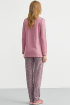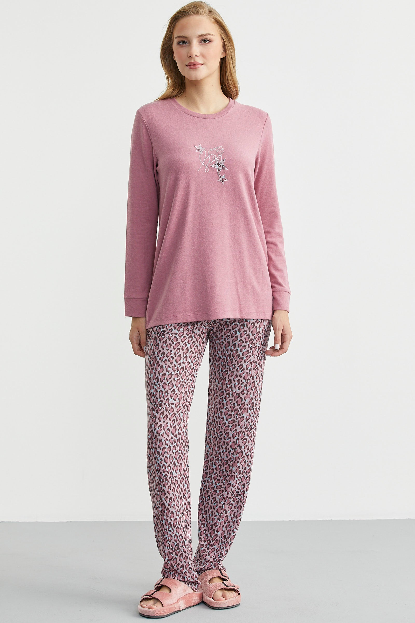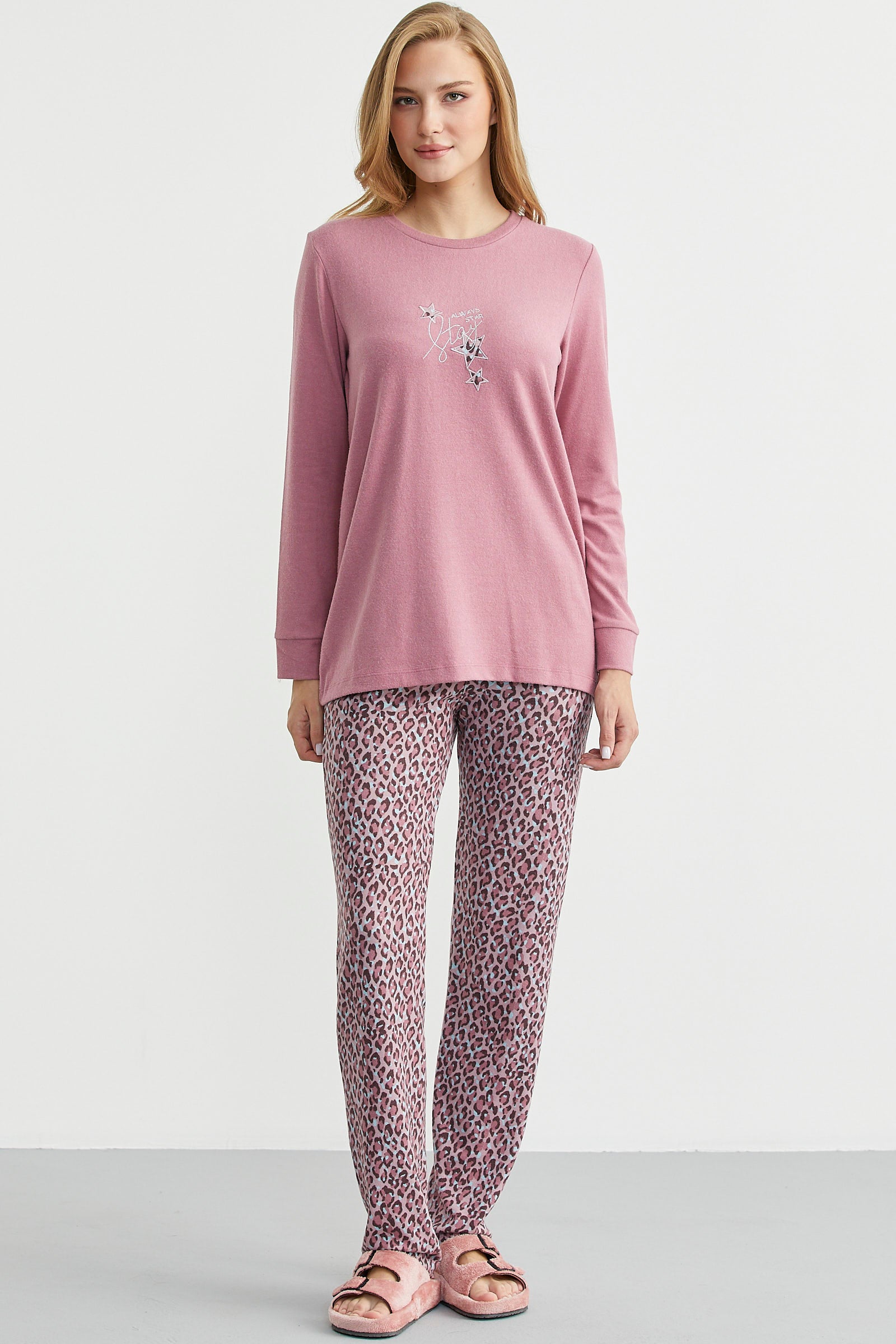 Yumoş Dokulu Leopar Desenli Kışlık Pijama - Gül Kurusu