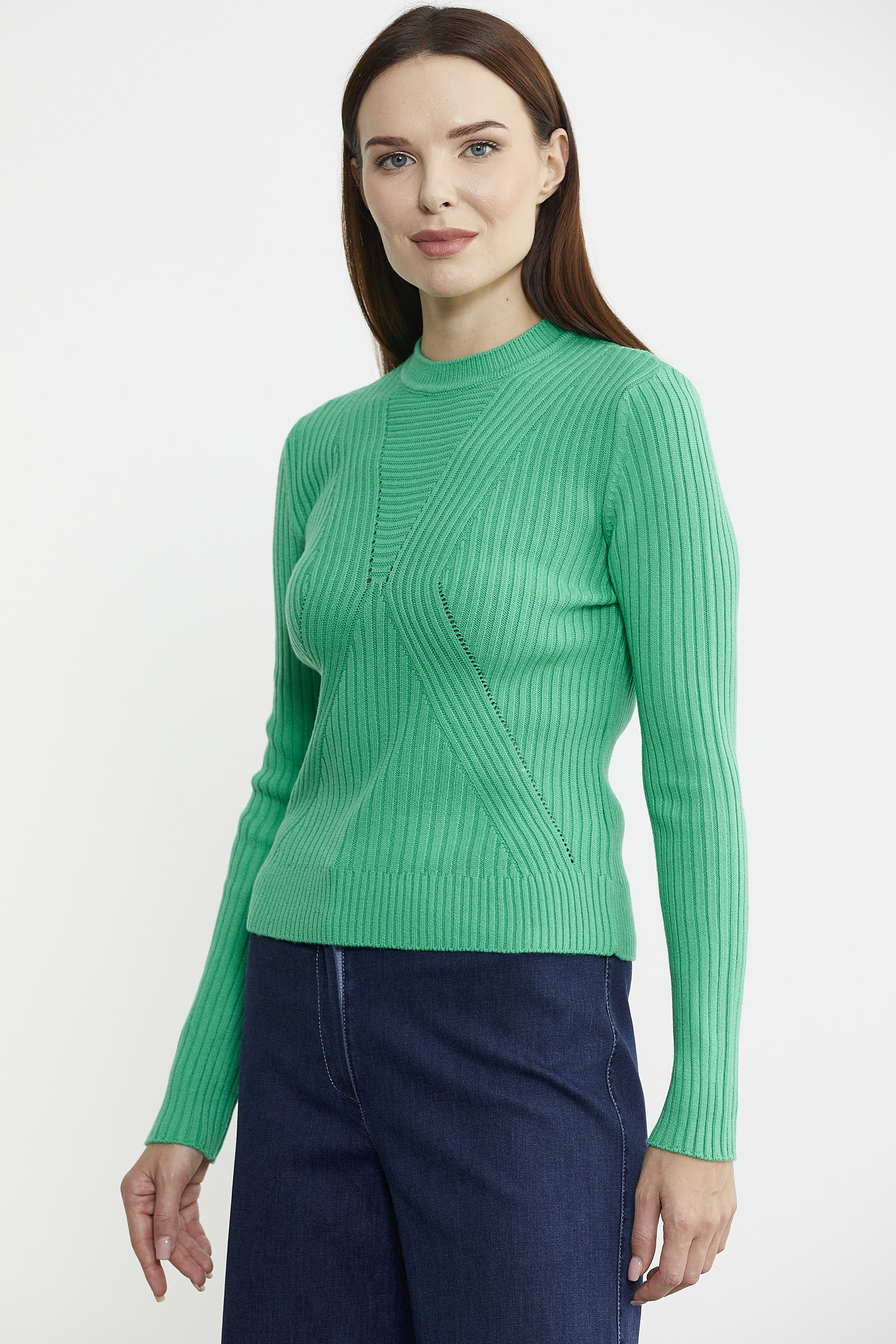 Derbili Sıfır Yaka Triko Kazak - Yeşil