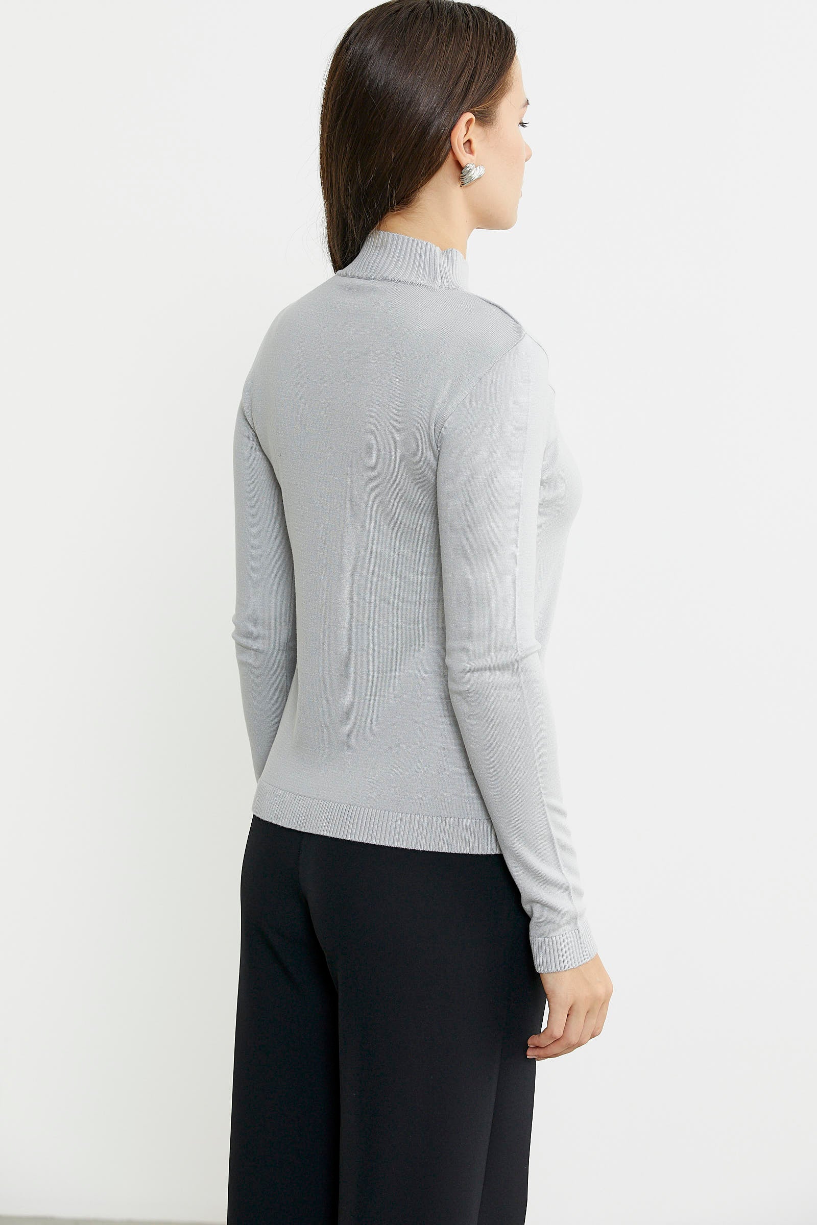 Taş Detaylı Dik Yaka Triko Kazak - Gri