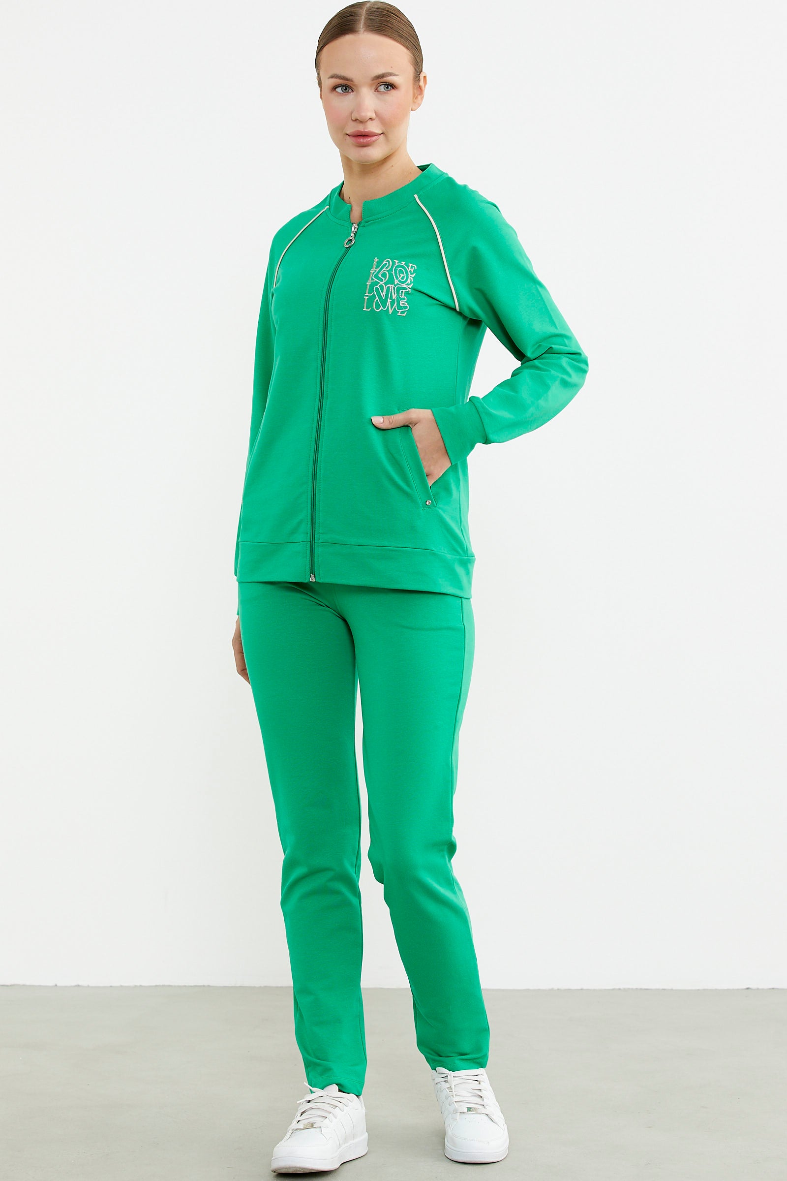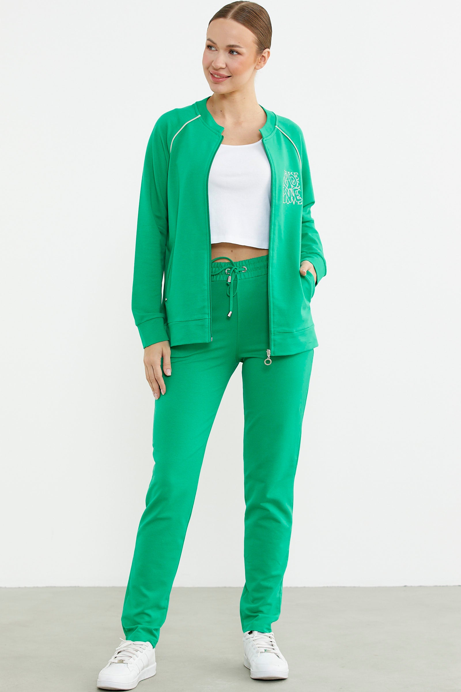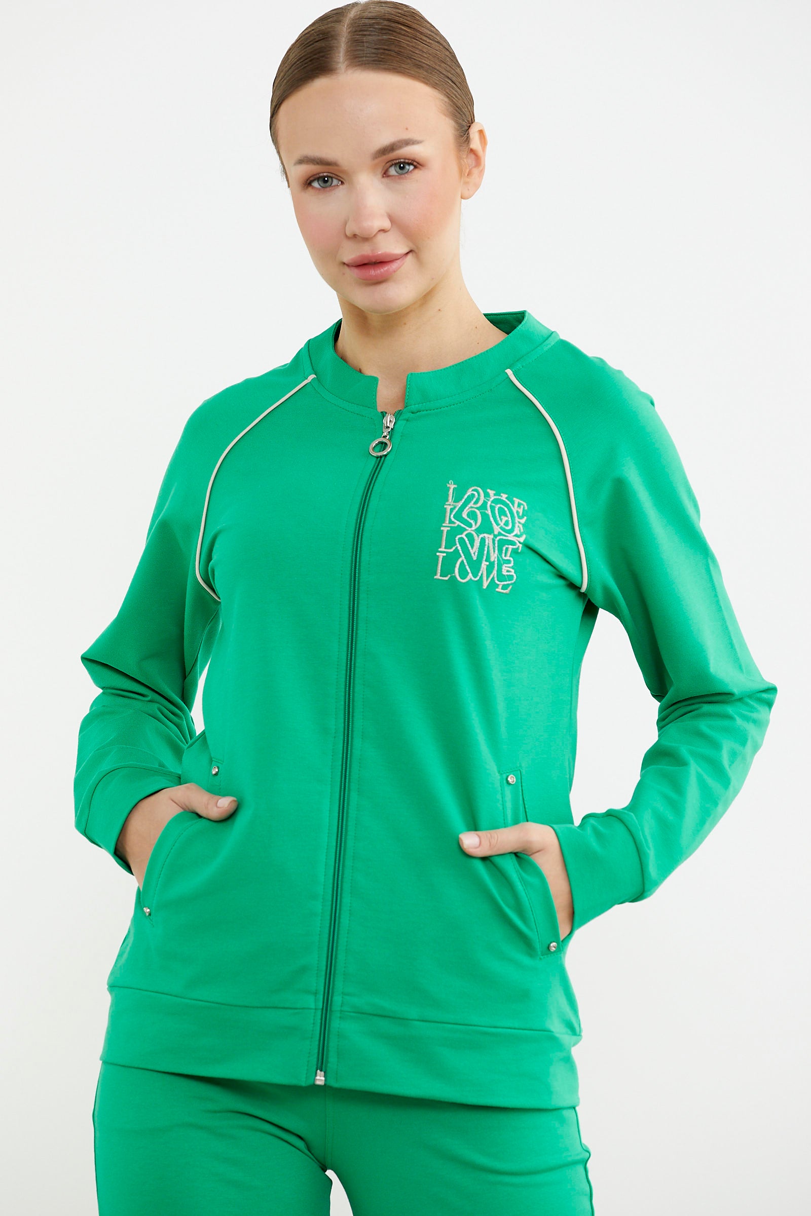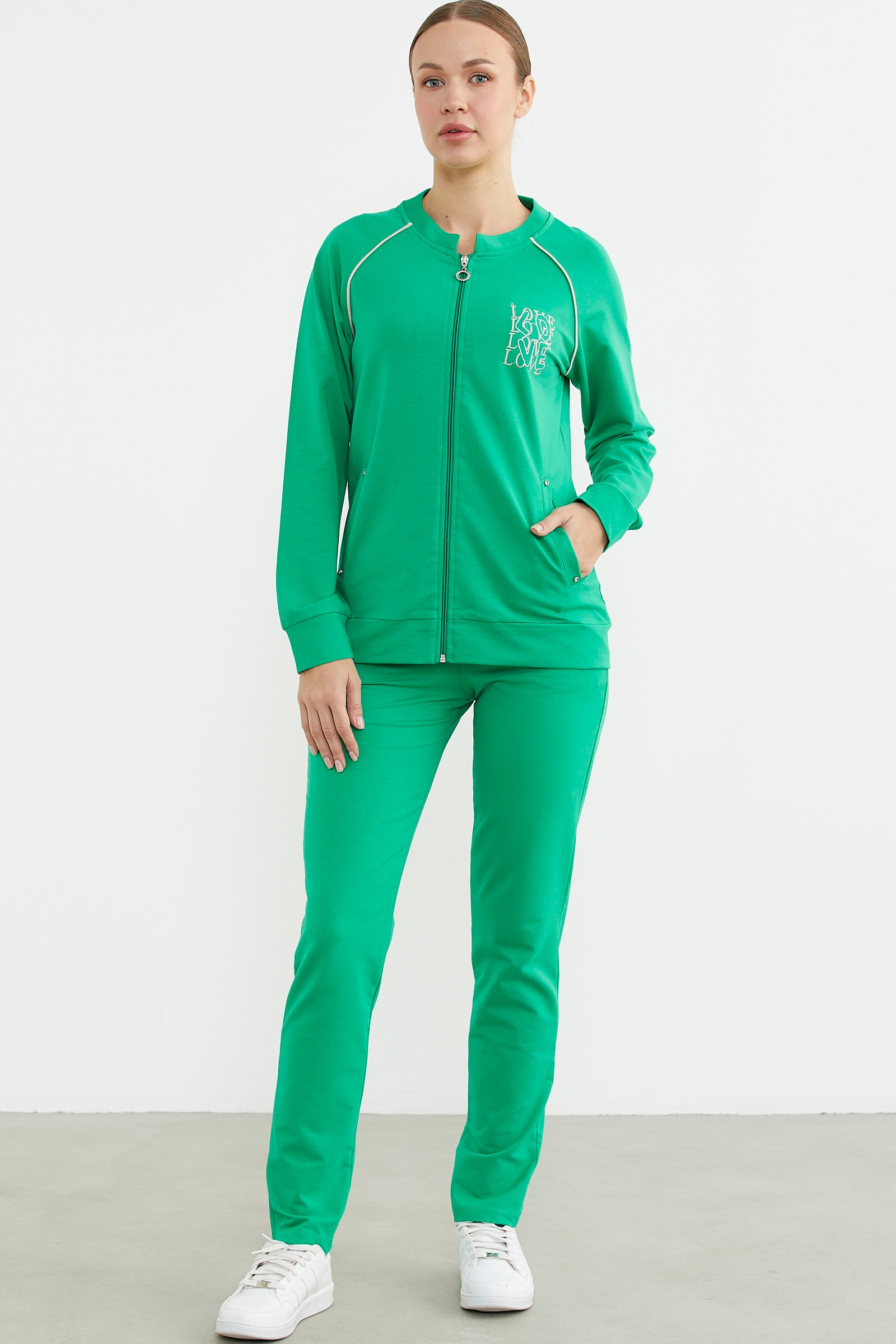 Biye Detaylı Fermuarlı Eşofman Takım - Yeşil