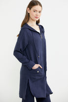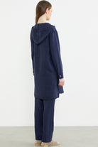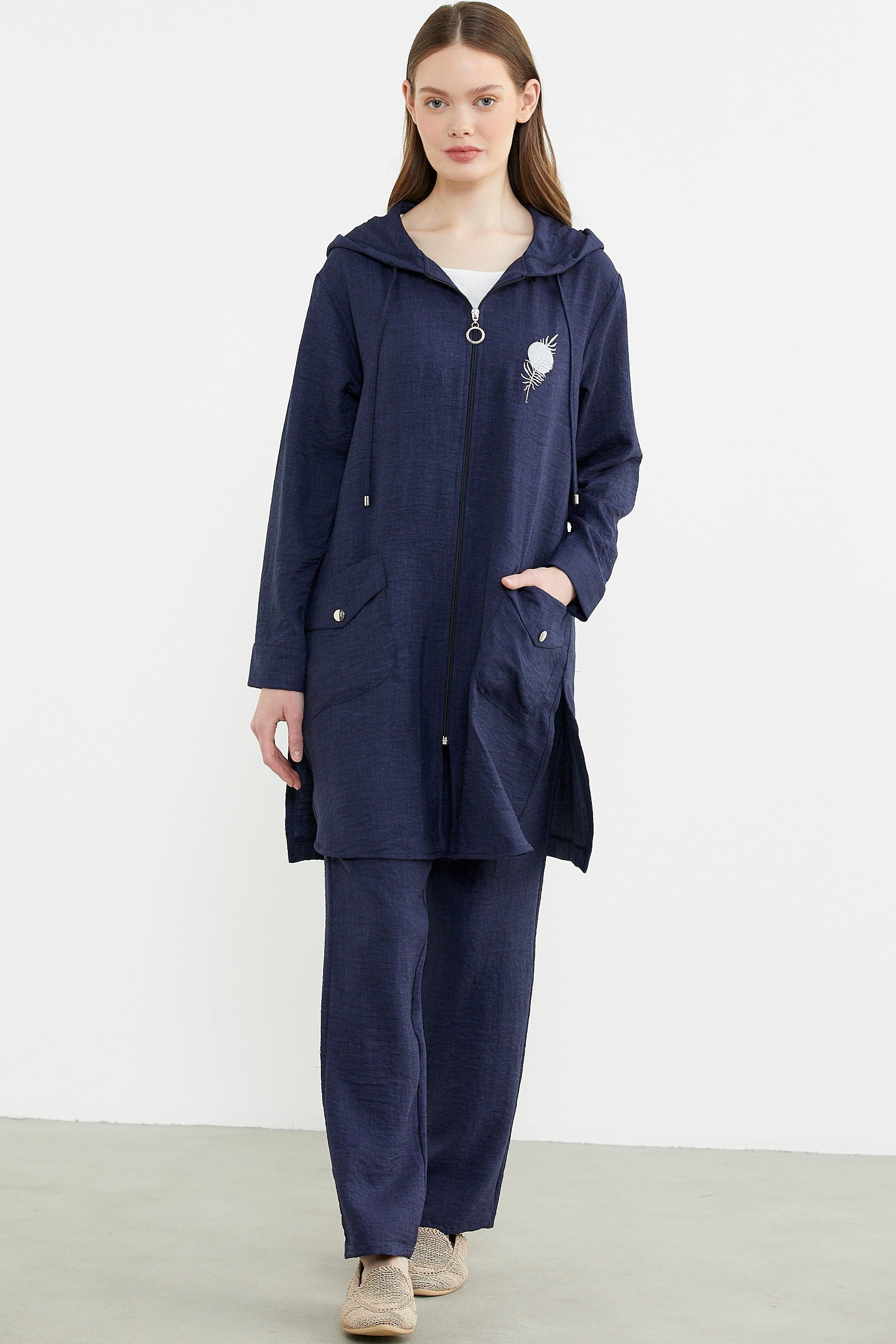 Büyük Beden Keten Görünümlü Üçlü Takım - Lacivert