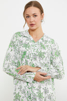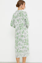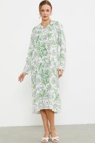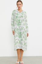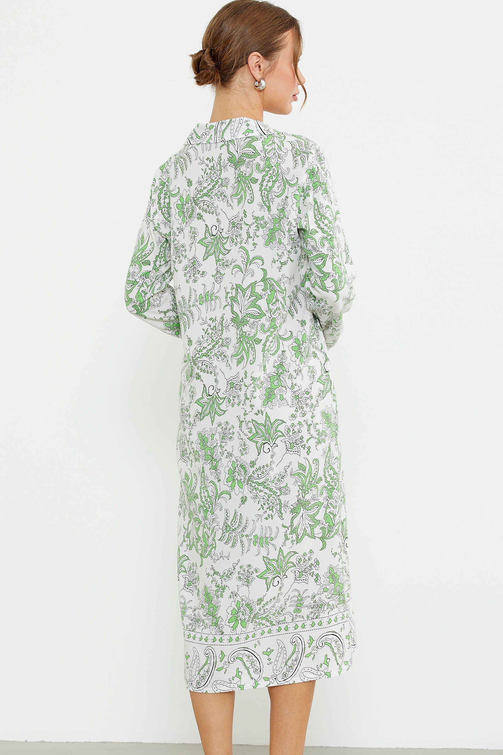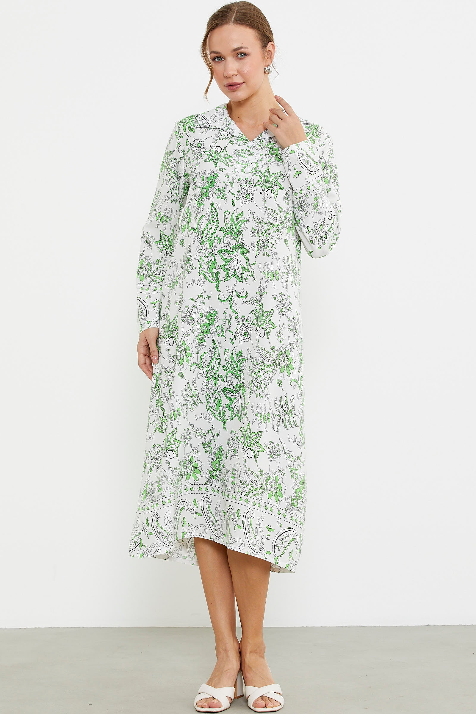 Gömlek Yaka Desenli Uzun Kol Elbise - Yeşil