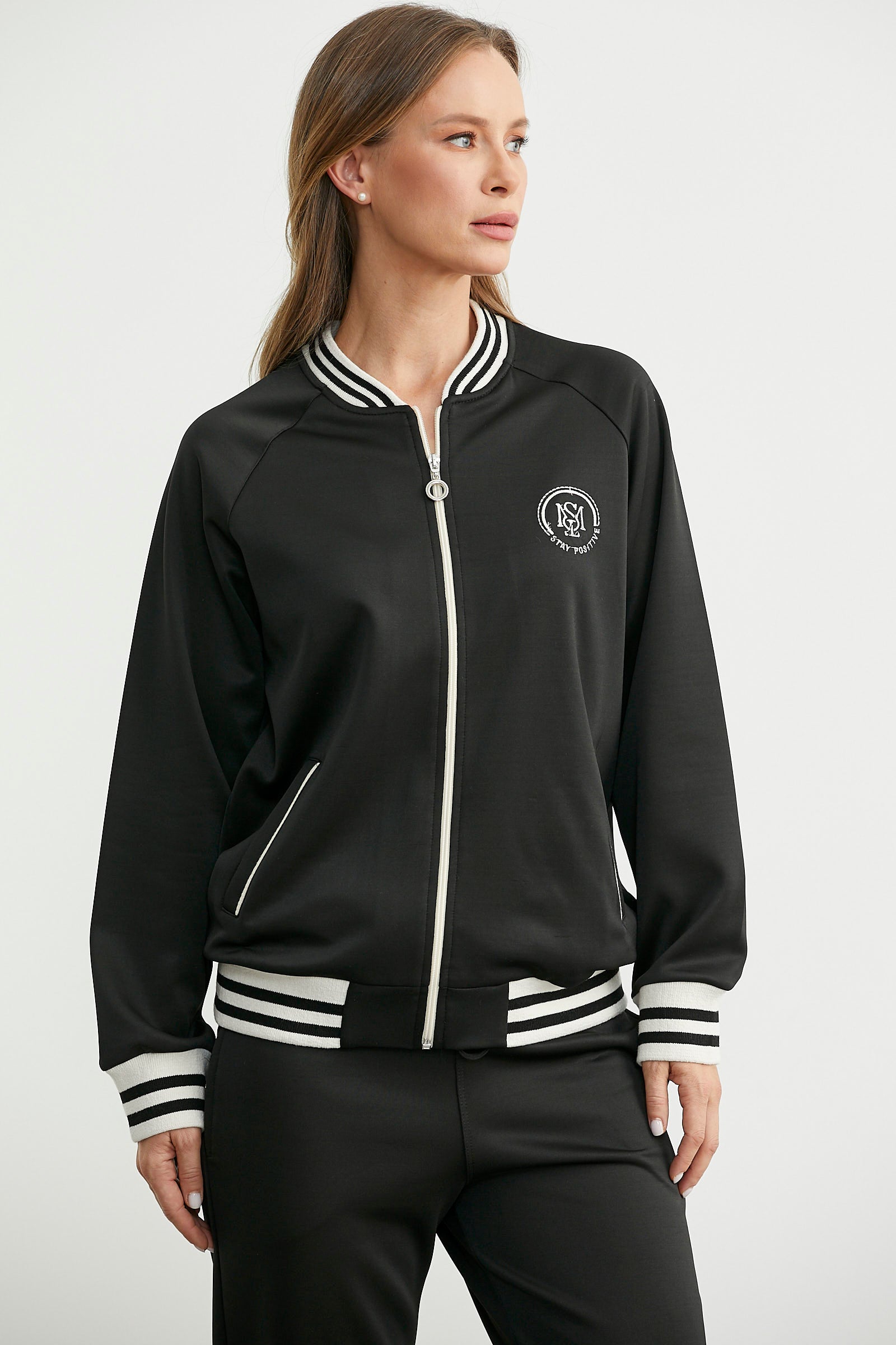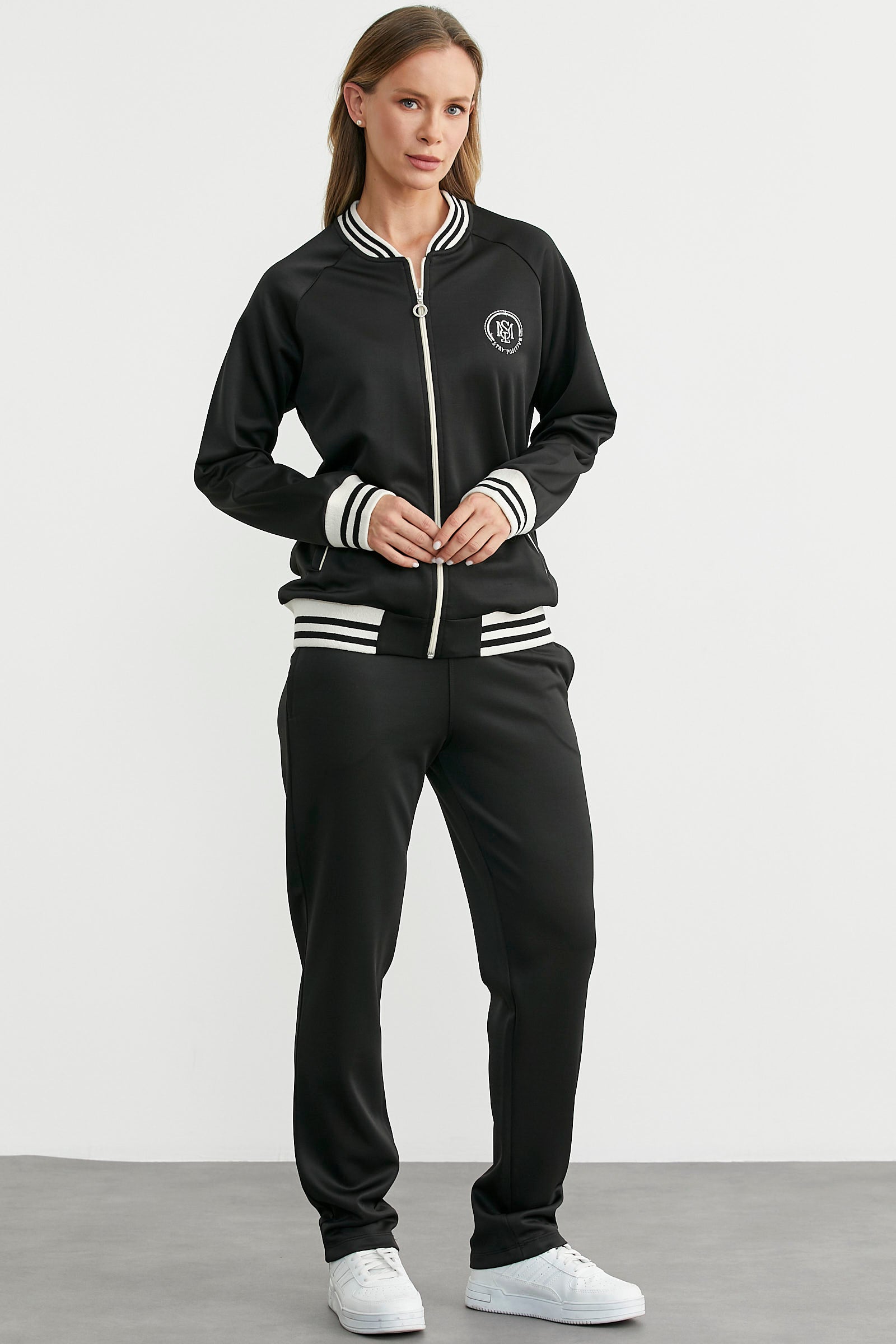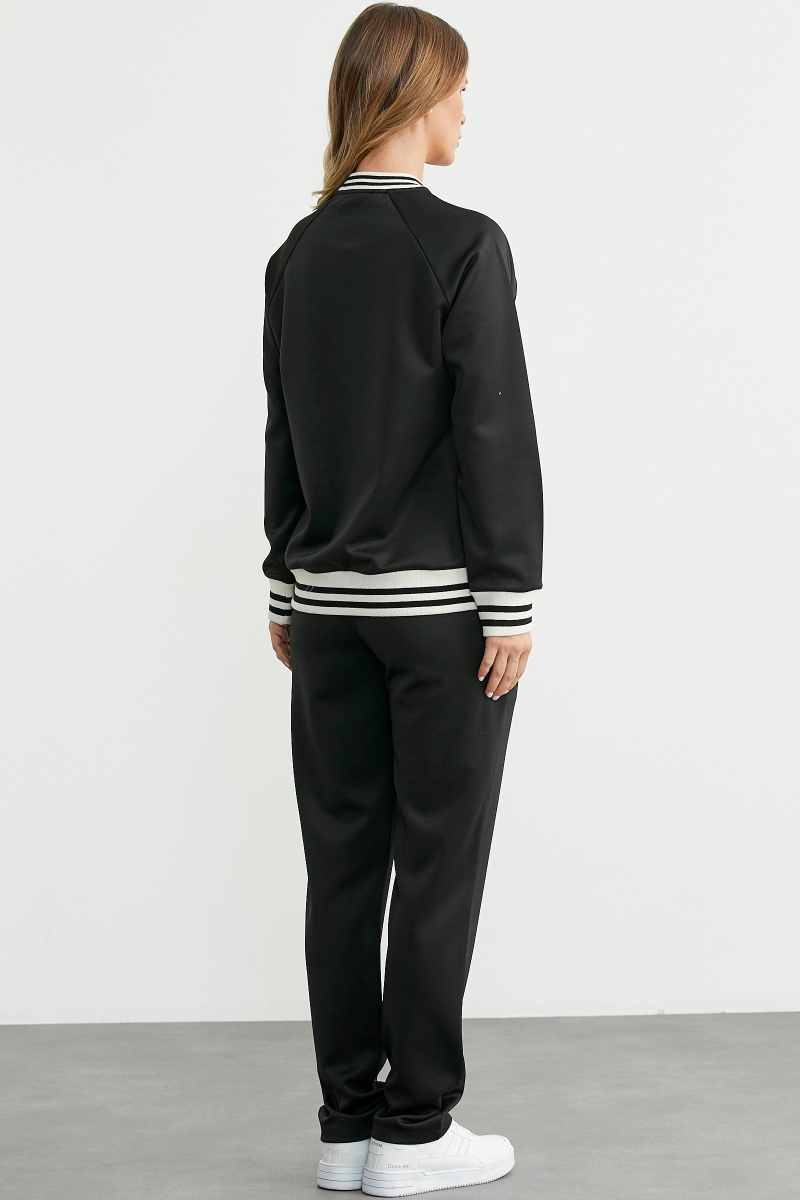 Şerit Detaylı Scuba Eşofman Takım - Siyah