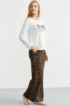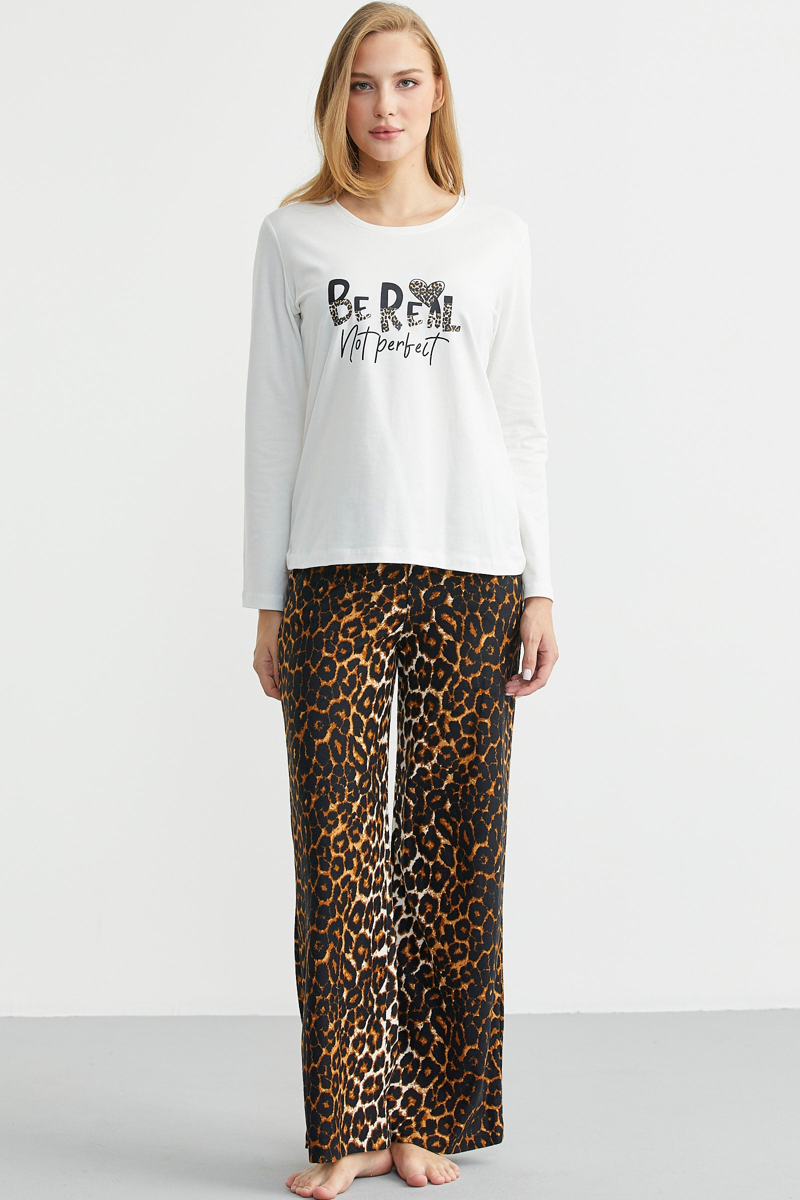 Yumuşak Dokulu Leopar Kombinli Rahat Takım - Ekru