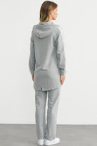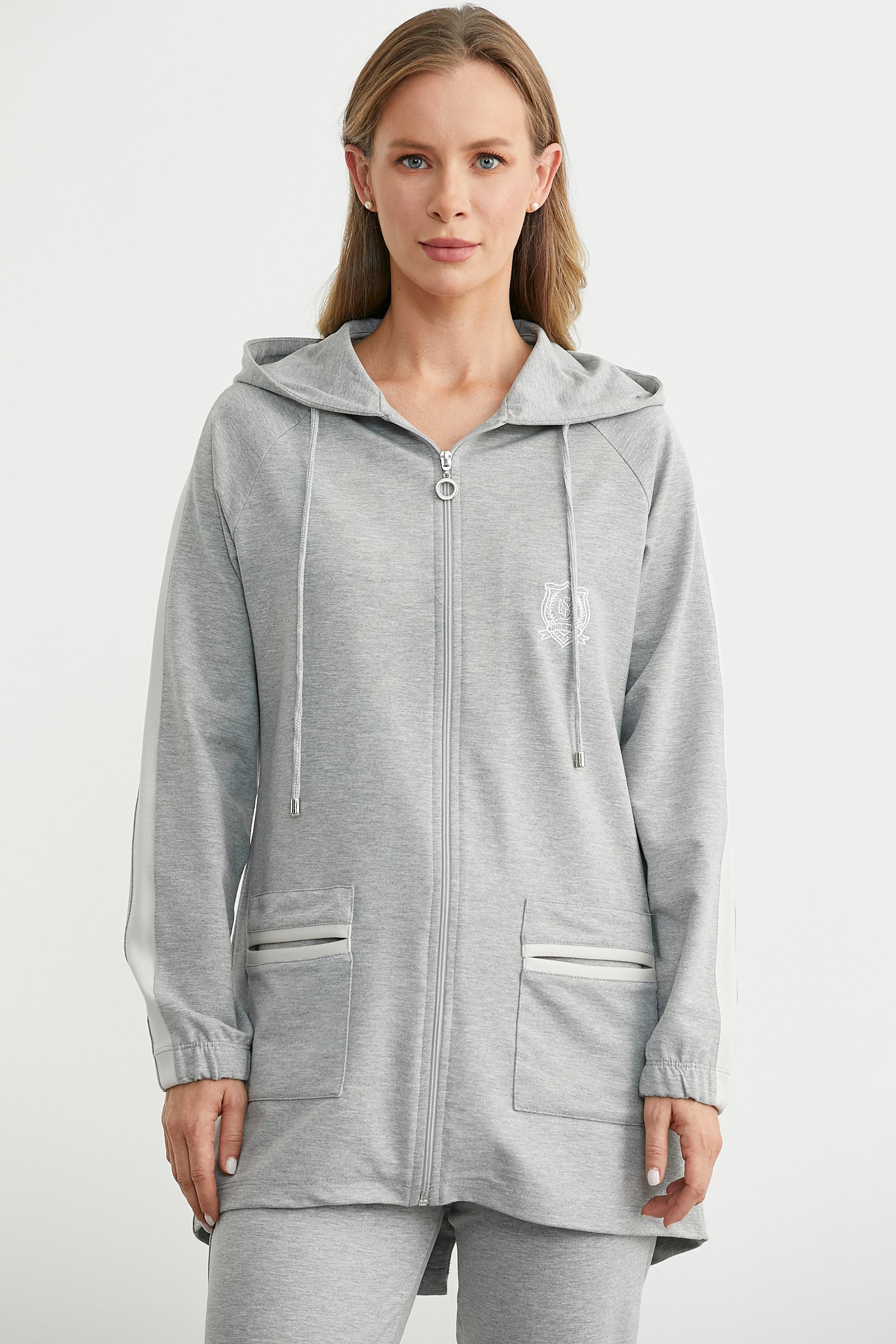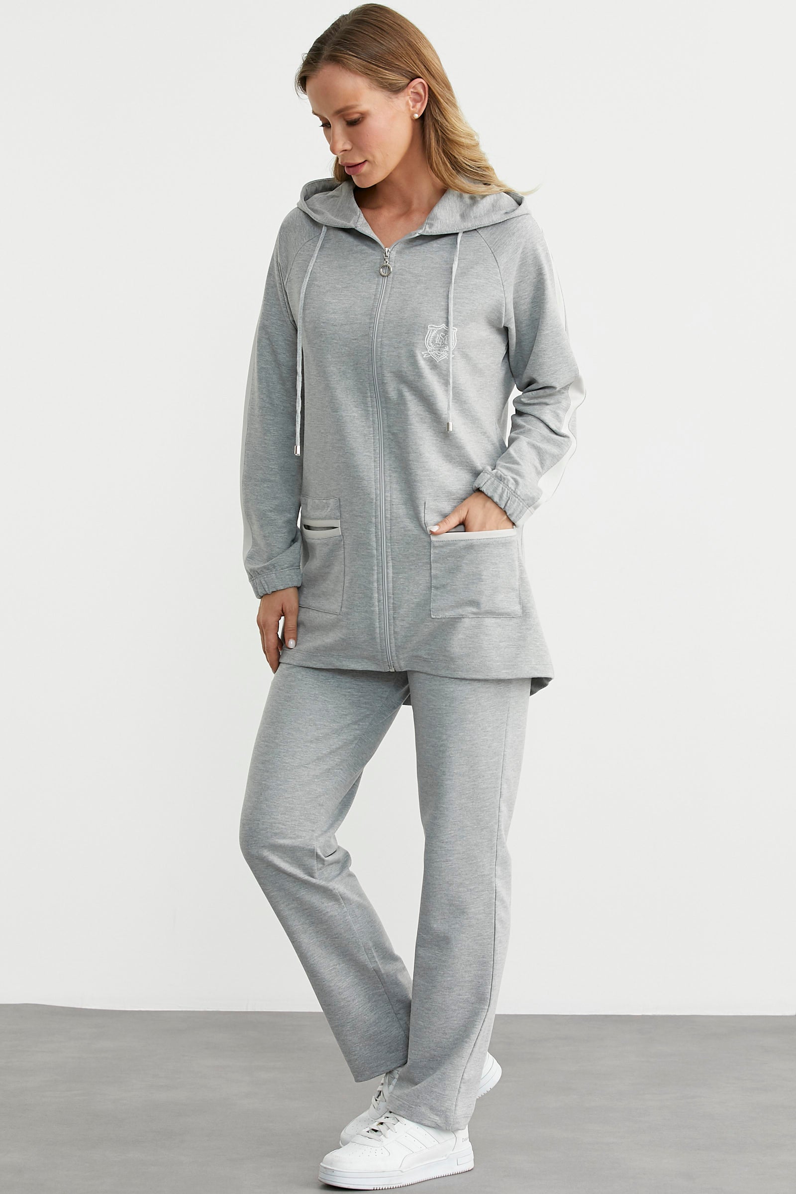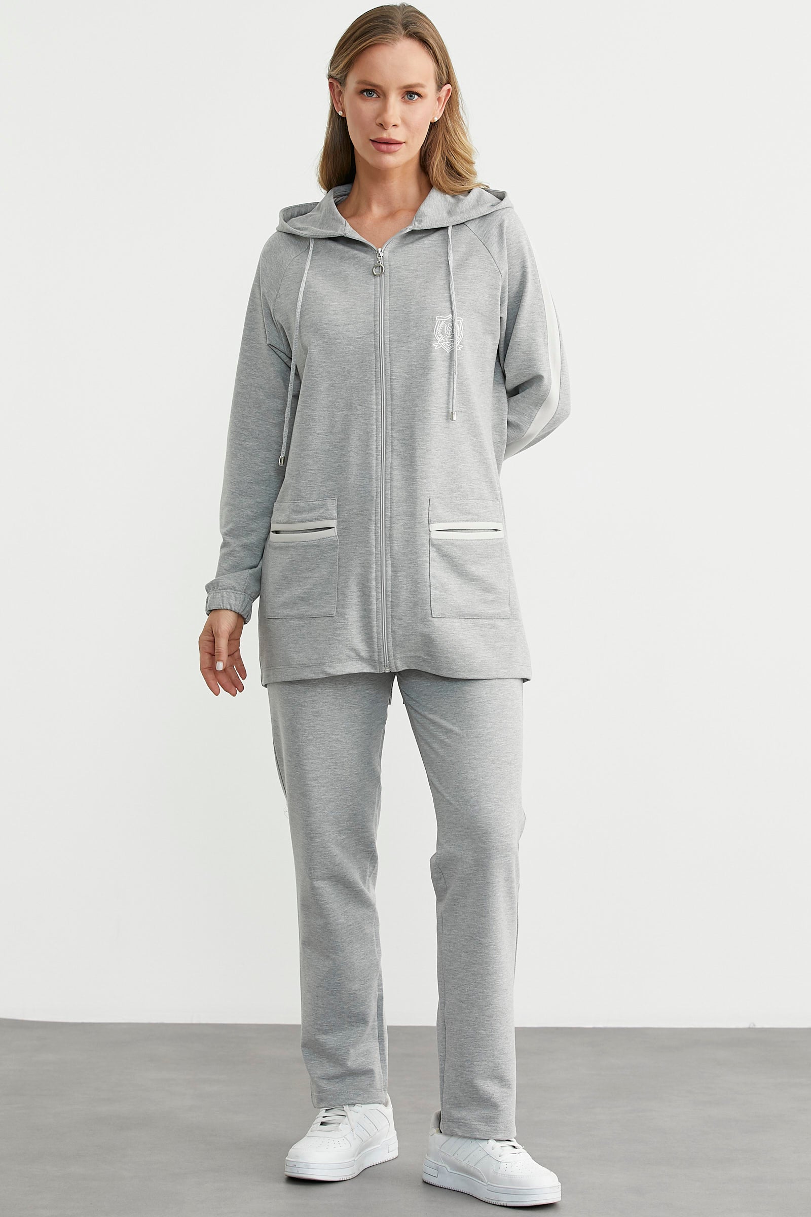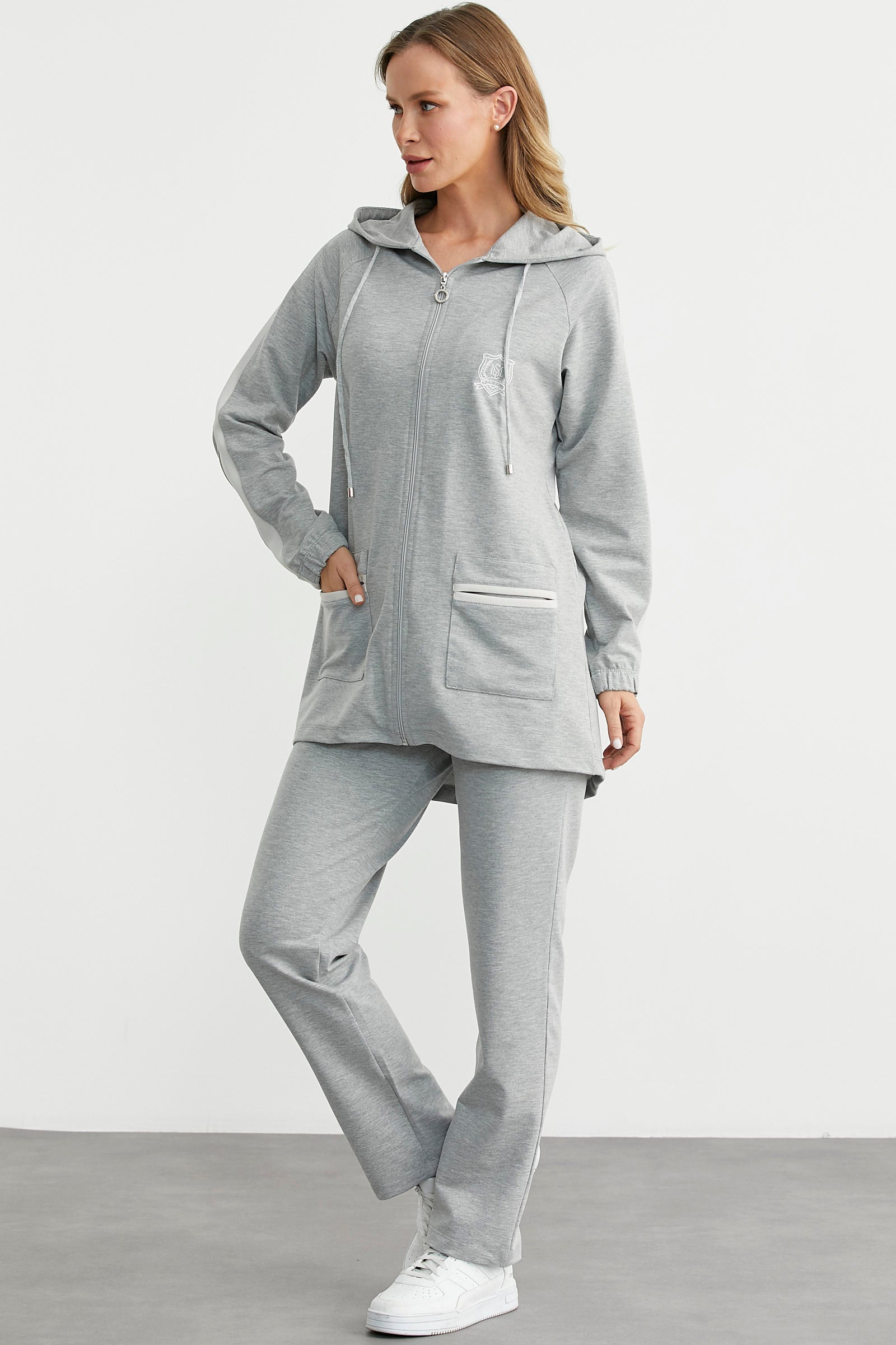 Kapüşonlu Renk Kombinli Tunik Eşofman Takım - Gri