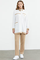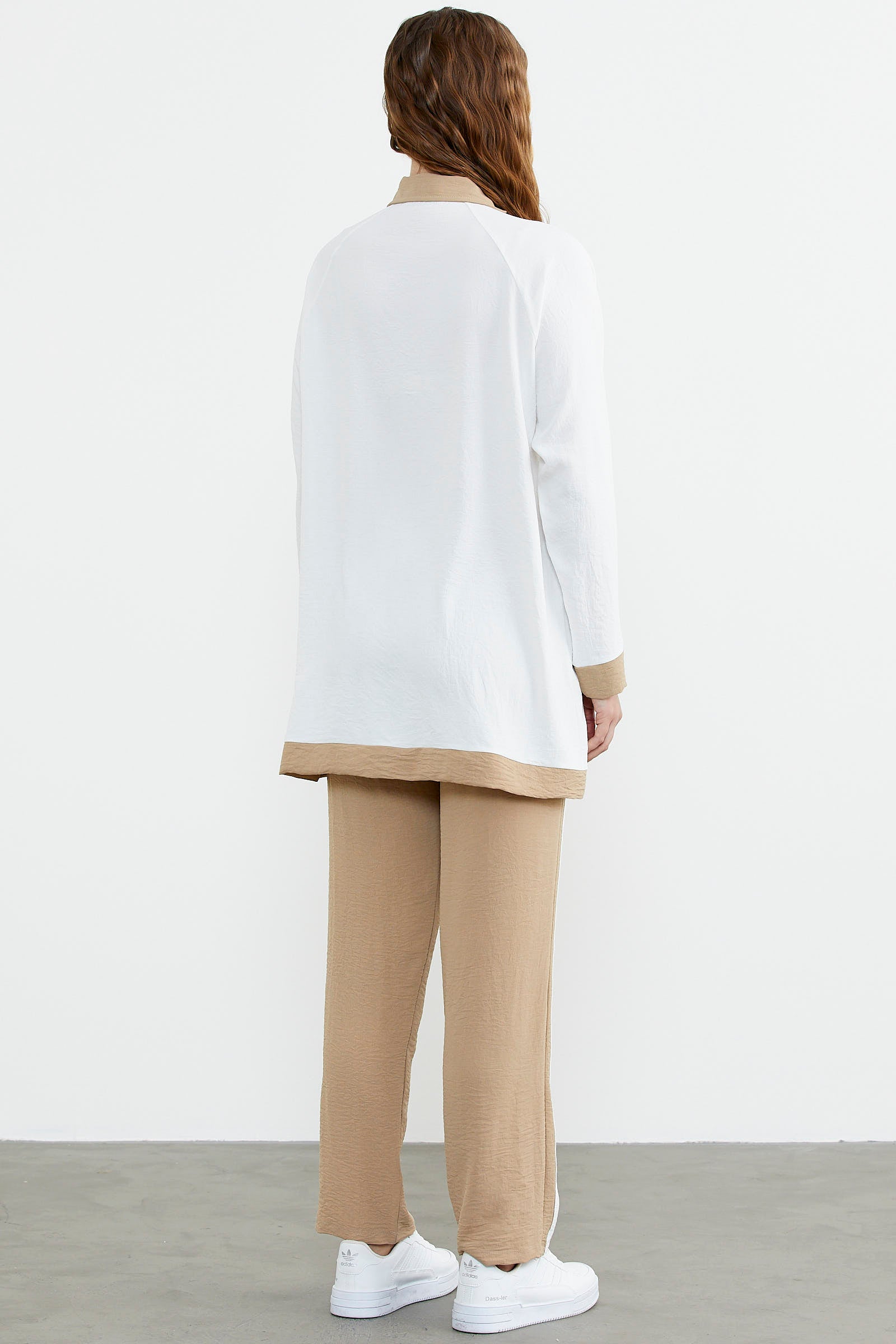 Çift Renk Kombinli Tunik Krep Takım - Taş