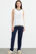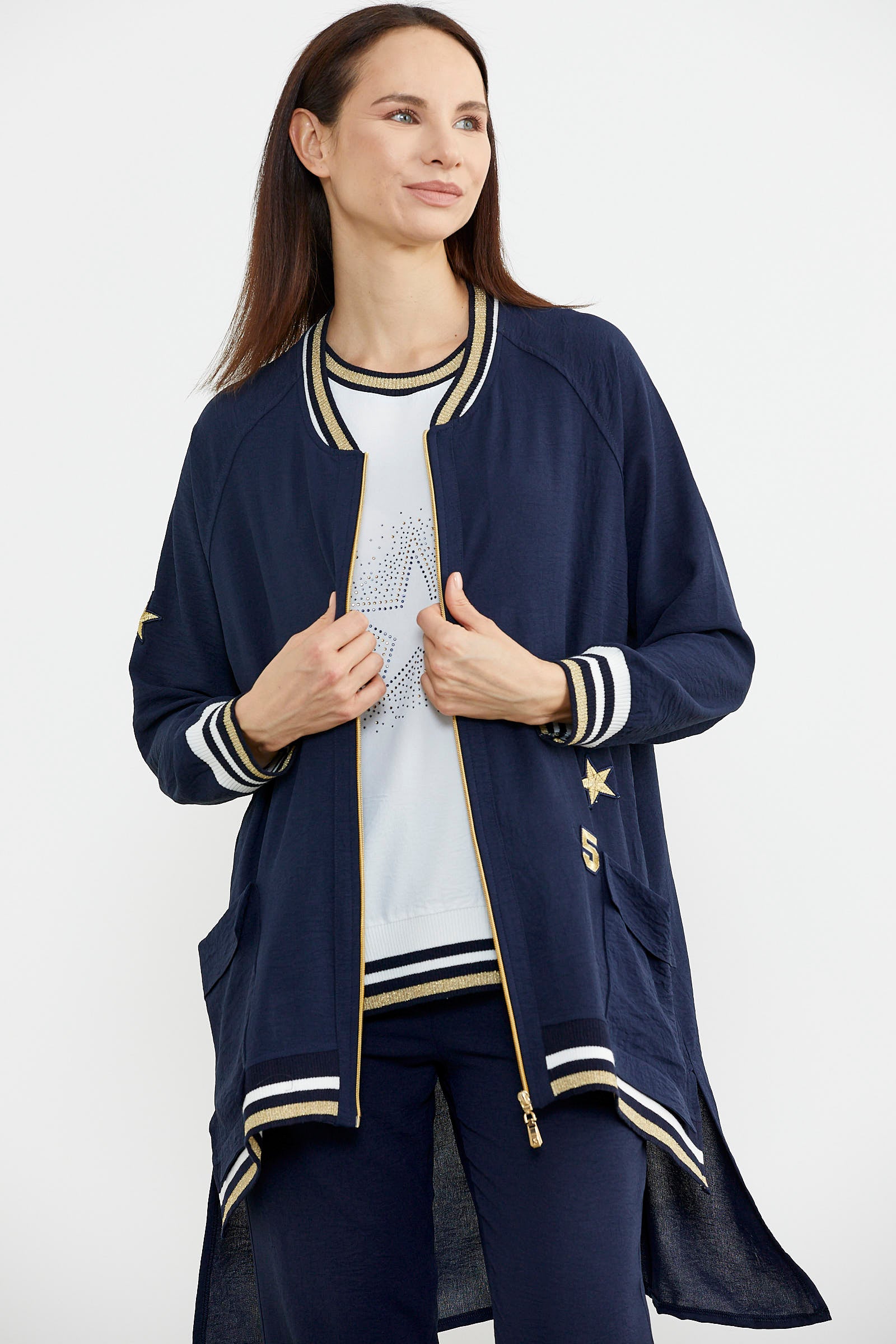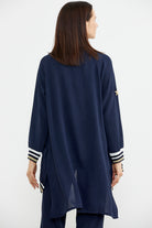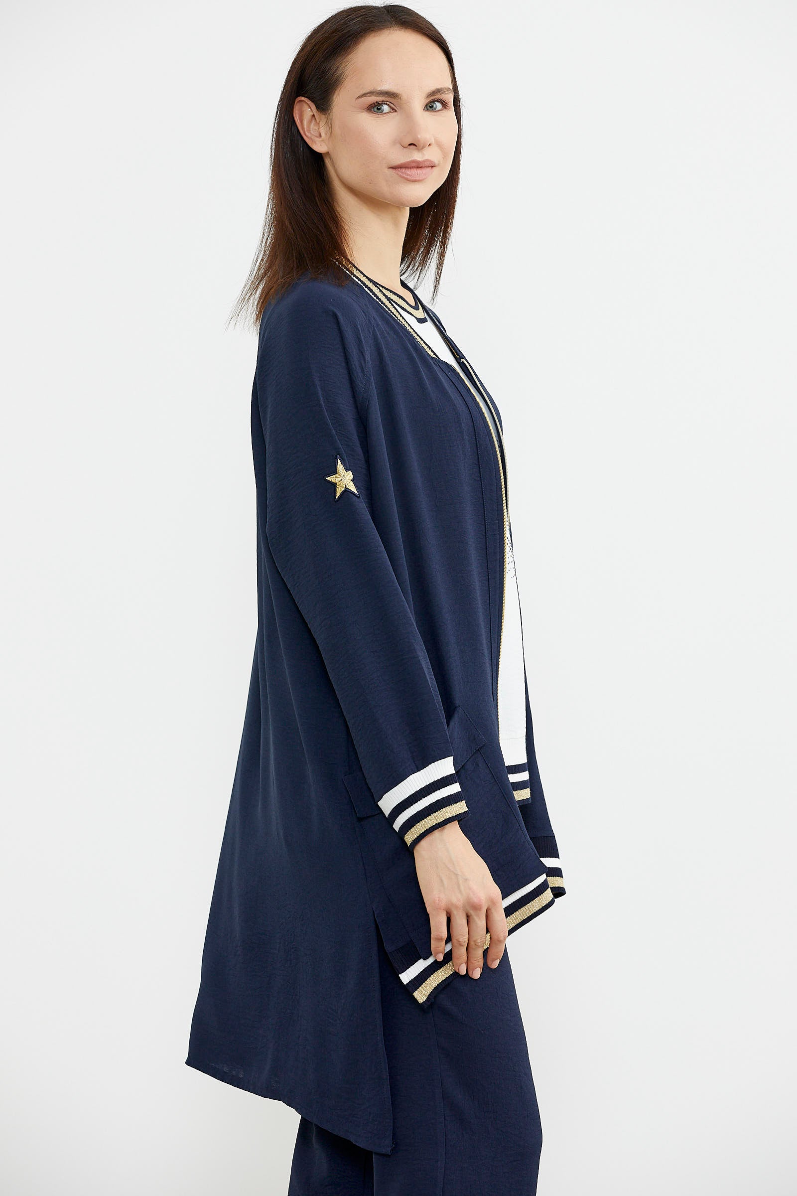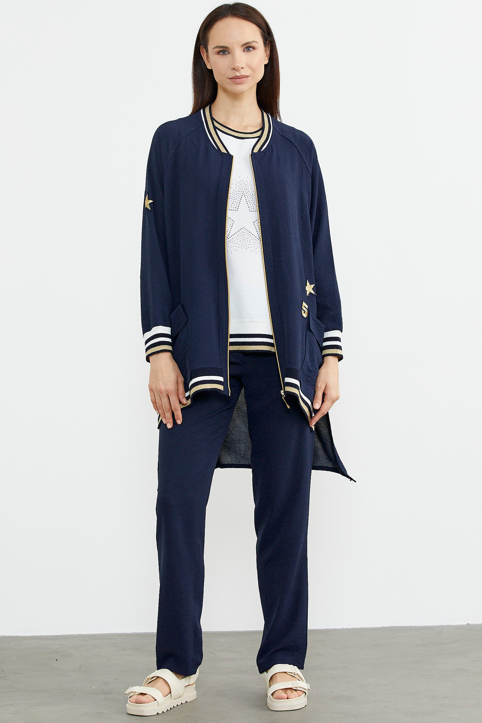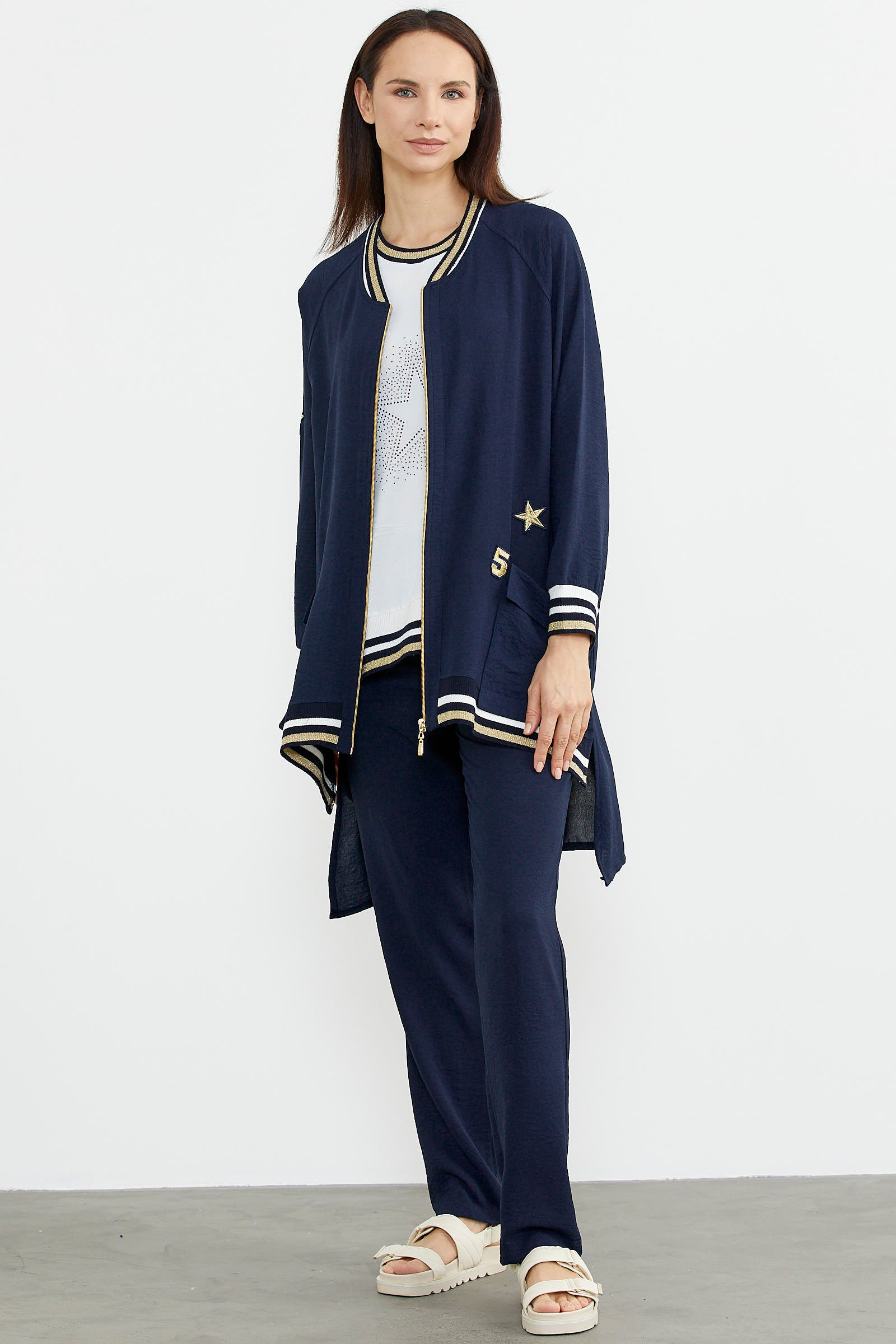 Uzun kollu, fermuar kapamasıyla kullanım kolaylığı sunan, taş detaylı tunik. kolsuz önü taş detaylı bluz ve beli lastikli, boru paça pantolondan oluşan takım ile siz de etkileyici görünümler yaratın.