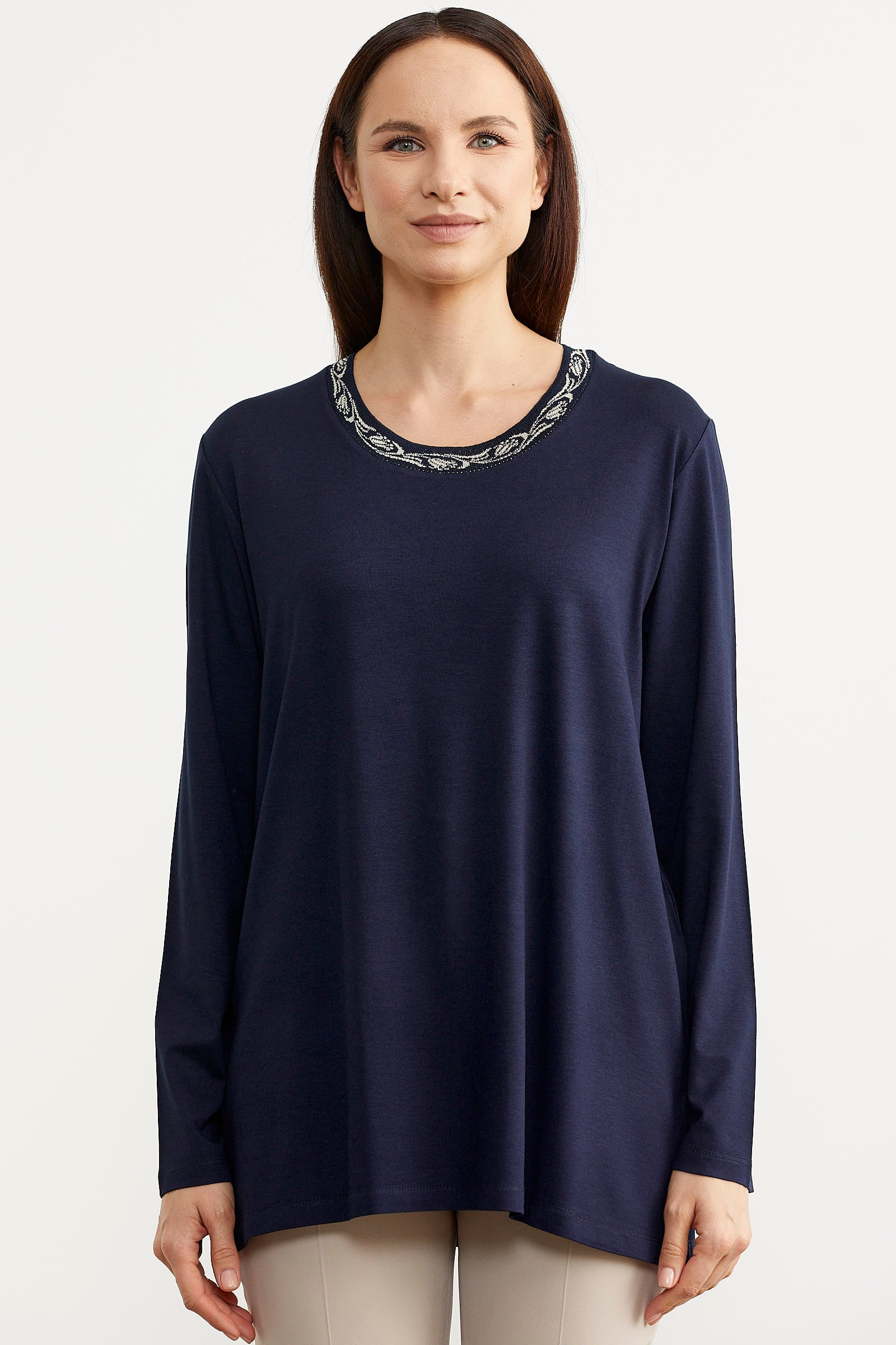 Büyük beden triko motif detaylı yaka, yumuşak kumaş dokusuyla harika bütünleşmiş anne bluzleri her zaman popüler.