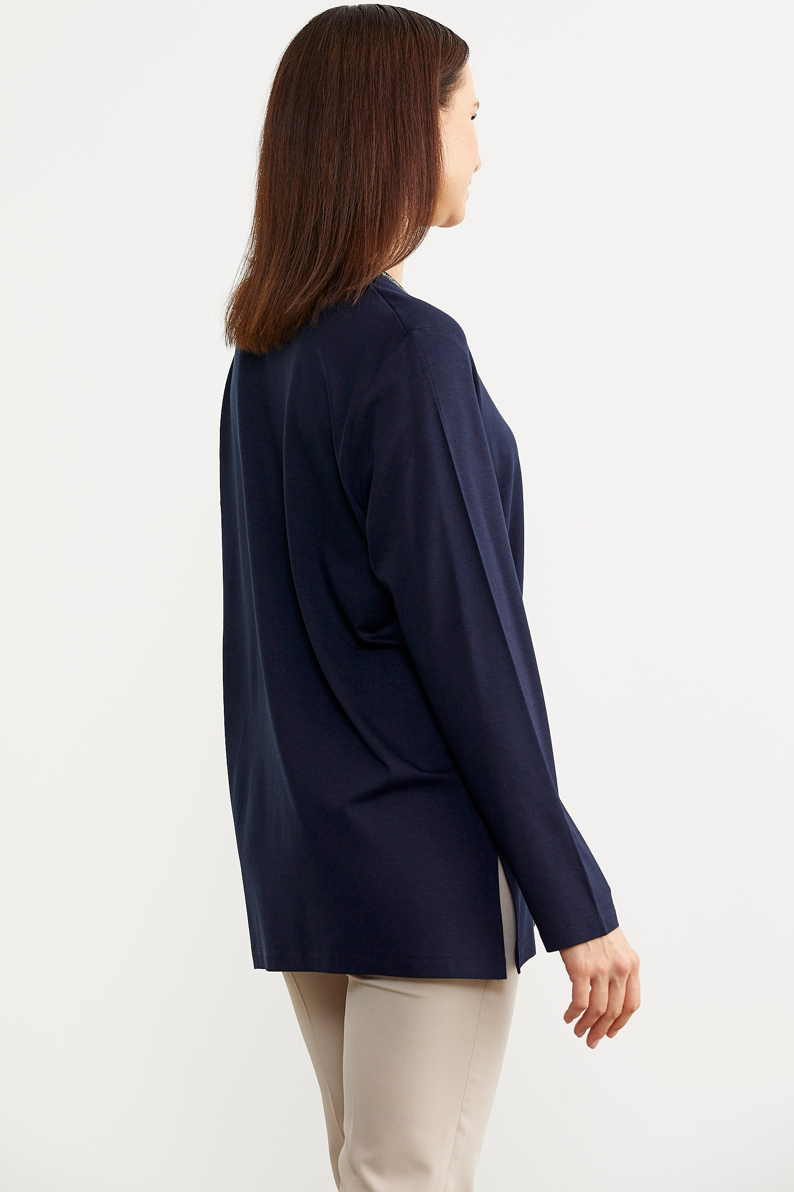 Büyük Beden Uzun Kol Tişört - Lacivert