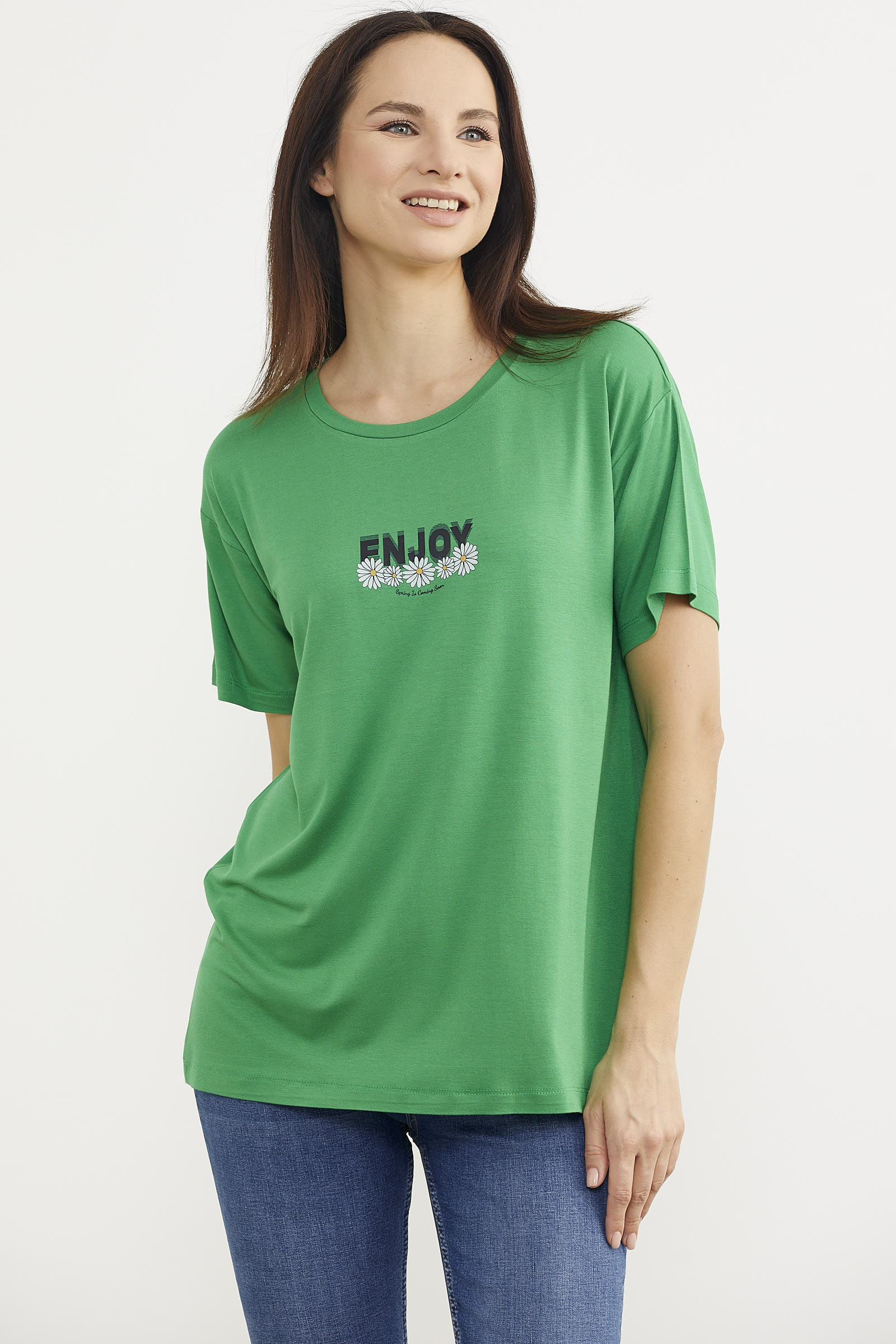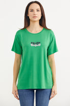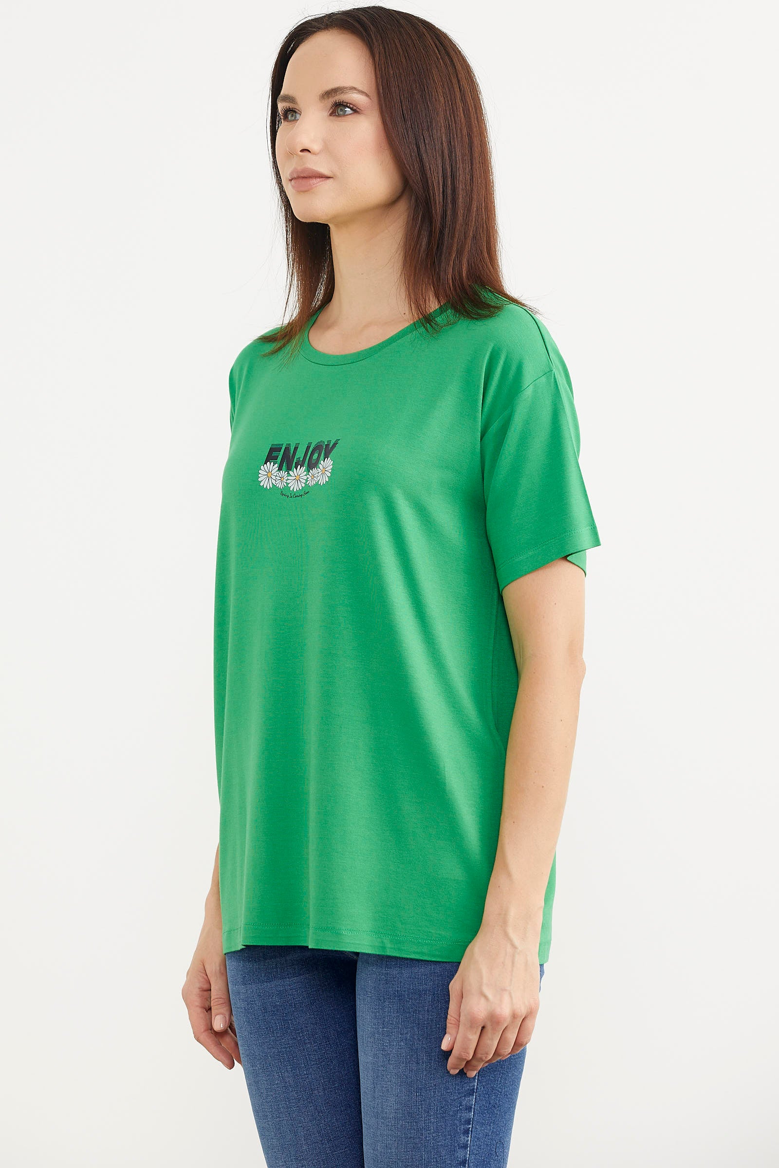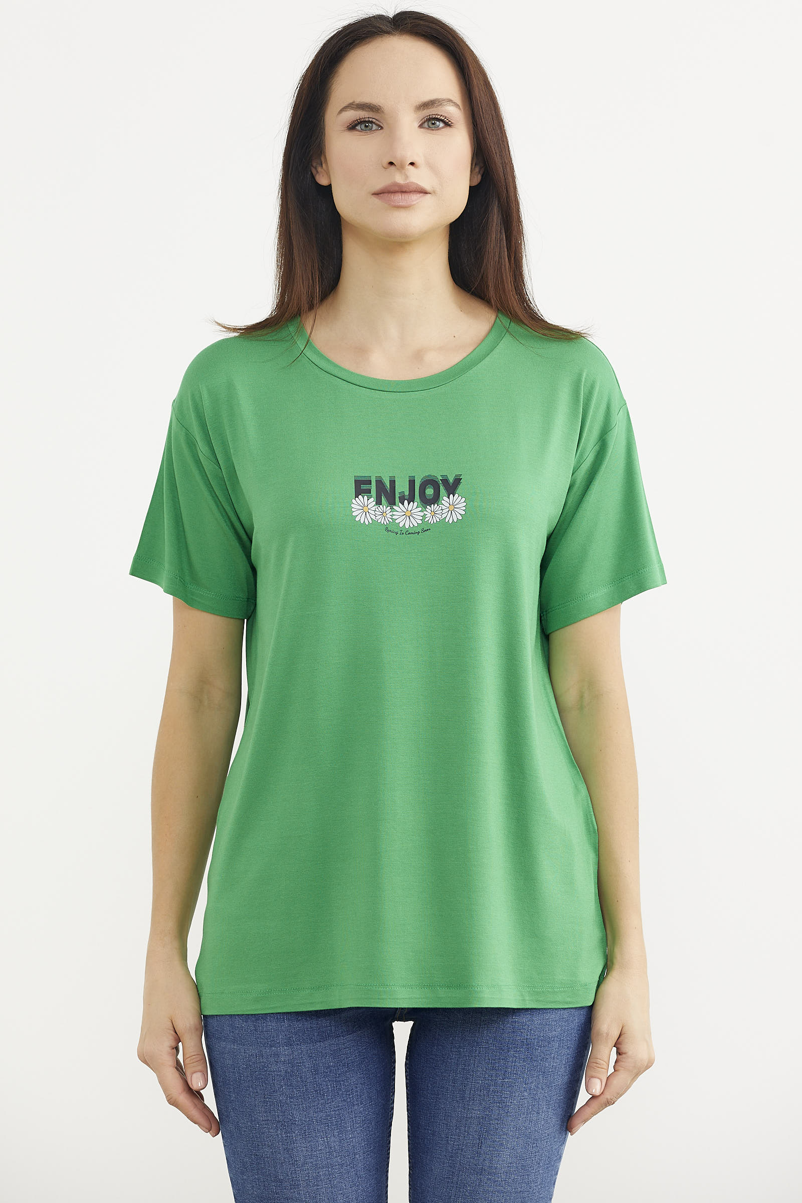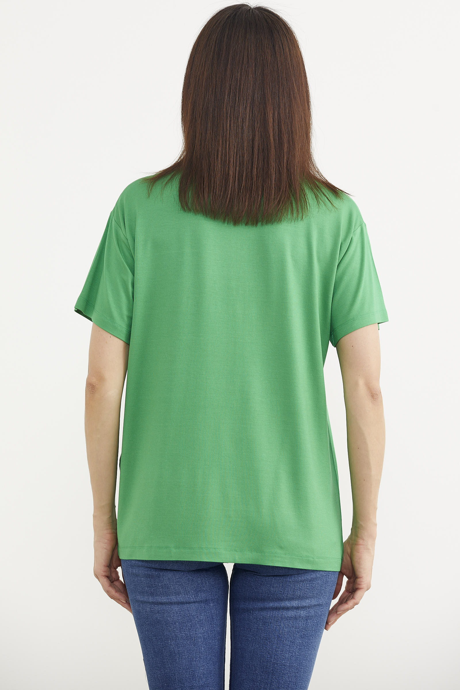 Dökümlü Baskılı Penye Tişört - Yeşil